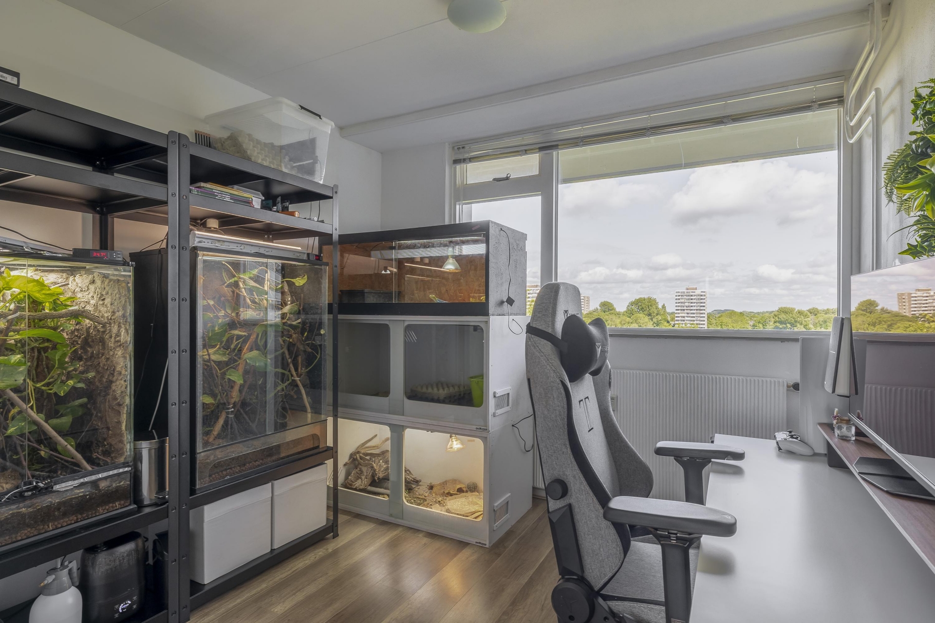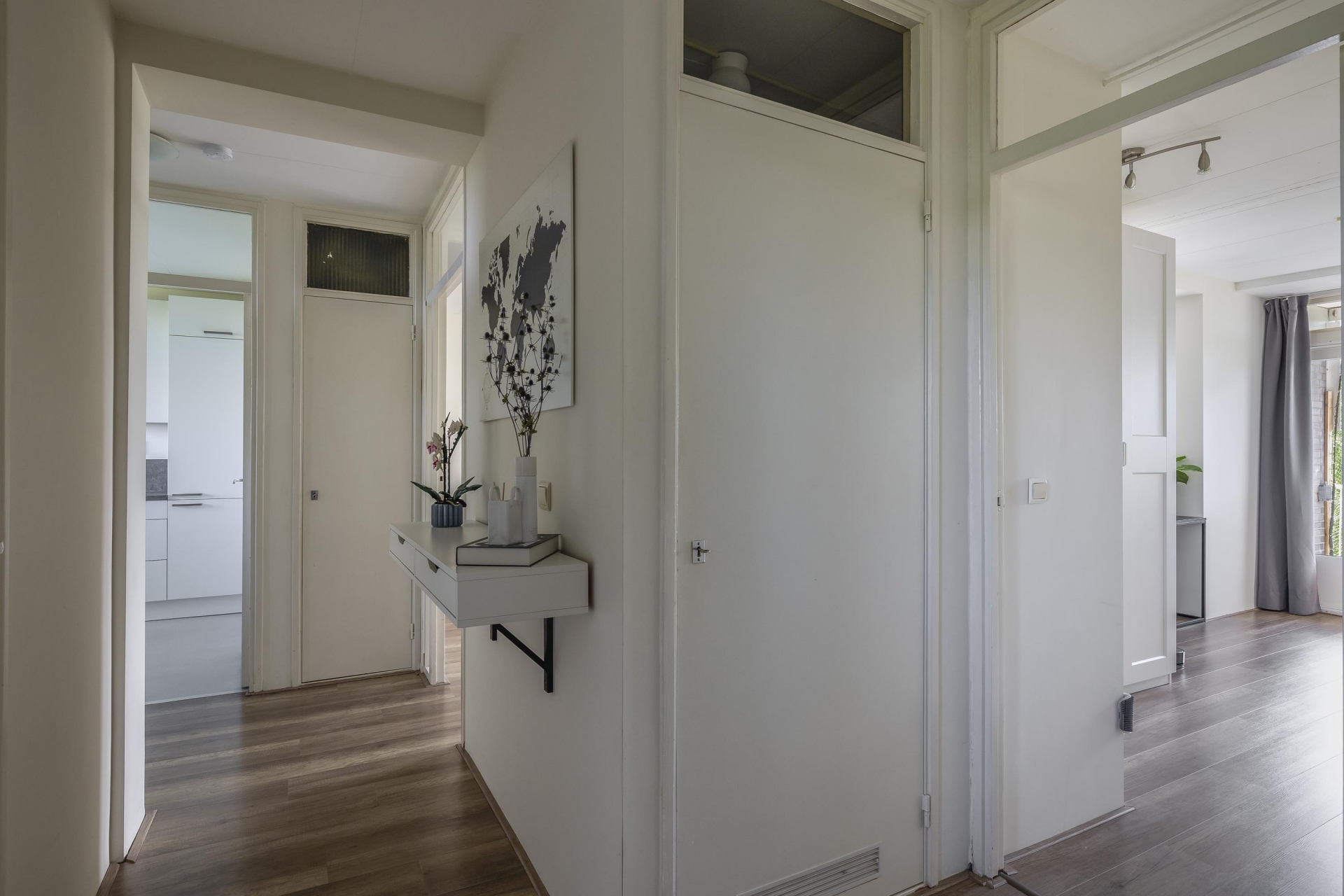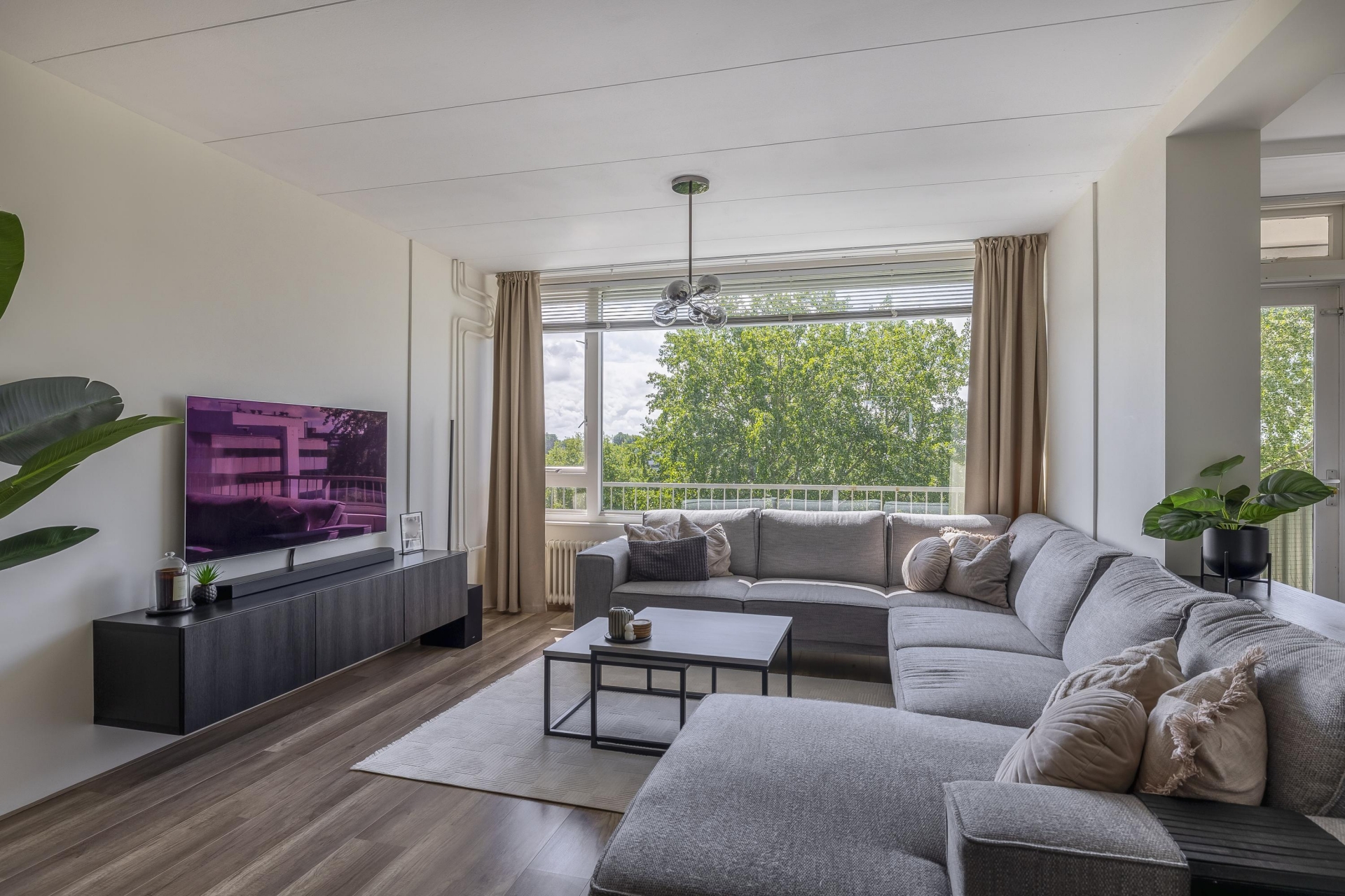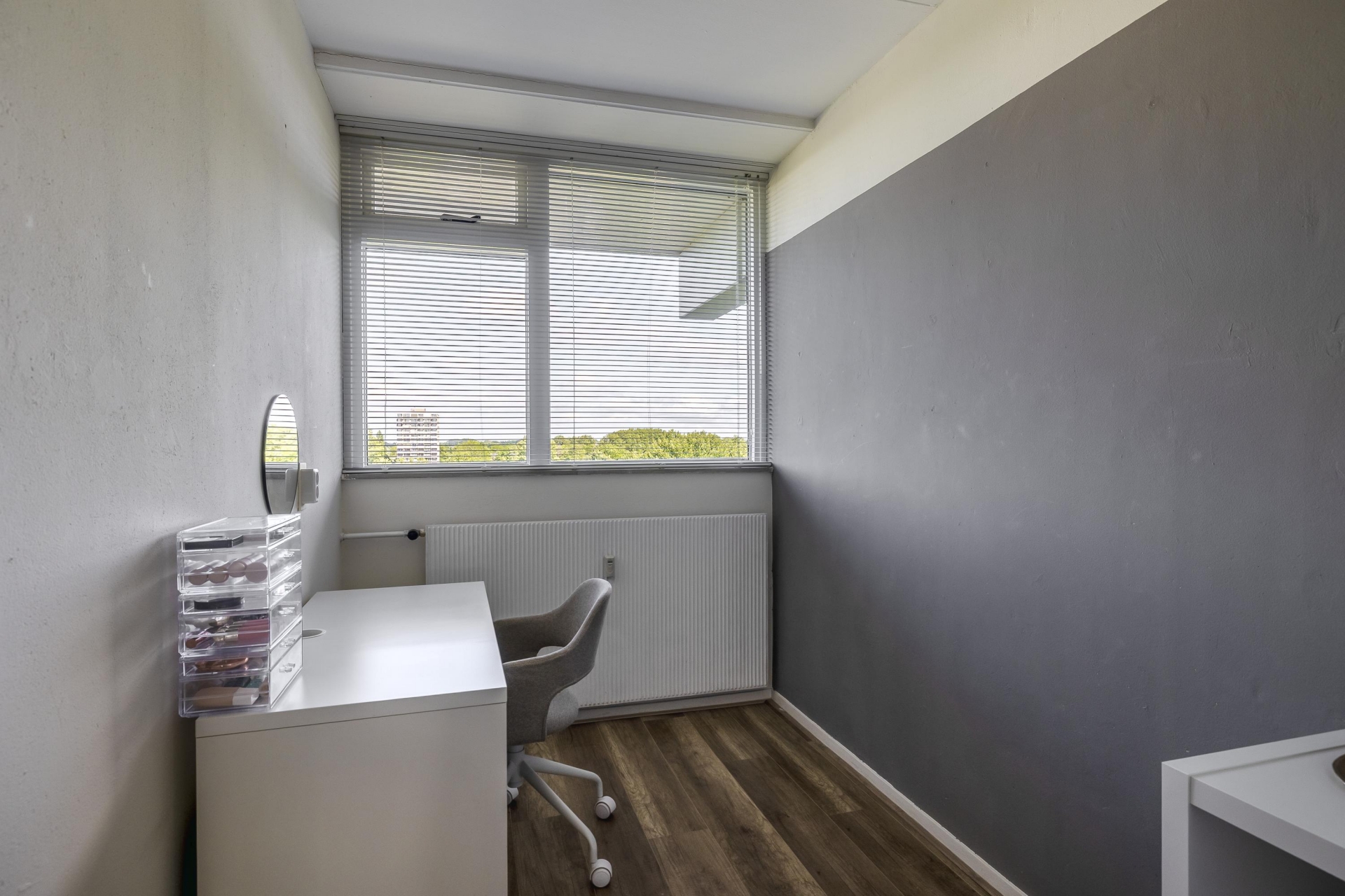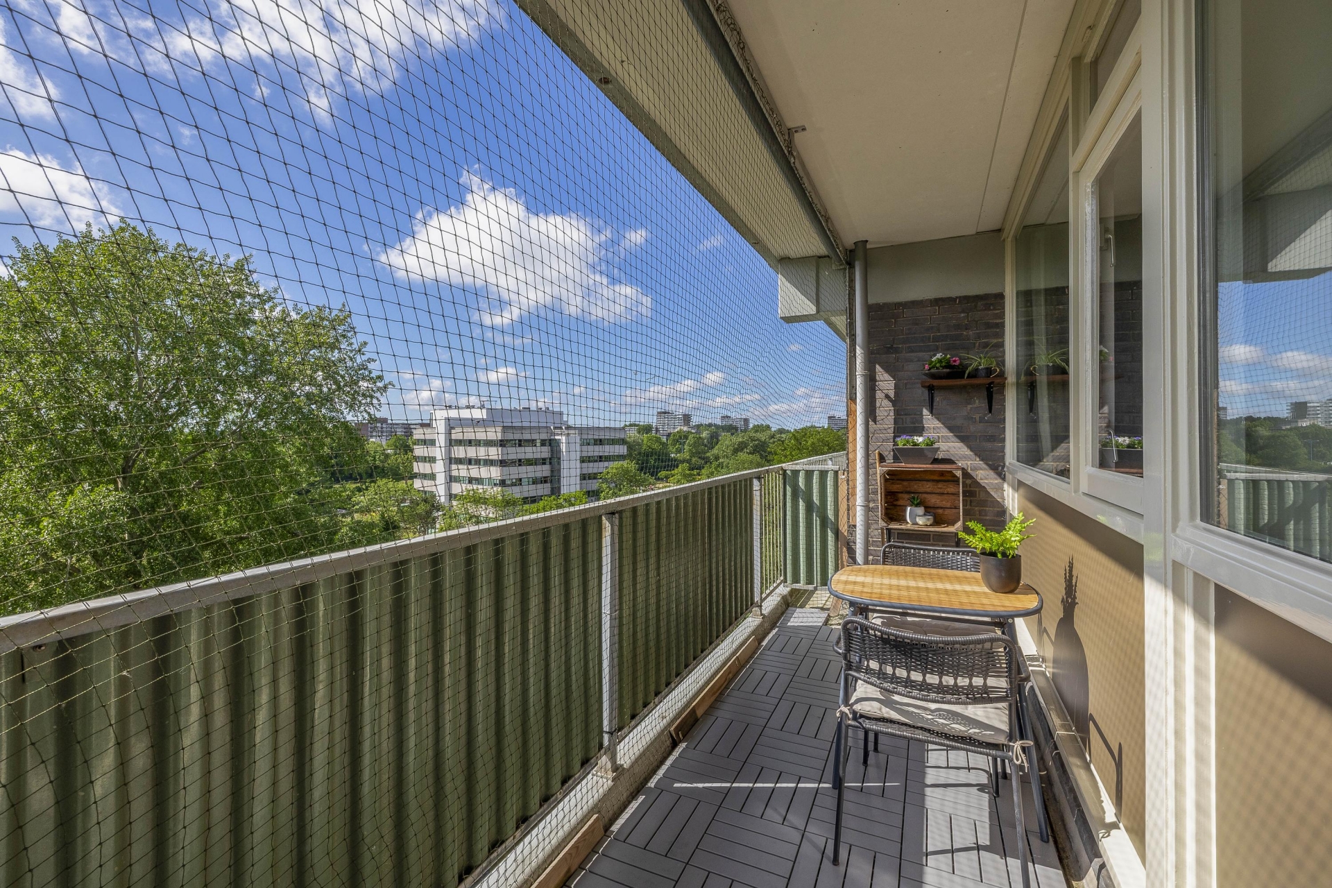 De woonkamer is heerlijk licht dankzij het grote raam en de doorloop naar de naastgelegen vierde (slaap)kamer. Deze is voorzien van een deur naar het balkon. De neutrale afwerking en nette vloer maken het makkelijk om je eigen stijl hier door te voeren. Het balkon ligt op het westen: dat betekent zon in de middag en avond, ideaal voor een ontspannen borrelmoment aan het einde van de dag, met uitzicht op de groene omgeving.