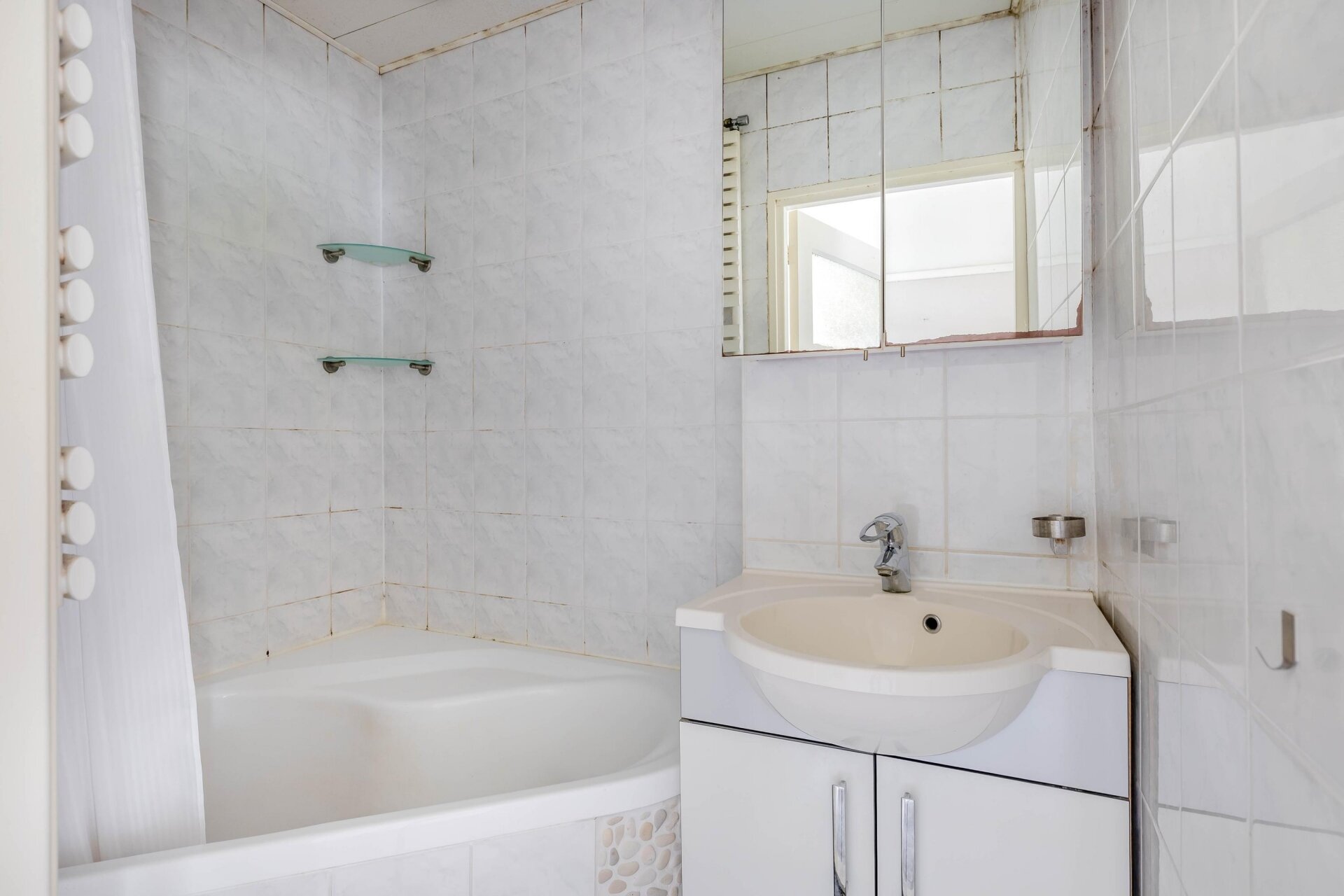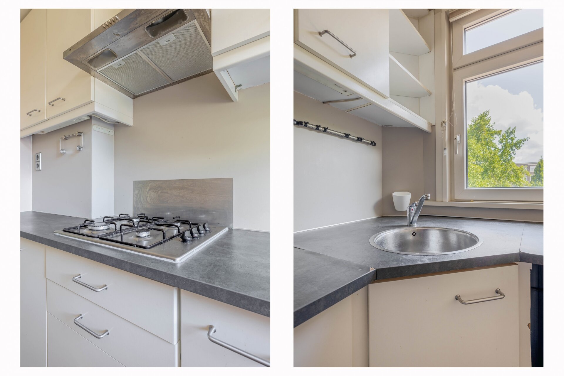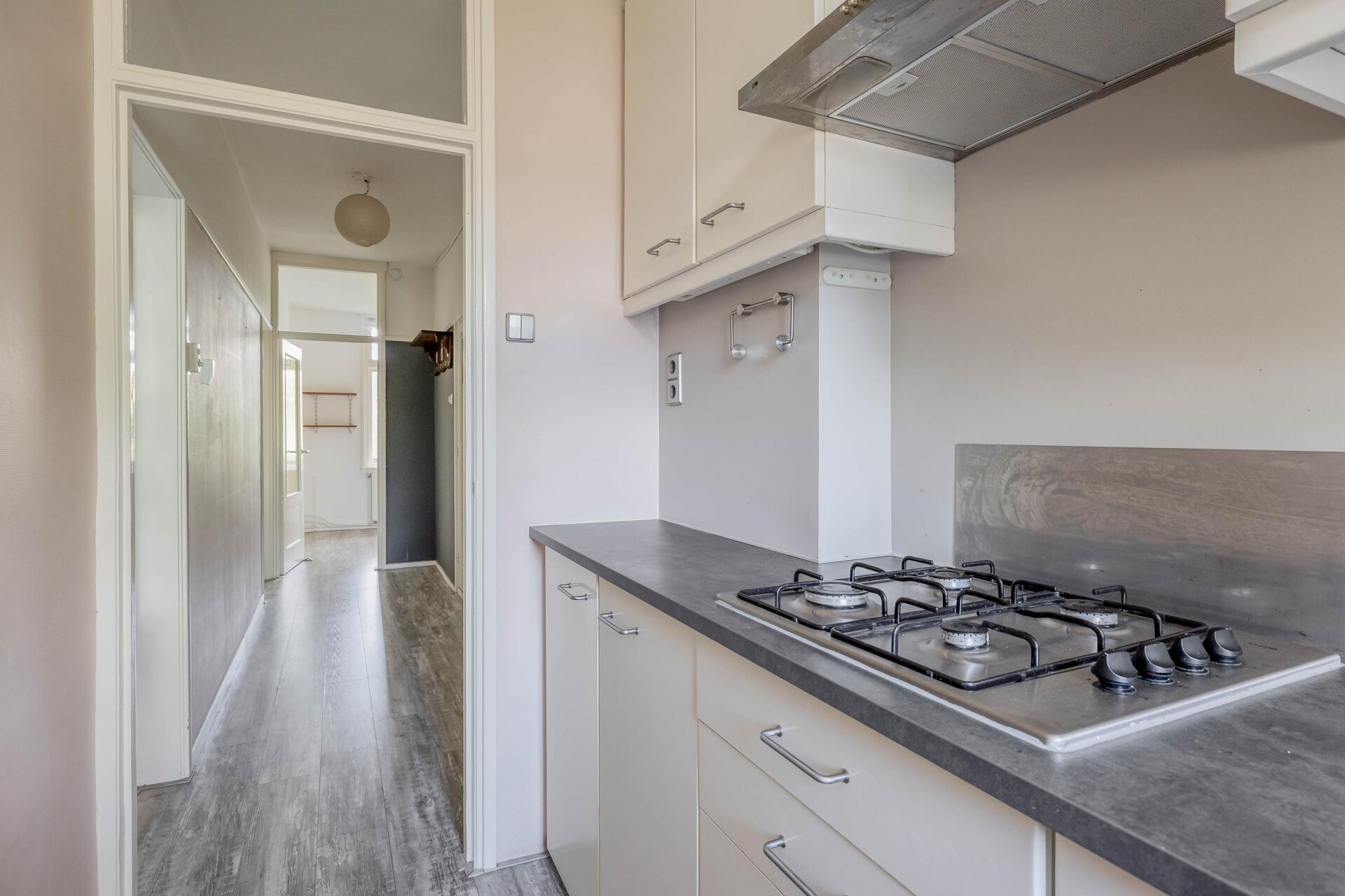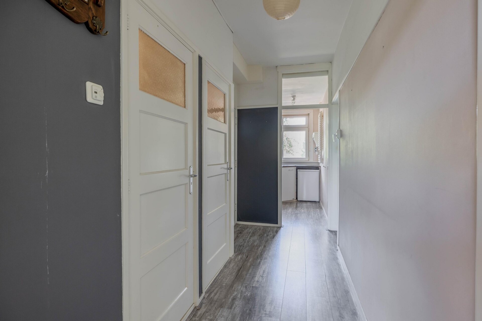 Via de hal zijn alle ruimtes toegankelijk. De woonkamer en aangrenzende slaapkamer worden gescheiden door schuifdeuren. Ideaal als je graag een open indeling wilt met veel lichtinval, en ook flexibiliteit zoekt. De tweede slaapkamer is compact maar functioneel, voorzien van een ingebouwde kastenwand en ruimte voor wasmachine en droger. De badkamer heeft een speelse indeling met hoekbad, wastafel en apart toilet. De keuken aan de voorzijde is praktisch ingericht en biedt alles wat je nodig hebt, inclusief zicht op de levendige Statenweg.