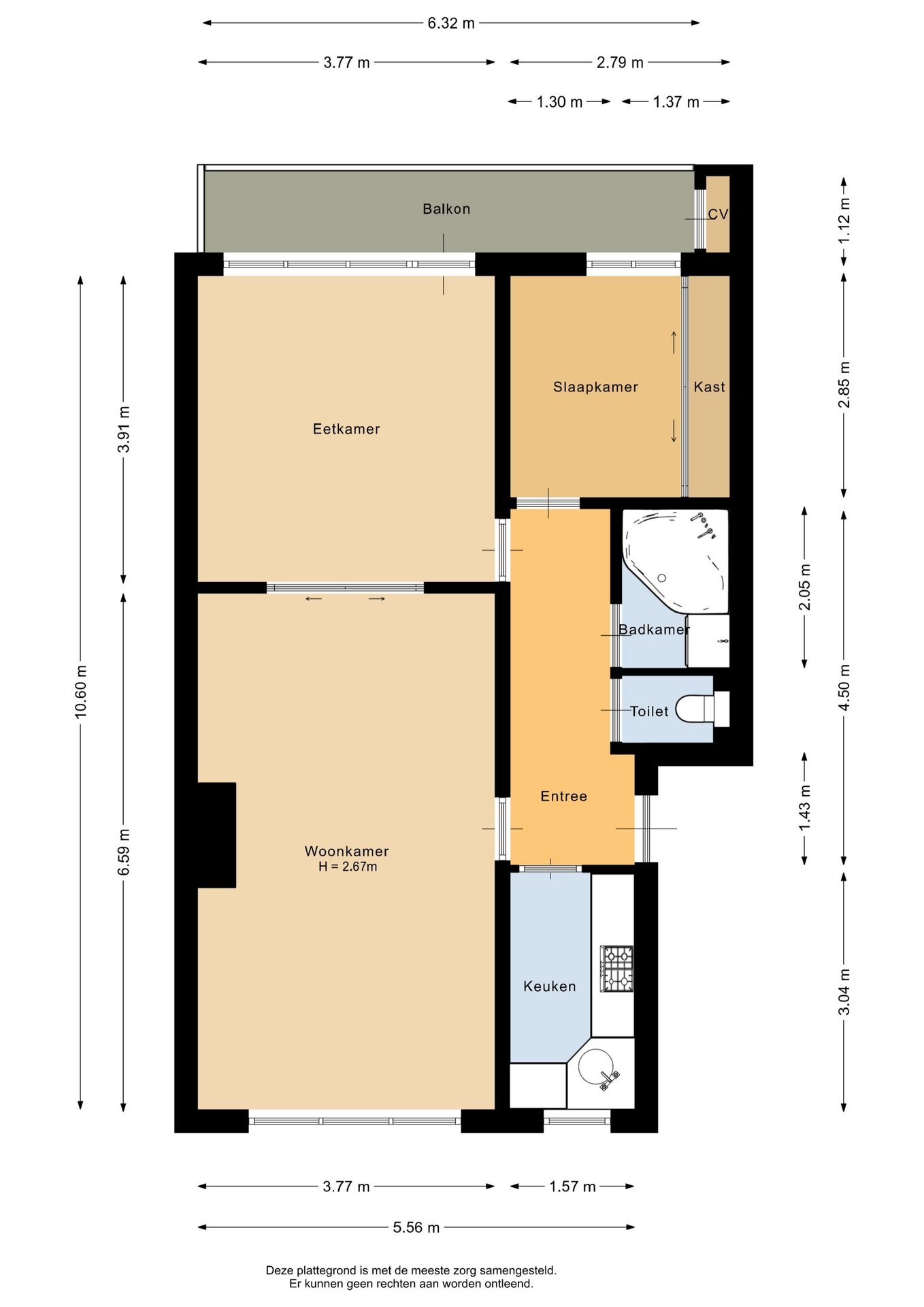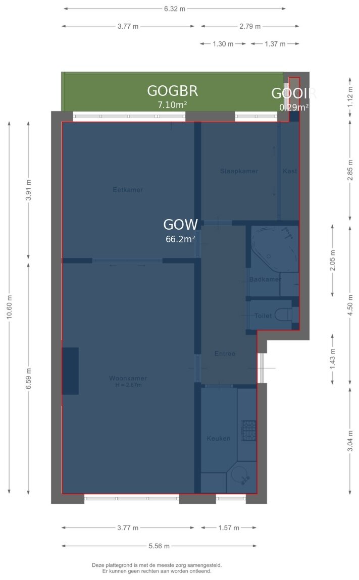 - Gebruiksoppervlakte 66m2
