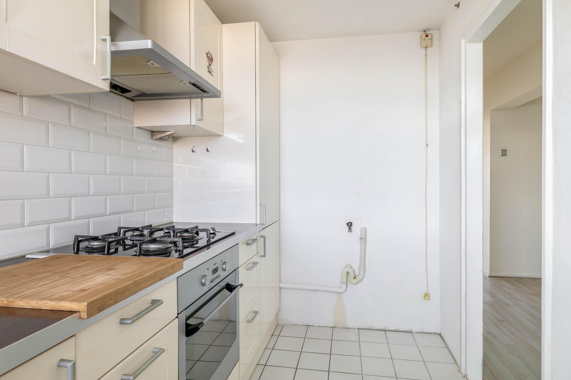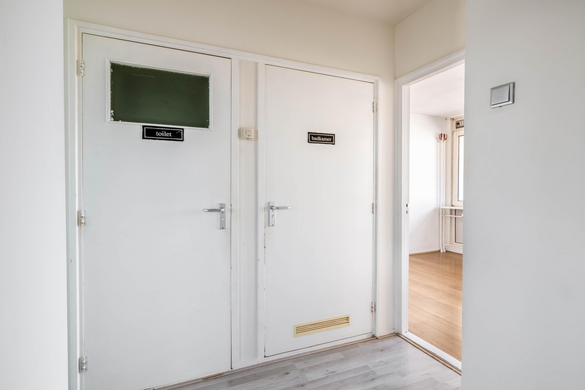 Aan de linkerzijde van de entree bevindt zich de doorgang naar de keuken, het separate toilet, de badkamer en de eetkamer. Deze eetkamer staat momenteel in open verbinding met de woonkamer, maar biedt een interessante mogelijkheid door de doorgang vanuit de woonkamer te sluiten kan hier eenvoudig een extra slaapkamer worden gerealiseerd. Hierdoor ontstaat een praktisch 4-kamer appartement, wat deze woning extra aantrekkelijk maakt voor bijvoorbeeld starters die een werk- of logeerkamer wensen.
