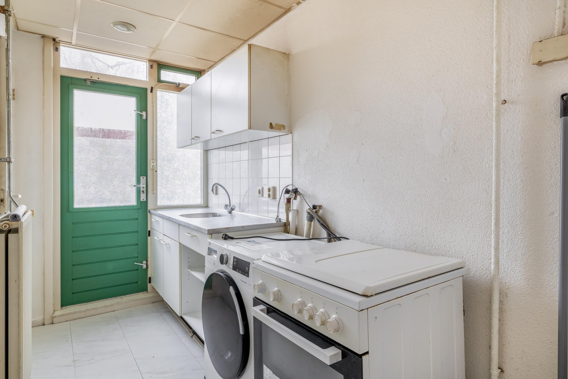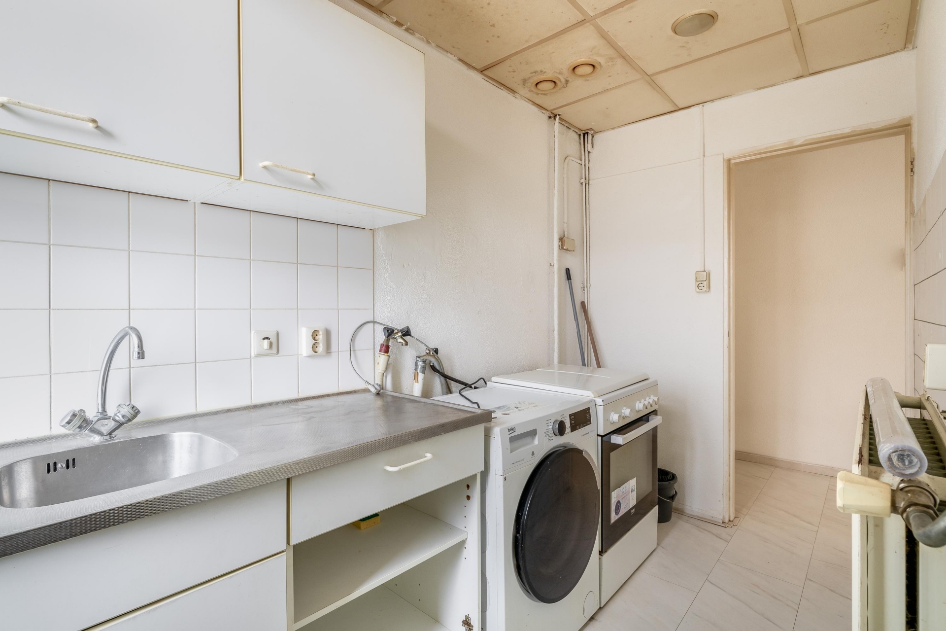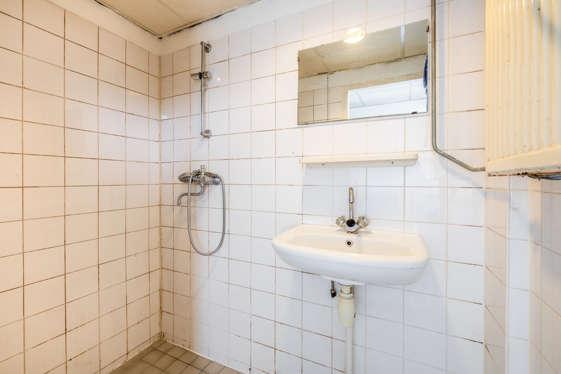 Dit appartement is netjes bewoond geweest, maar verdient modernisering. En dat is precies waar de kans ligt. De keuken is eenvoudig en functioneel opgesteld en biedt ruimte om een eigentijdse keukenopstelling te realiseren. De badkamer is voorzien van douche en wastafel en ook hier kun je, als je wilt, een frisse nieuwe indeling creëren.