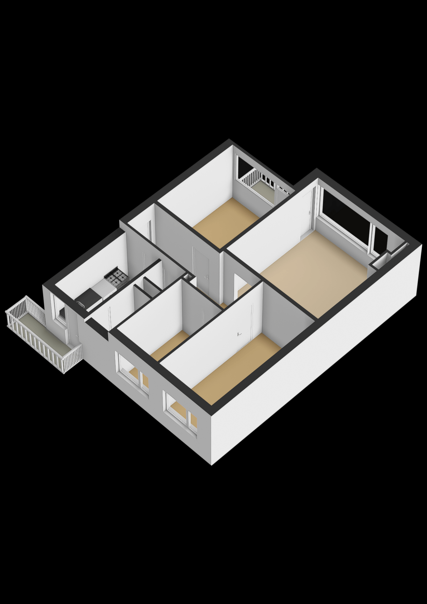 De indeling is praktisch: een centrale hal met toegang tot alle vertrekken, een separaat toilet en vaste kastruimte. Met de juiste aanpak maak je hier een comfortabel en eigentijds startersappartement van.