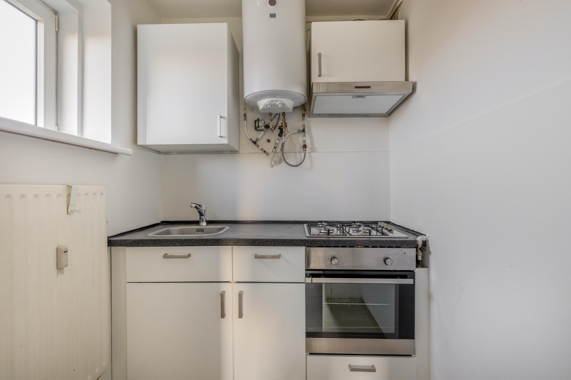 Binnen stap je in een verrassend lichte woon-/slaapruimte. De grote ramen zorgen voor royaal daglicht en geven de studio een ruimtelijk gevoel. De indeling is efficiënt, waardoor je eenvoudig een comfortabele zithoek en een prettig slaapgedeelte creëert. De open keuken sluit perfect aan op het geheel en beschikt over alles wat je nodig hebt voor dagelijks kookgemak. Compact, maar functioneel en stijlvol. De badkamer is netjes afgewerkt en voorzien van een douche, toilet en wastafel. Alles overzichtelijk bij elkaar, fris en gebruiksklaar waar je direct in kan.