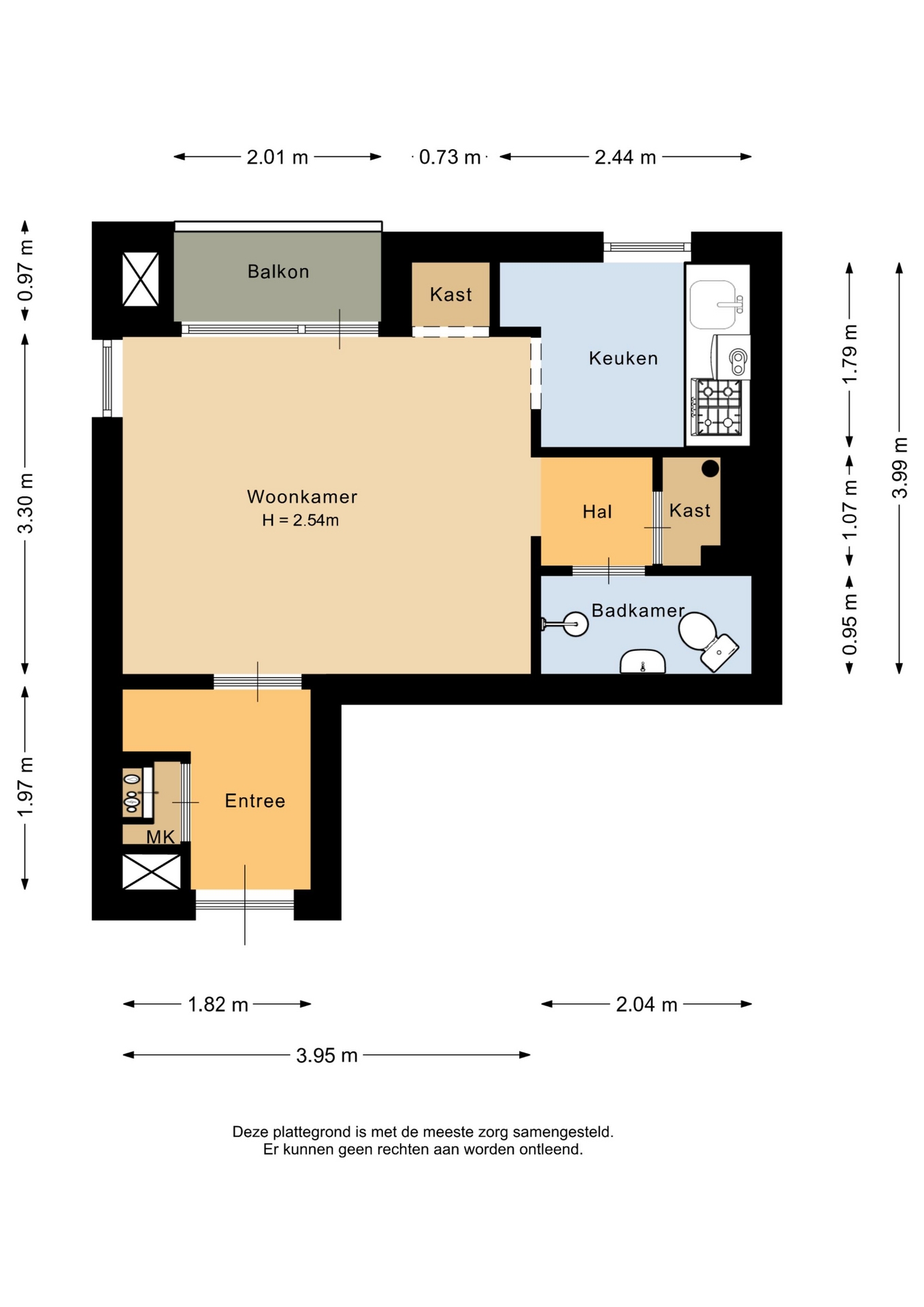 “Deze informatie is door ons met de nodige zorgvuldigheid samengesteld. Onzerzijds wordt echter geen enkele aansprakelijkheid aanvaard voor enige onvolledigheid, onjuistheid of anderszins, dan wel de gevolgen daarvan. Alle opgegeven maten en oppervlakten zijn indicatief.”