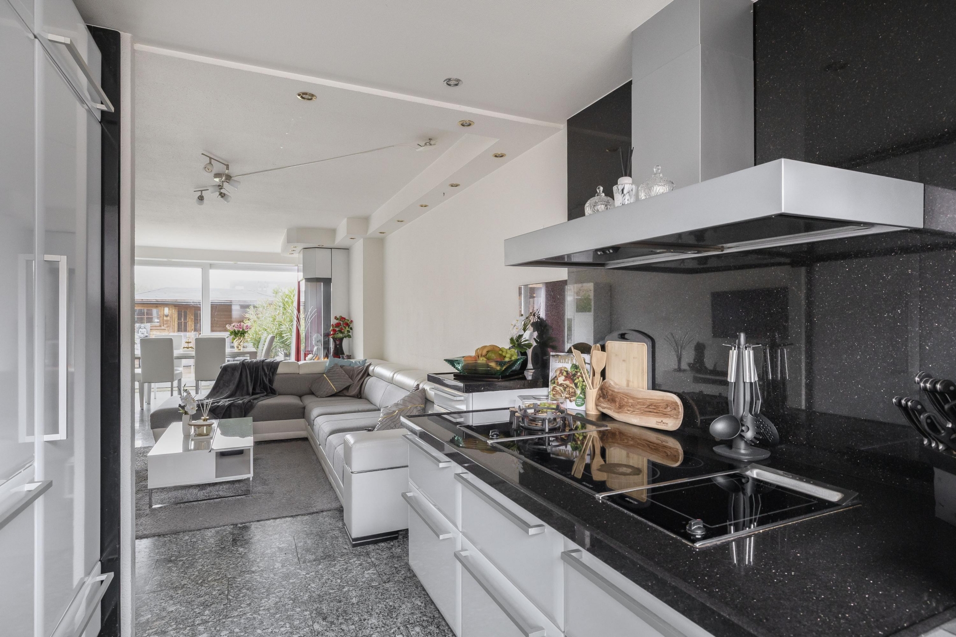 De keuken is van het merk Eggersman en is oorspronkelijk in de kleur hoogglans bordeauxrood, maar voor een meer ruimtelijke, tijdloze en neutrale look, is de keuken in 2018 gewrapt in de kleur hoogglans wit. De keuken is in U opstelling geplaatst. In de keuken bevinden zich een ruime apothekerskast, koelkast, grote vriezer, vaatwasser, inductie kookplaat, wokbrander, extra keramische kookplaat, afzuigkap, draaicarrousel en granieten aanrechtblad.
