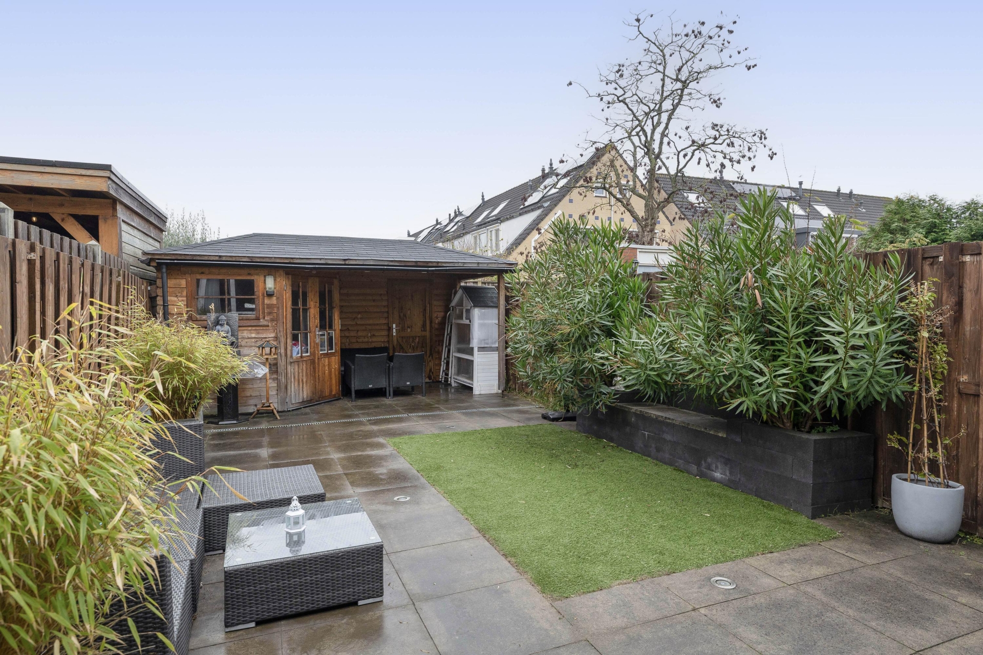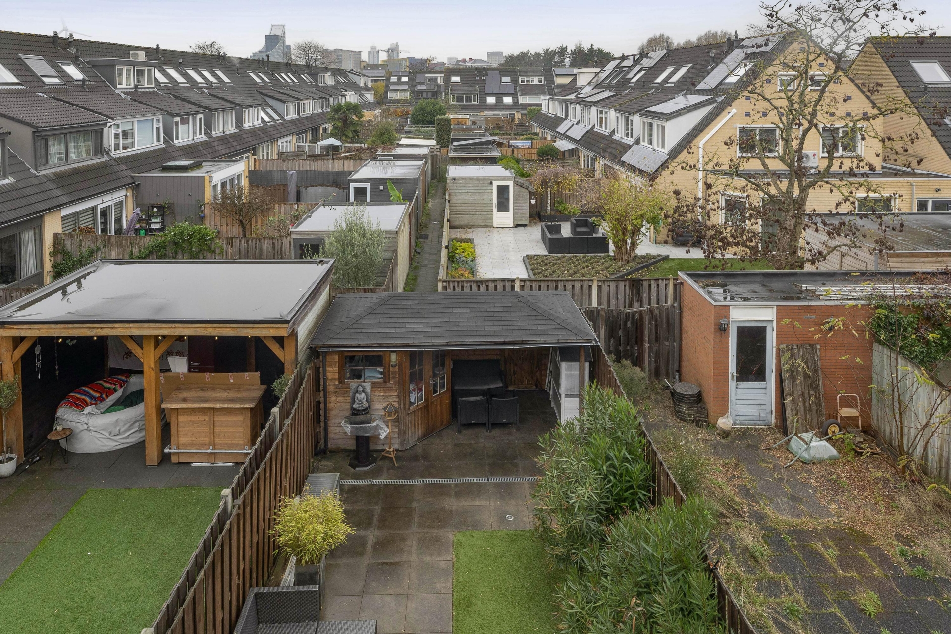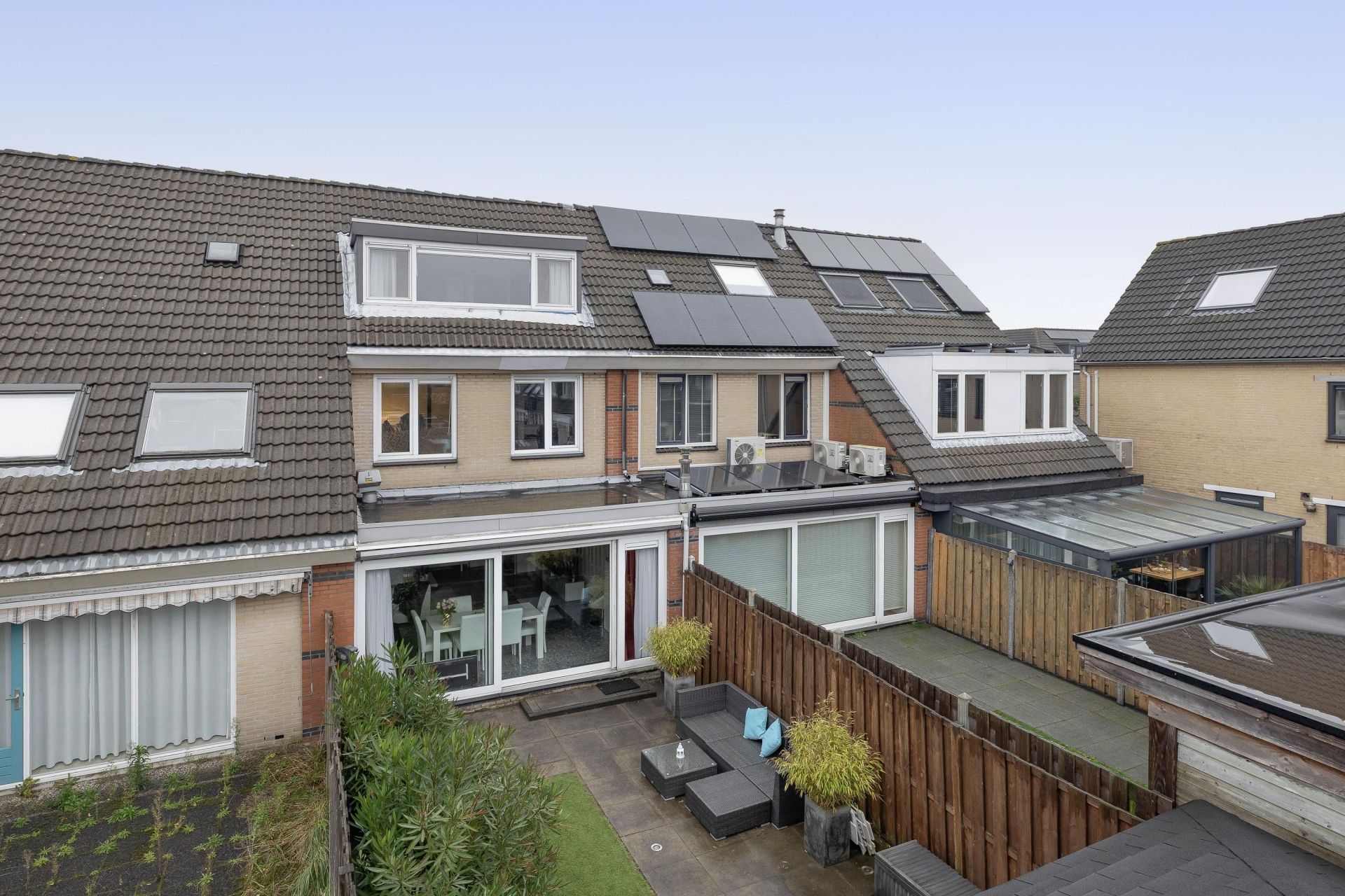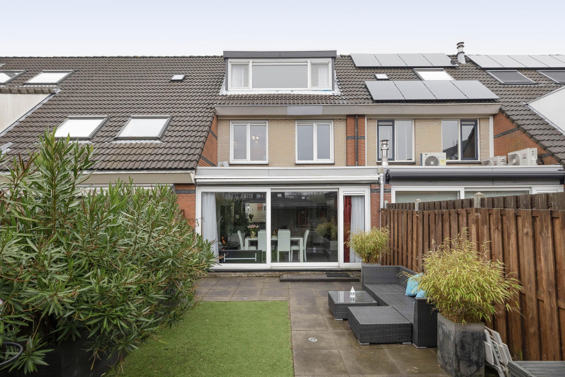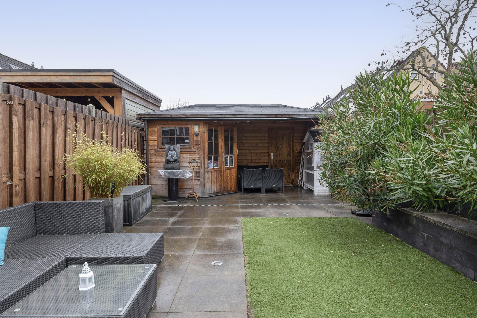 De voortuin (24m²) is geheel afgezet middels een fraai sierhekwerk. De tuin is opgedeeld in een pad naar de voordeur en een groenstrook met daarin vaste beplanting (Japanse esdoorn bomen). De achtertuin is gelegen op het zuidwesten en is met circa 61m² ruim bemeten. De achtertuin is zowel vanuit de living, als via een achterpad bereikbaar. De tuin is geheel afgezet en voorzien van fraai straatwerk, in combinatie met een gazon, grote plantenbakken met daarin verzorgde, oleander bomen die in de lente en zomer prachtige bloemen vertonen. Naast elektrische zonwering boven het terras, treffen we achter in de tuin nog een vrijstaand houten berging met overkapping voor de gezellige momenten. Er is, net als in de voortuin, ook een buitenkraan aanwezig.