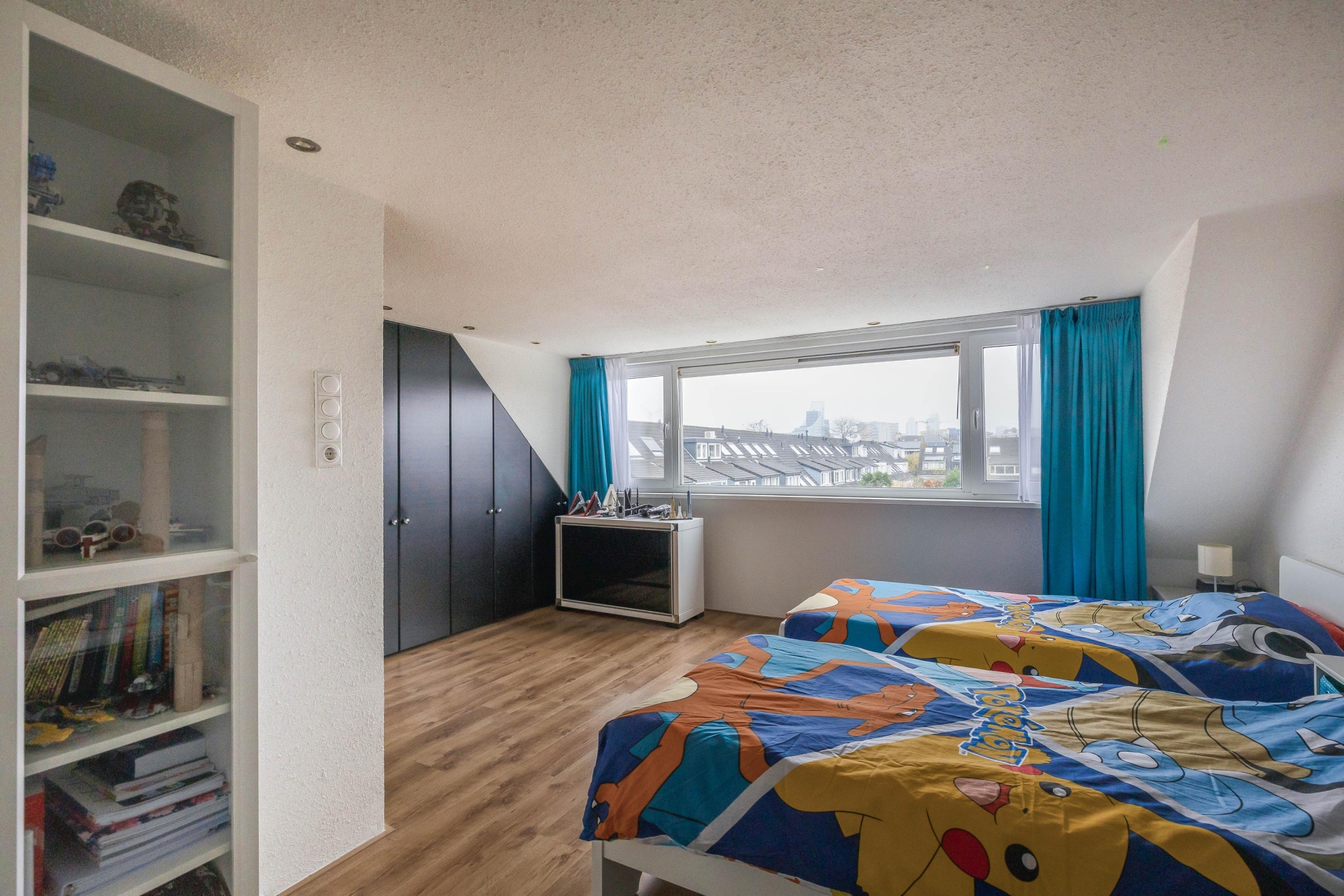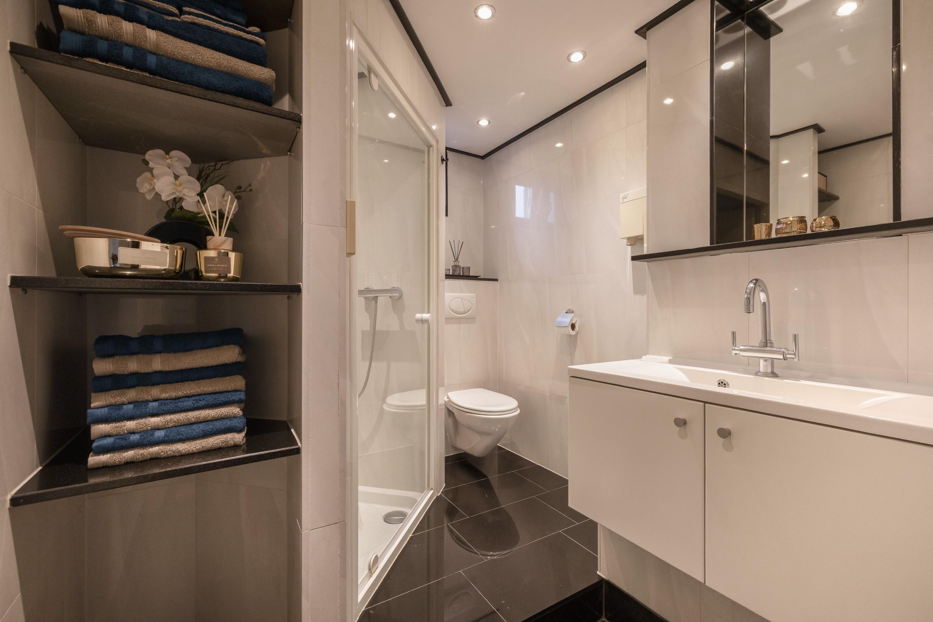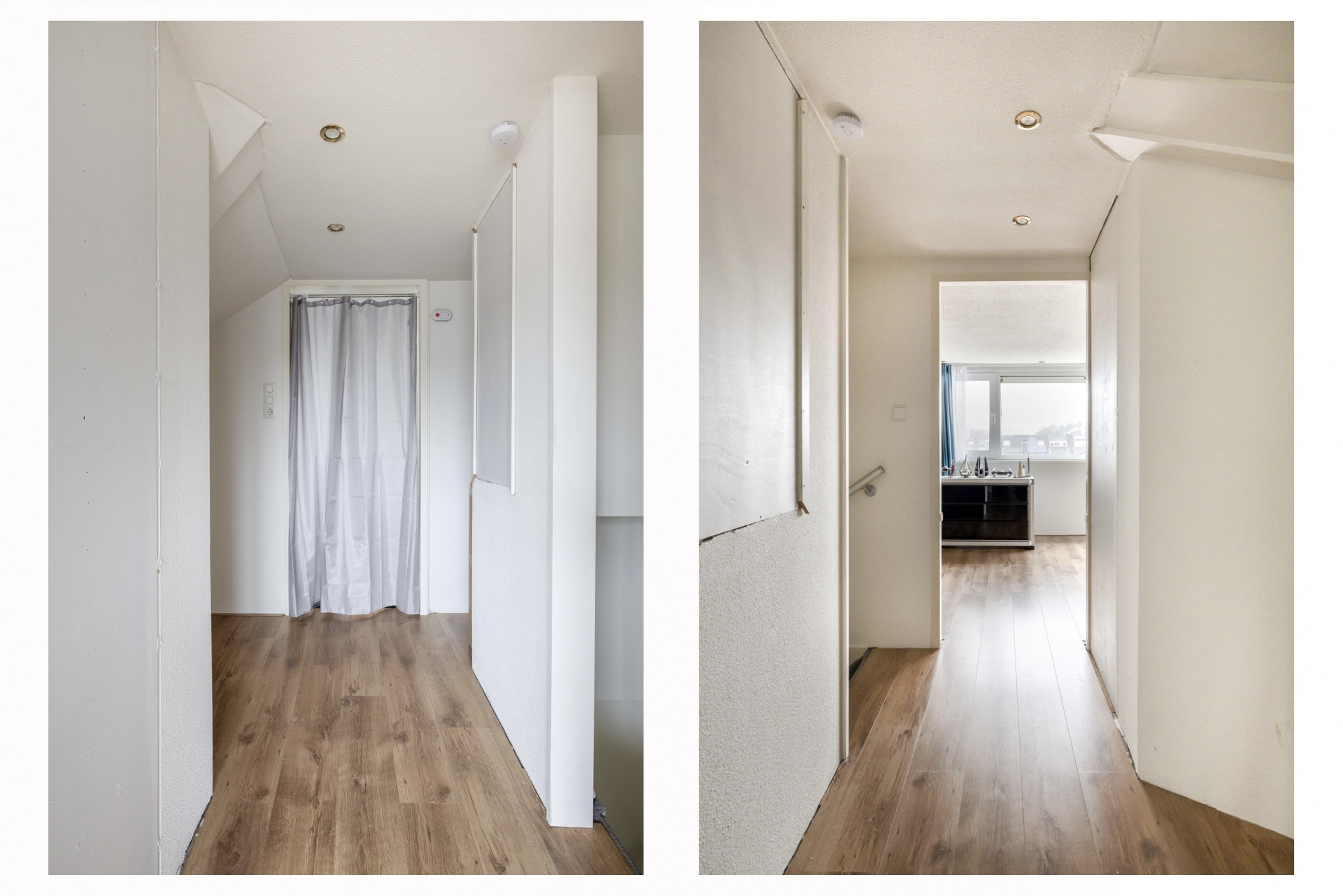 Op de tweede etage vinden we aan de achterzijde (tuinzijde) een riante slaapkamer (22m²) met inbouwkasten, inbouwspots en brede dakkapel met kunststof kozijnen! Deze slaapkamer is perfect voor een ruime masterbedroom! Aan de voorzijde bevindt zich een tweede badkamer met daarin een groot Velux dakraam, toilet, wastafel en opstelplaats voor wasapparatuur. Aan de linkerzijde is er zelfs ruimte voor het realiseren van een bad. Ook is er hiervandaan toegang tot de bovengelegen vlizo zolder. Op de overloop treffen we ook de C.V. ketel, evenals de toegang tot een extra bergruimte onder de schuine kap. Net als op de eerste etage ligt ook op deze etage een doorlopende laminaatvloer.