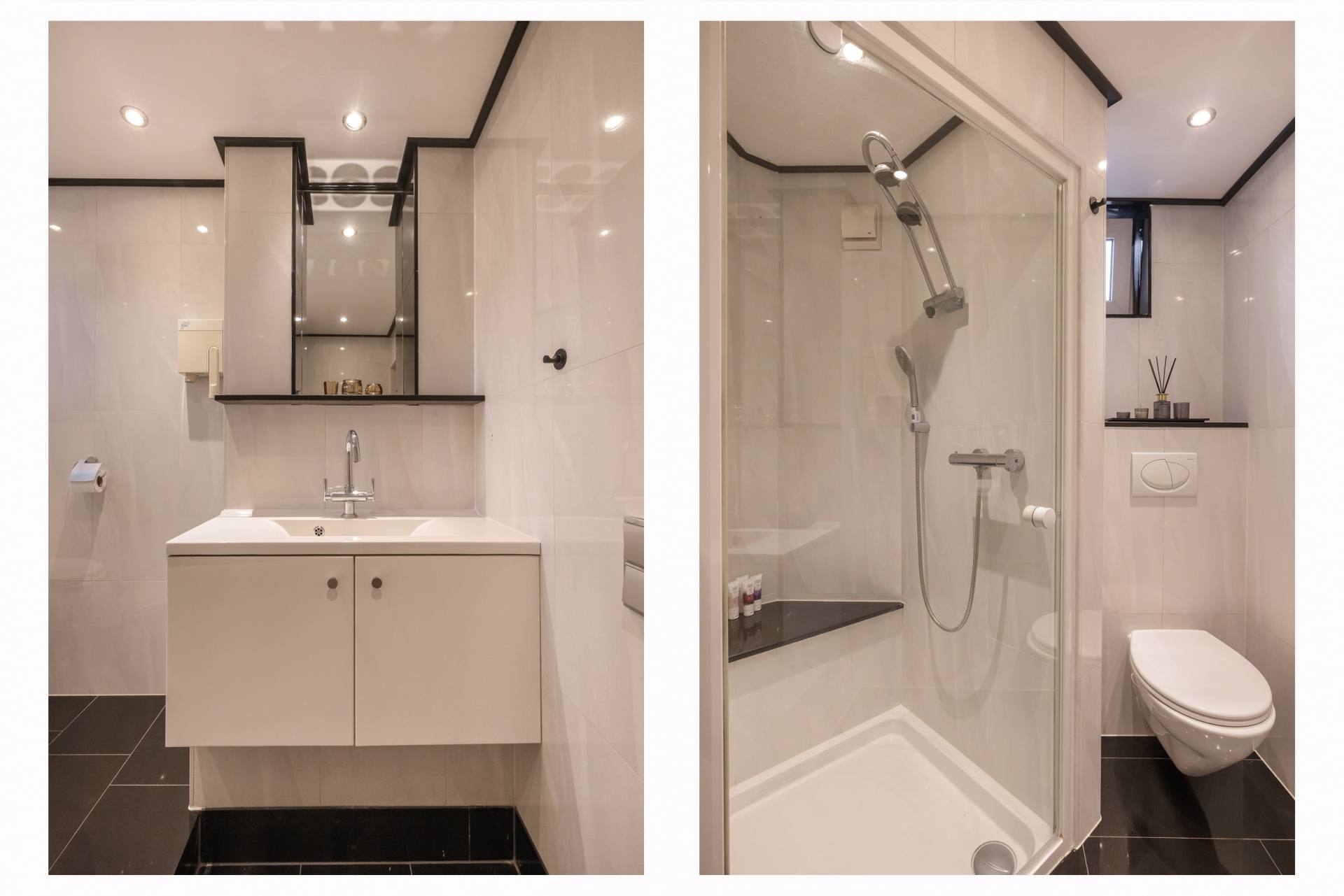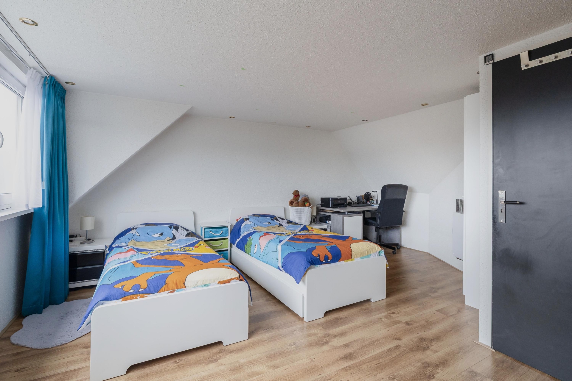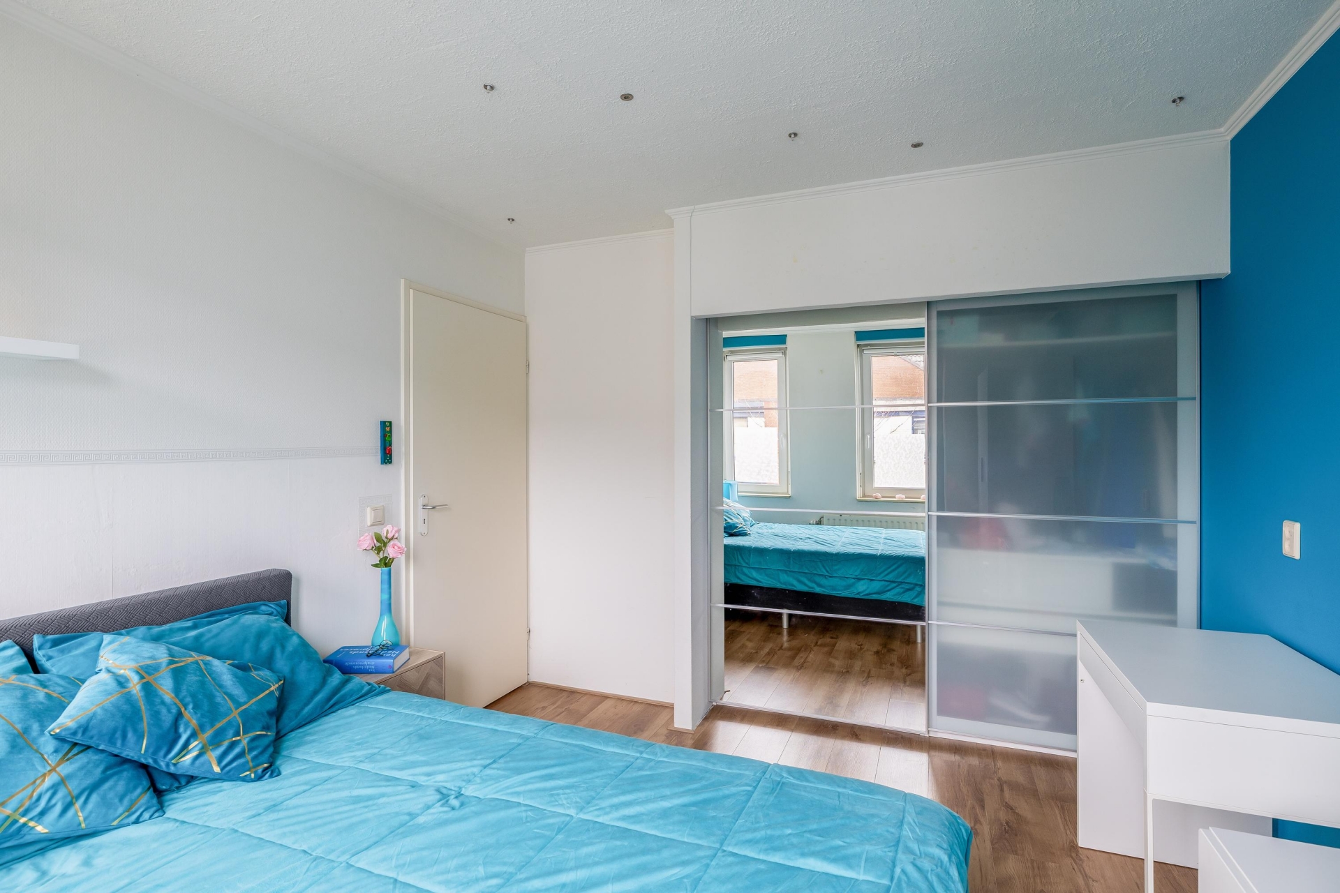 Op de tweede etage vinden we aan de achterzijde (tuinzijde) een riante slaapkamer (22m²) met inbouwkasten, inbouwspots en brede dakkapel met kunststof kozijnen! Deze slaapkamer is perfect voor een ruime masterbedroom! Aan de voorzijde bevindt zich een tweede badkamer met daarin een groot Velux dakraam, toilet, wastafel en opstelplaats voor wasapparatuur. Aan de linkerzijde is er zelfs ruimte voor het realiseren van een bad. Ook is er hiervandaan toegang tot de bovengelegen vlizo zolder. Op de overloop treffen we ook de C.V. ketel, evenals de toegang tot een extra bergruimte onder de schuine kap. Net als op de eerste etage ligt ook op deze etage een doorlopende laminaatvloer.
