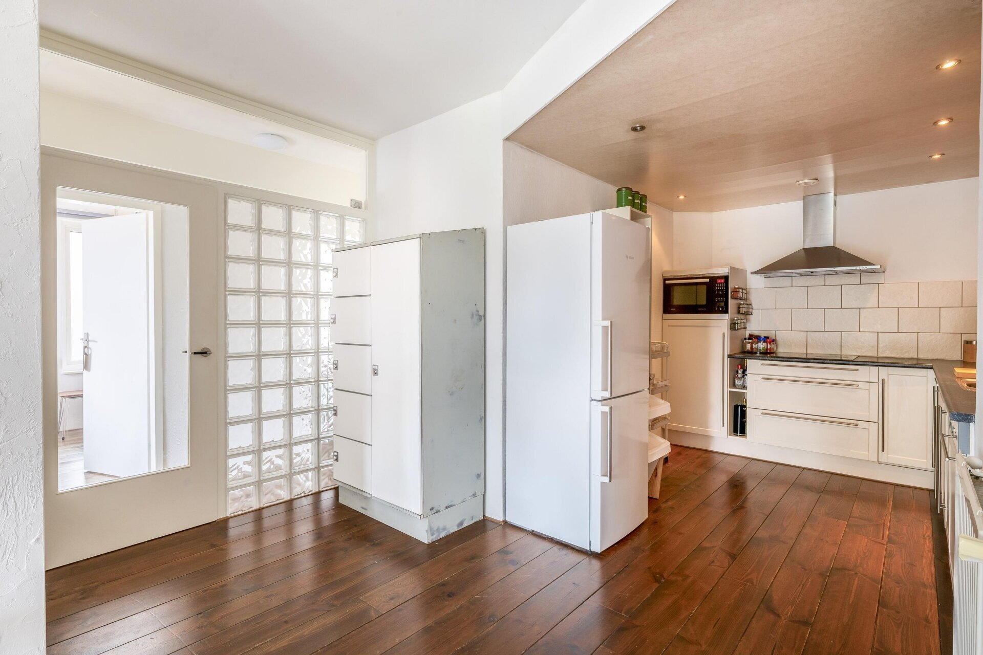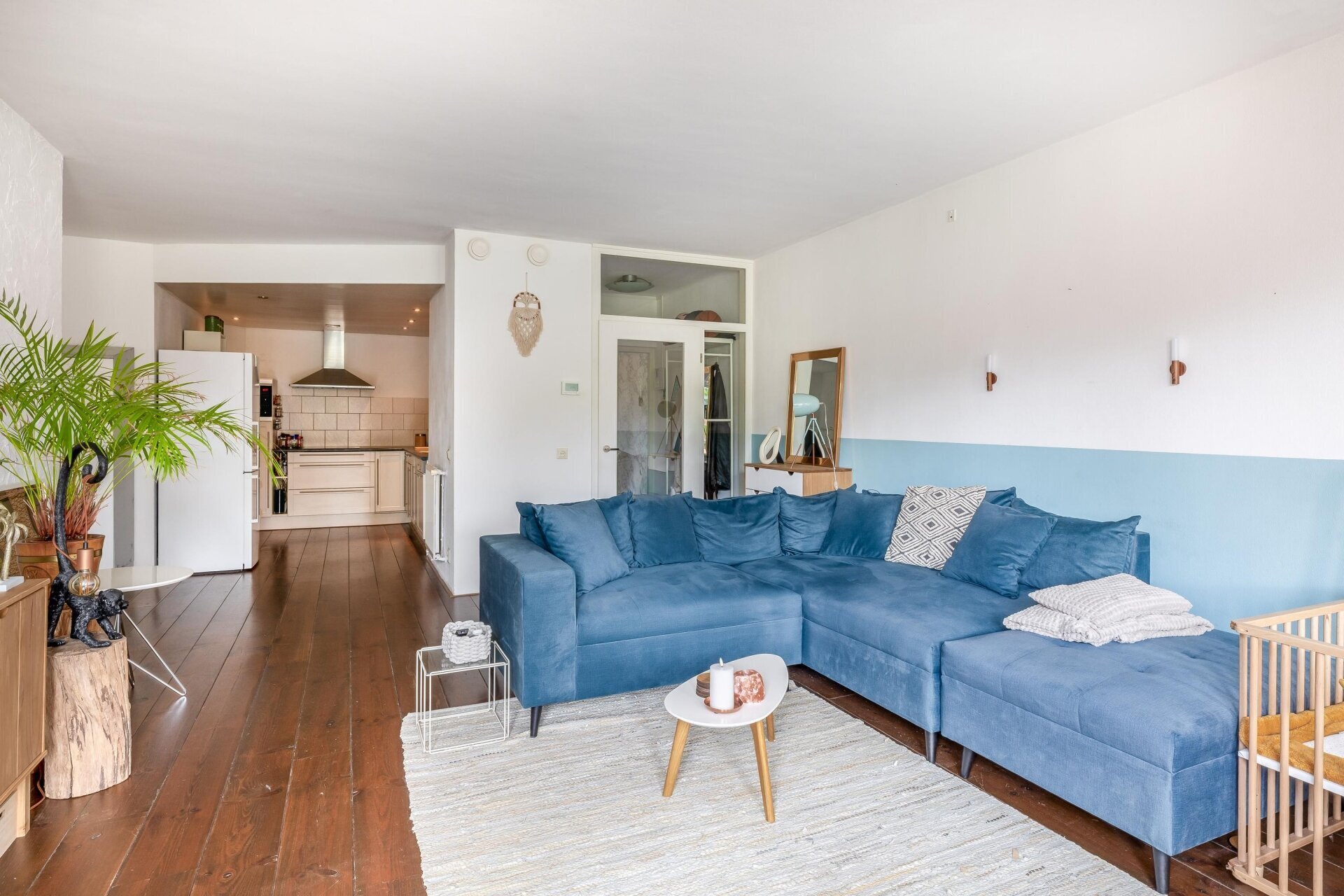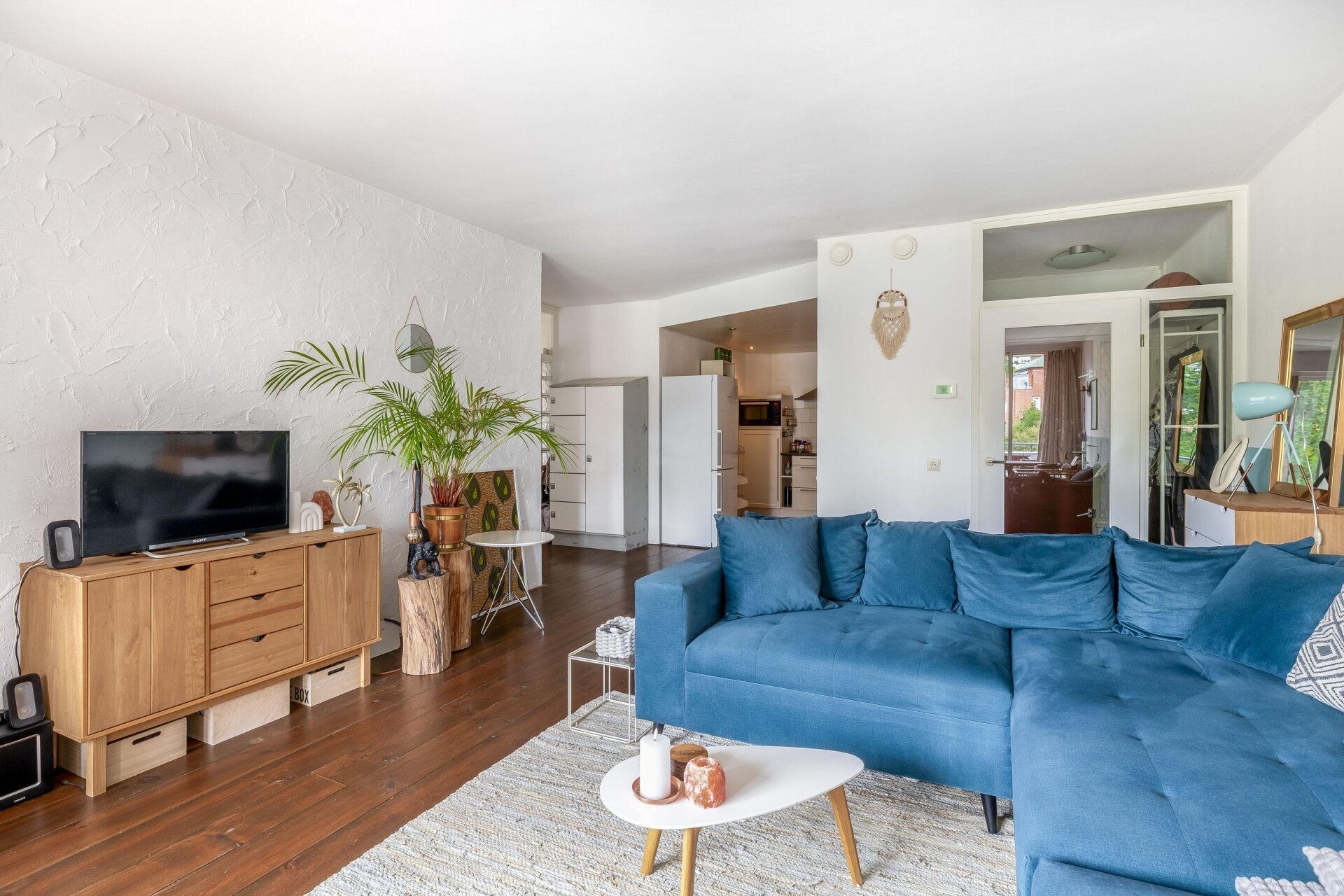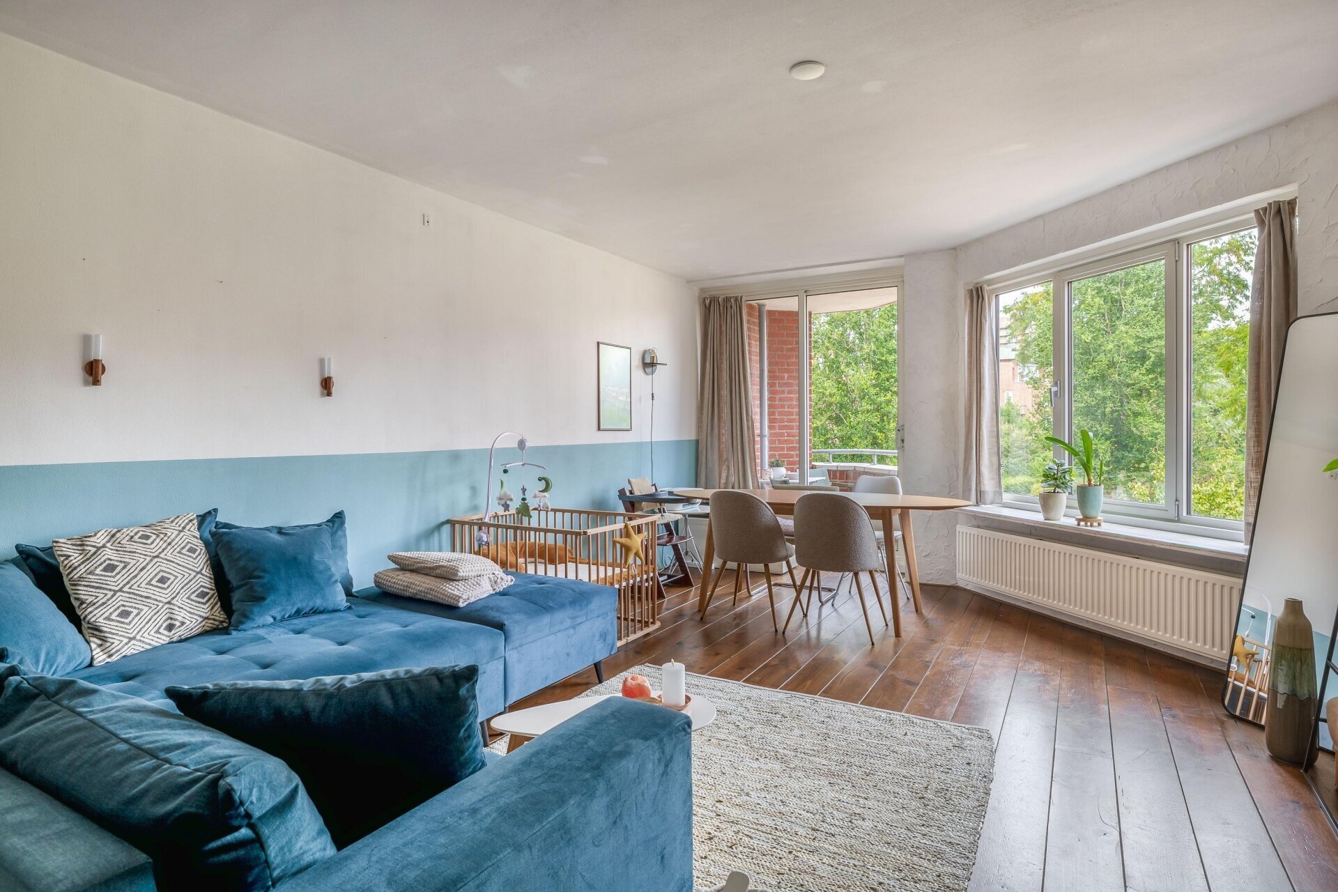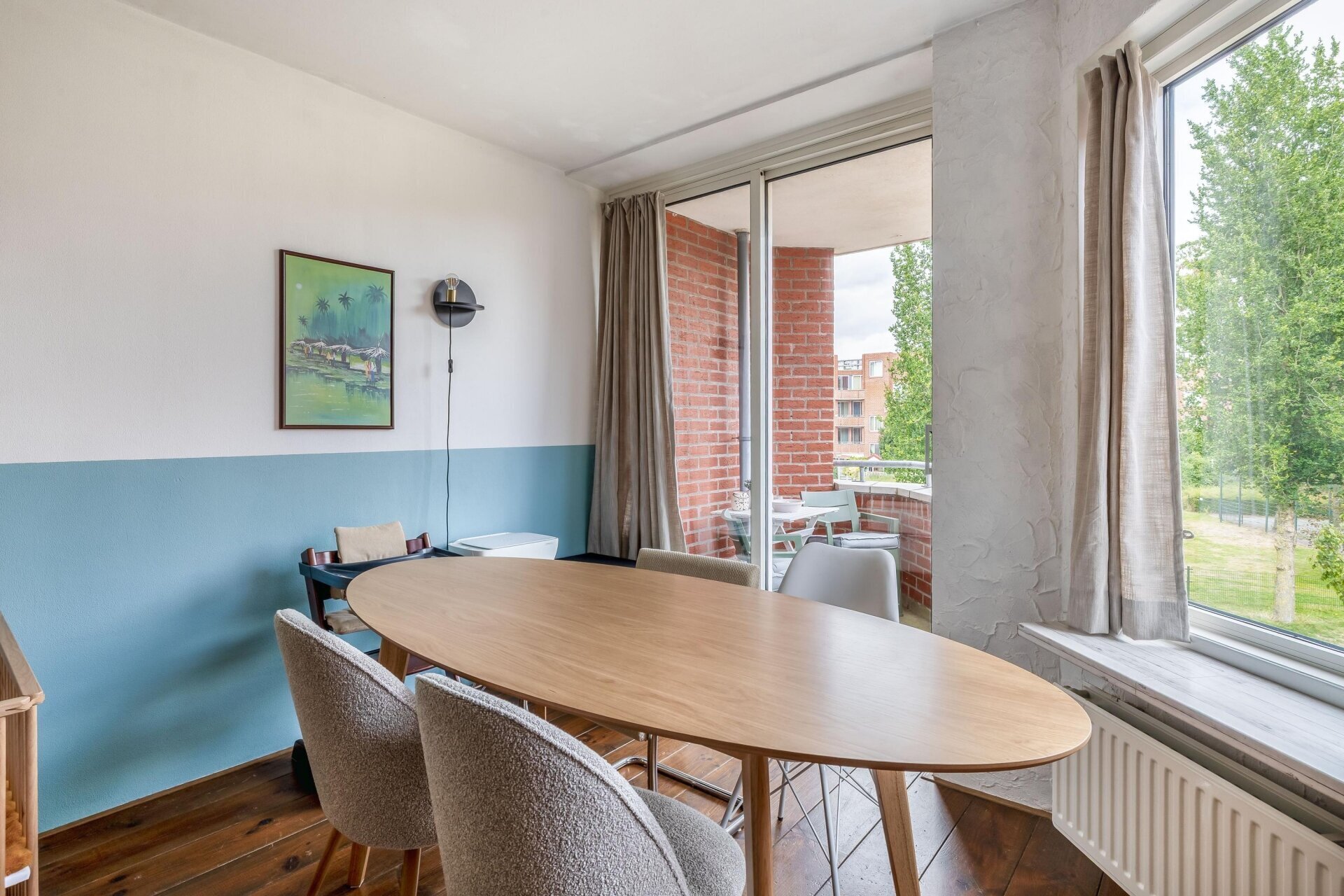 Zodra je de woonkamer binnenkomt valt één ding direct op: het licht. Dankzij de grote ramen en het vrije uitzicht over het groen komt het daglicht hier volop binnen. De houten vloer geeft de ruimte warmte, terwijl de wanden zorgen voor een frisse uitstraling. Je kunt hier met gemak een ruime zithoek én eettafel kwijt – ideaal voor gezellige avonden met vrienden of gewoon lekker ontspannen met een boek. Vanuit de woonkamer stap je zo het balkon op: een fijne plek voor je ochtendkoffie in de zon of juist voor een drankje in de schaduw aan het eind van de dag.