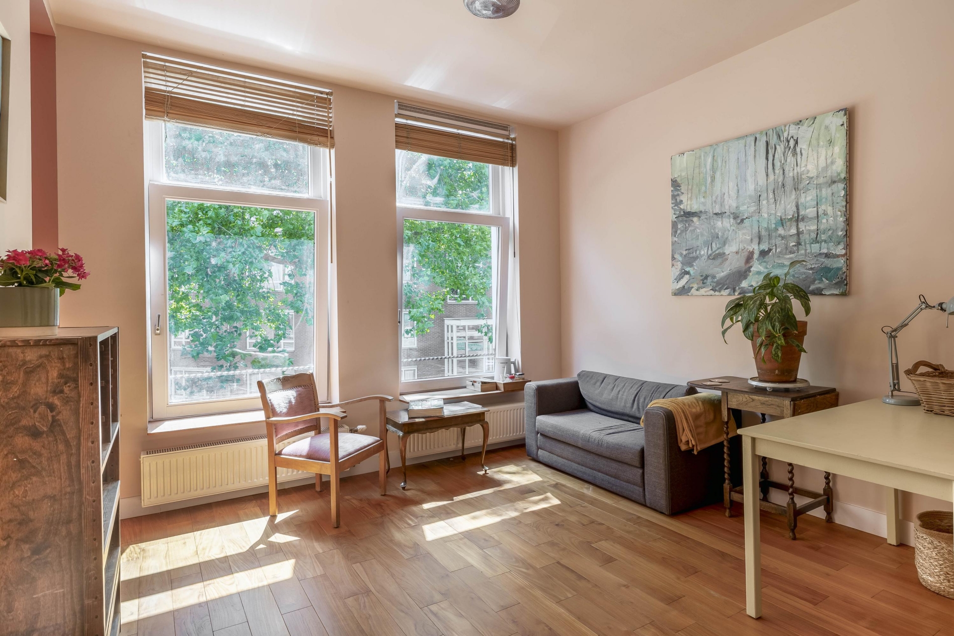 De derde verdieping is ingericht met een keukenruimte waar alles samenkomt. Hier tref je niet alleen een ruime keuken, maar ook een lichte slaapkamer die desgewenst dienst kan doen als hobbyruimte of werkplek. Door de hoogte en het uitzicht ervaar je hier een oase van rust, midden in de stad. De verkoper noemt dit dan ook niet voor niks 'het hart van het huis'.