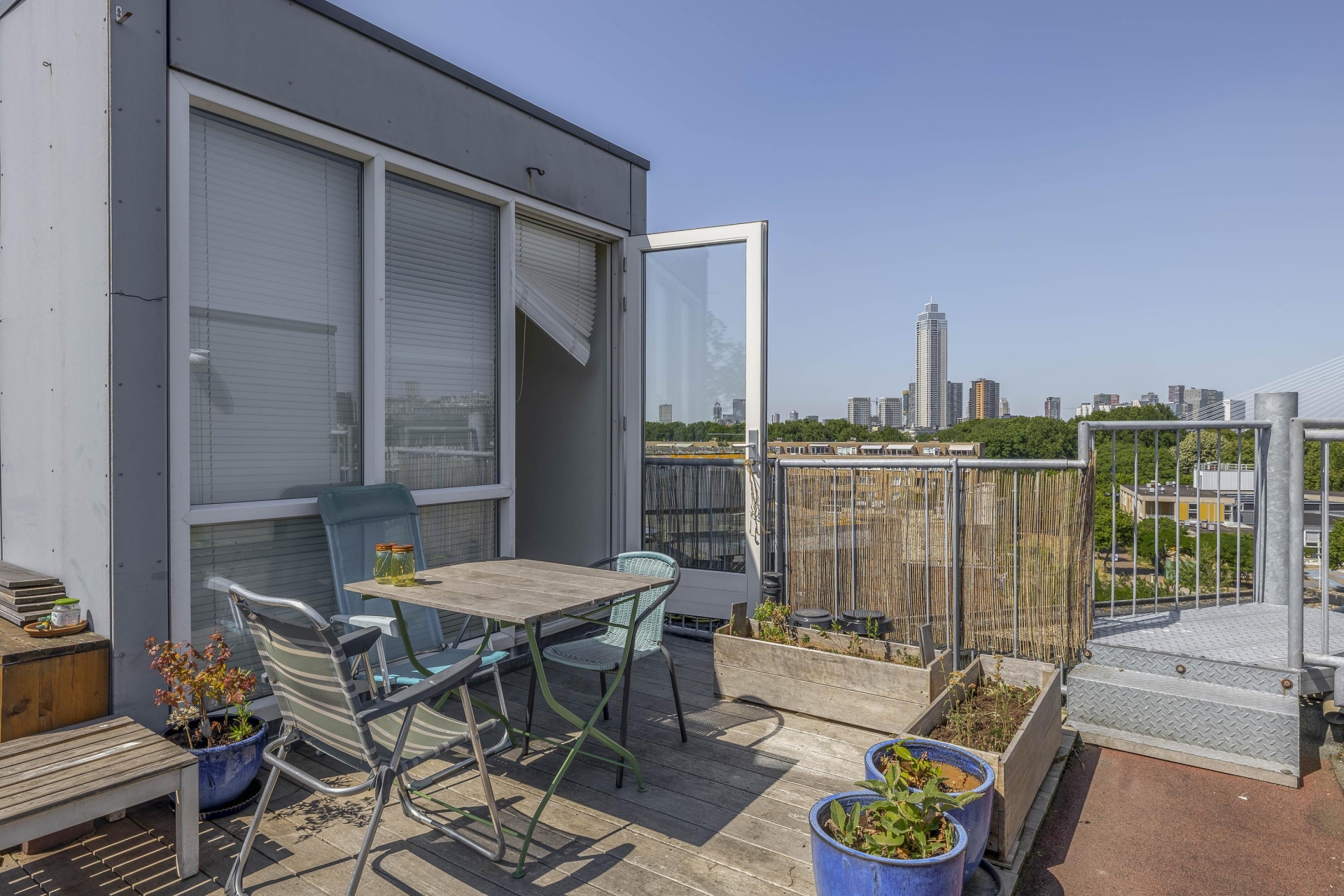 ZONNIG DAKTERRAS MET ROTTERDAMS PANORAMA