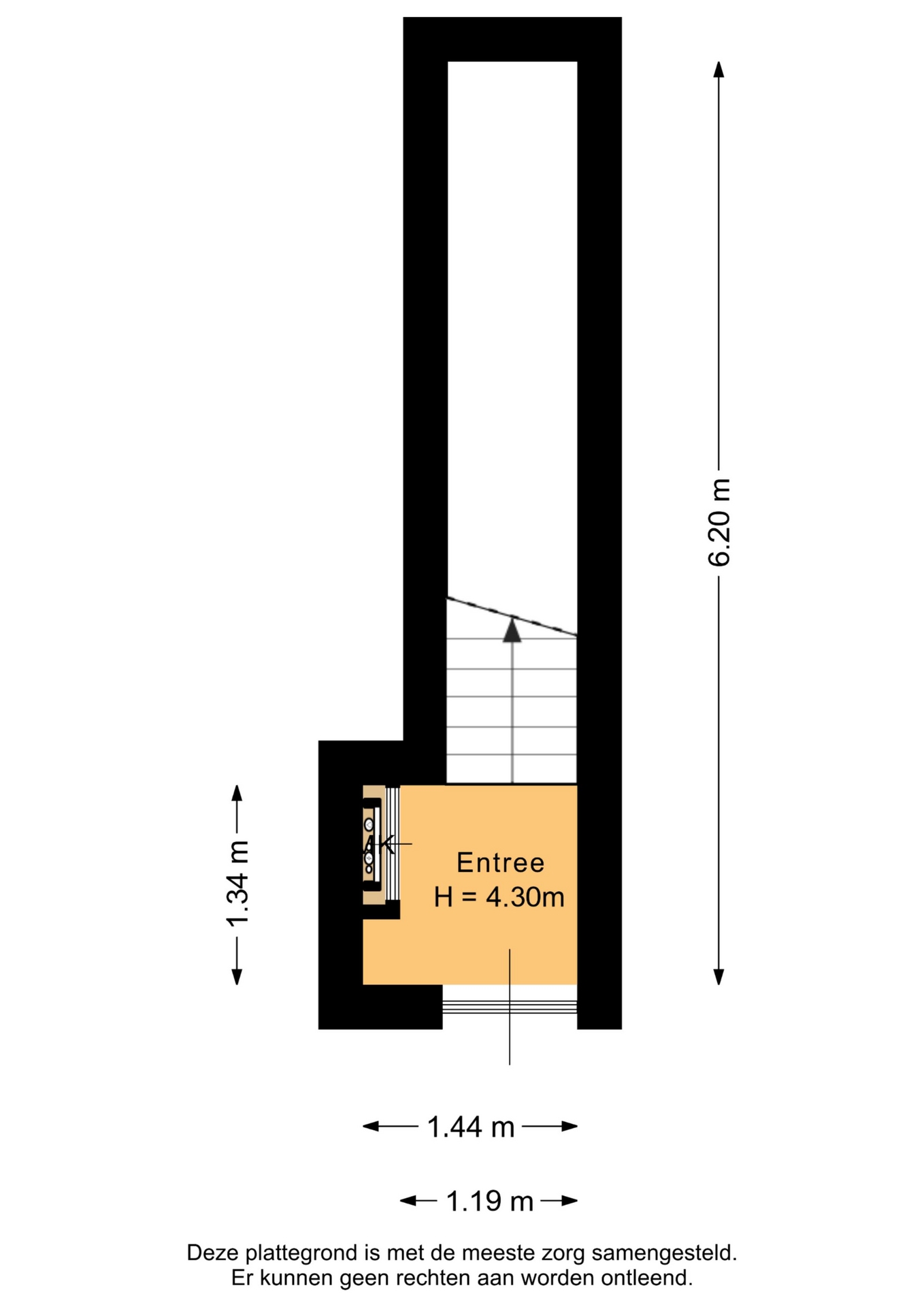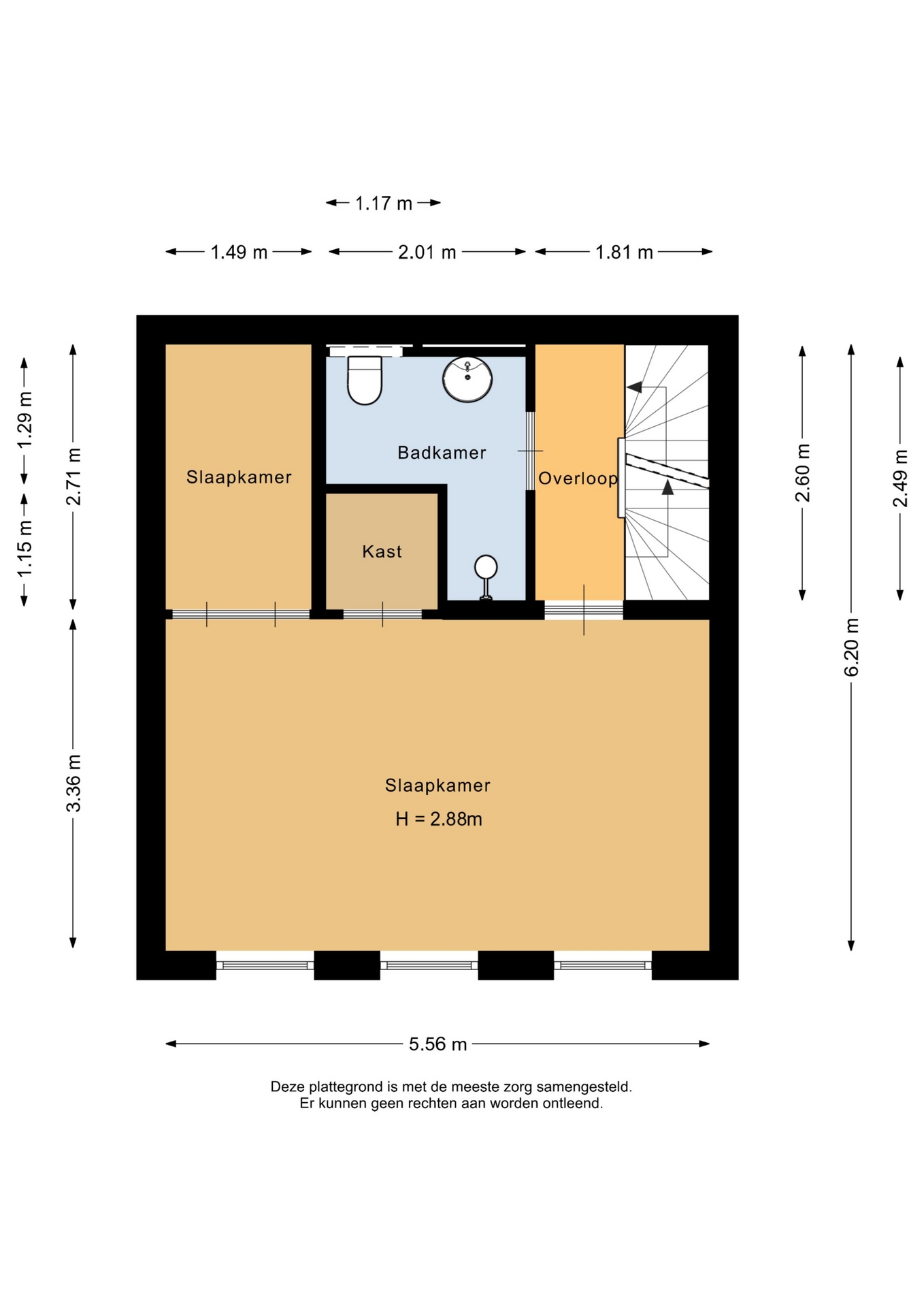 “Deze informatie is door ons met de nodige zorgvuldigheid samengesteld. Onzerzijds wordt echter geen enkele aansprakelijkheid aanvaard voor enige onvolledigheid, onjuistheid of anderszins, dan wel de gevolgen daarvan. Alle opgegeven maten en oppervlakten zijn indicatief.”