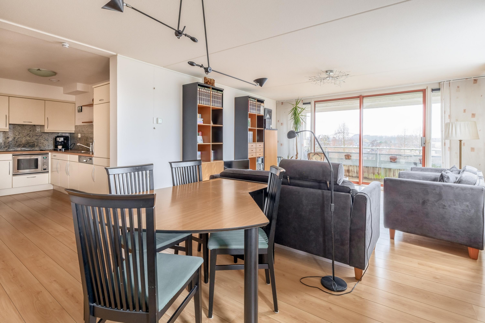 - Lichte woonkamer met half open keuken;
