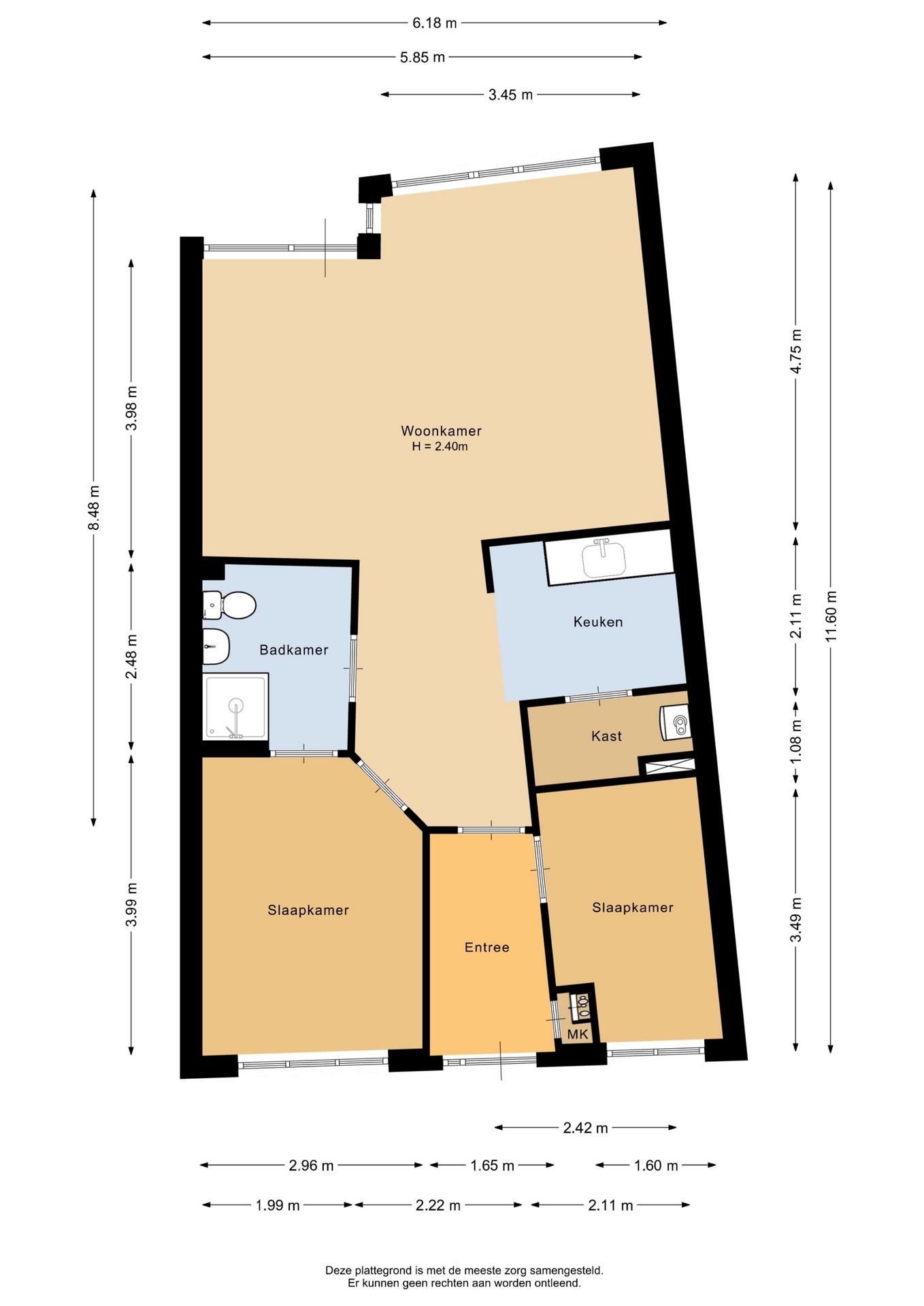 “Deze informatie is door ons met de nodige zorgvuldigheid samengesteld. Onzerzijds wordt echter geen enkele aansprakelijkheid aanvaard voor enige onvolledigheid, onjuistheid of anderszins, dan wel de gevolgen daarvan. Alle opgegeven maten en oppervlakten zijn indicatief.”