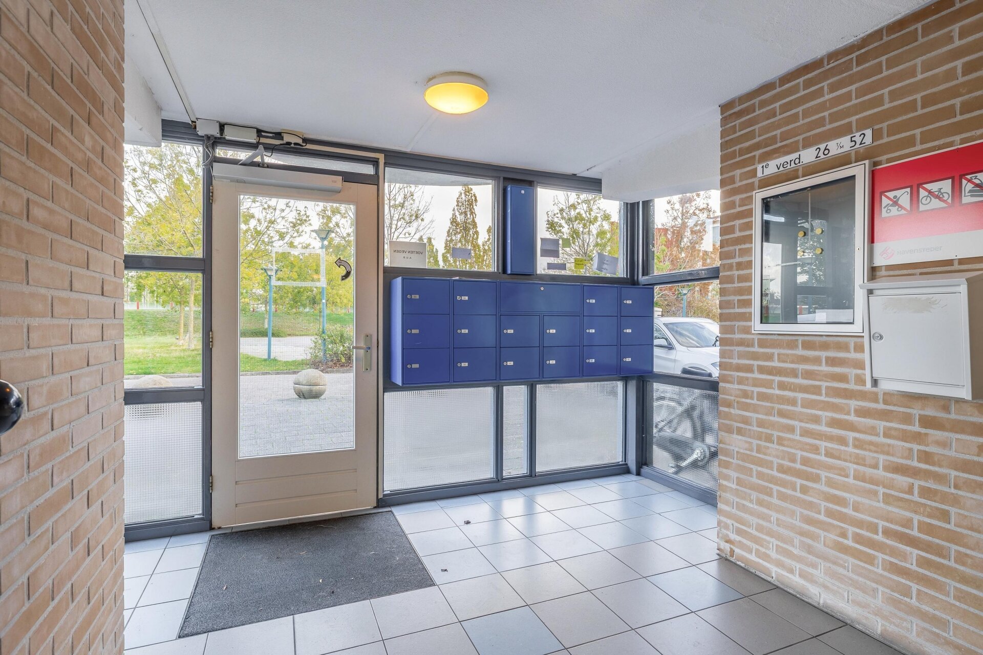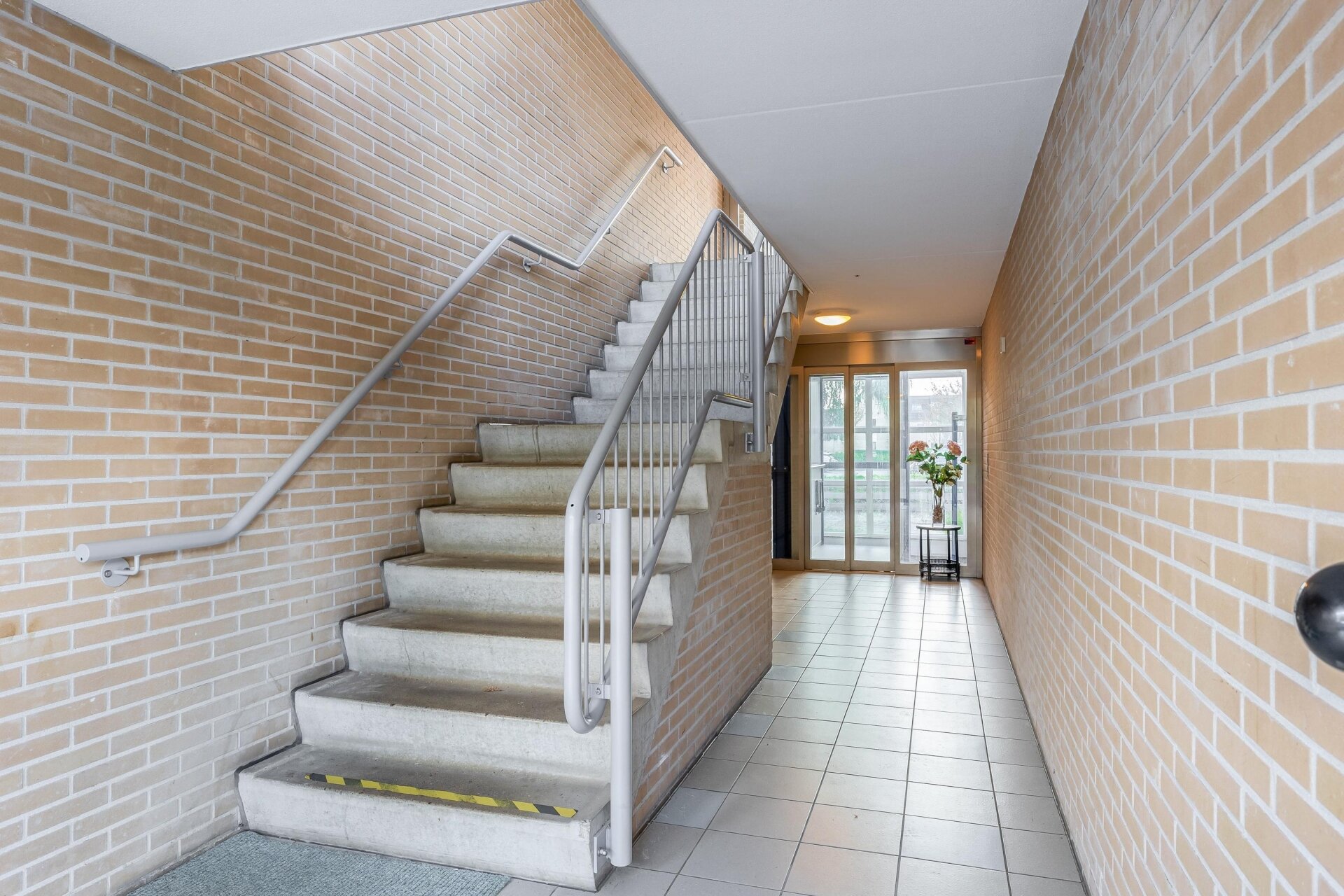Op de begane grond treft u het bellentableau, het trappenhuis, de lift en toegang tot de bergingen.