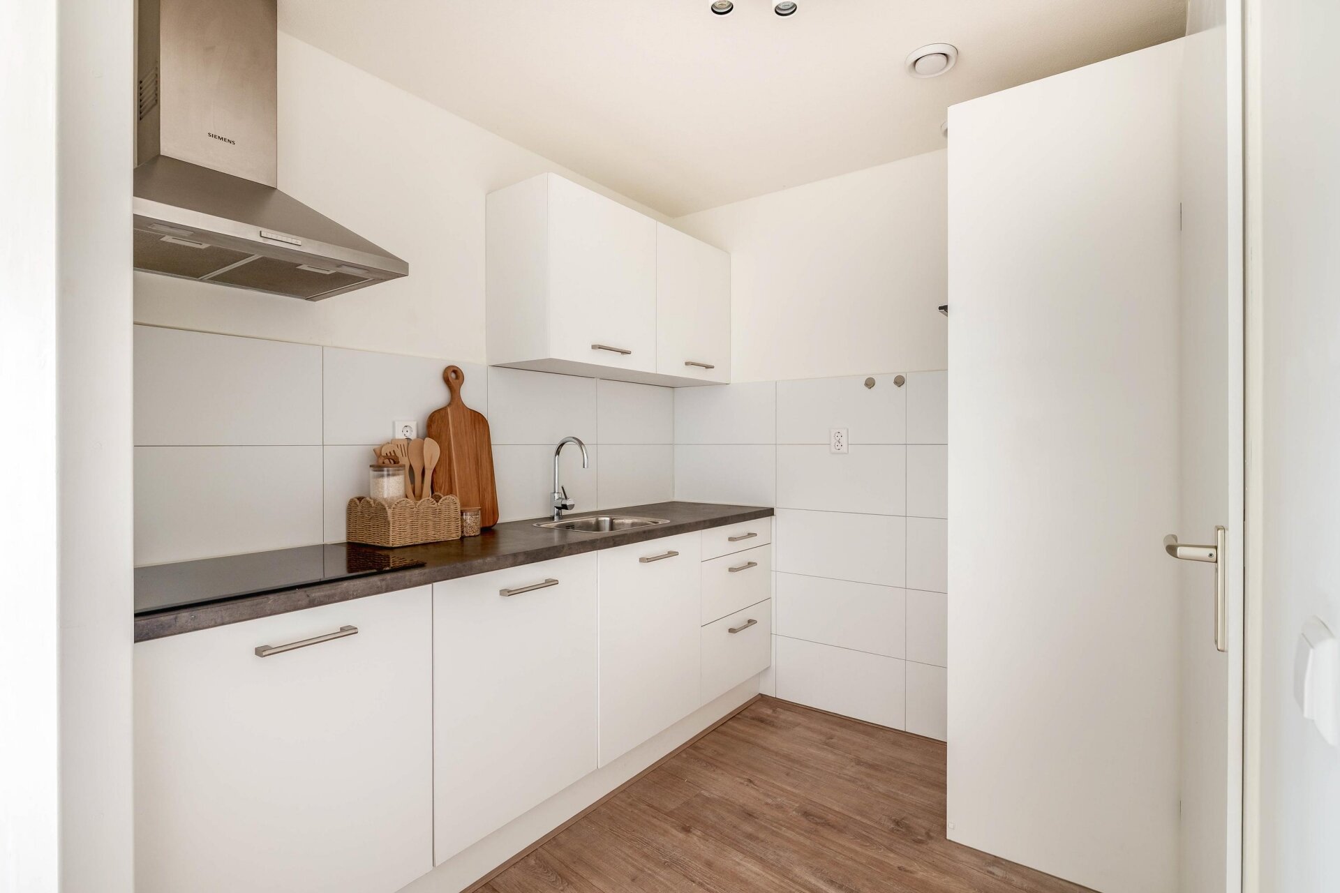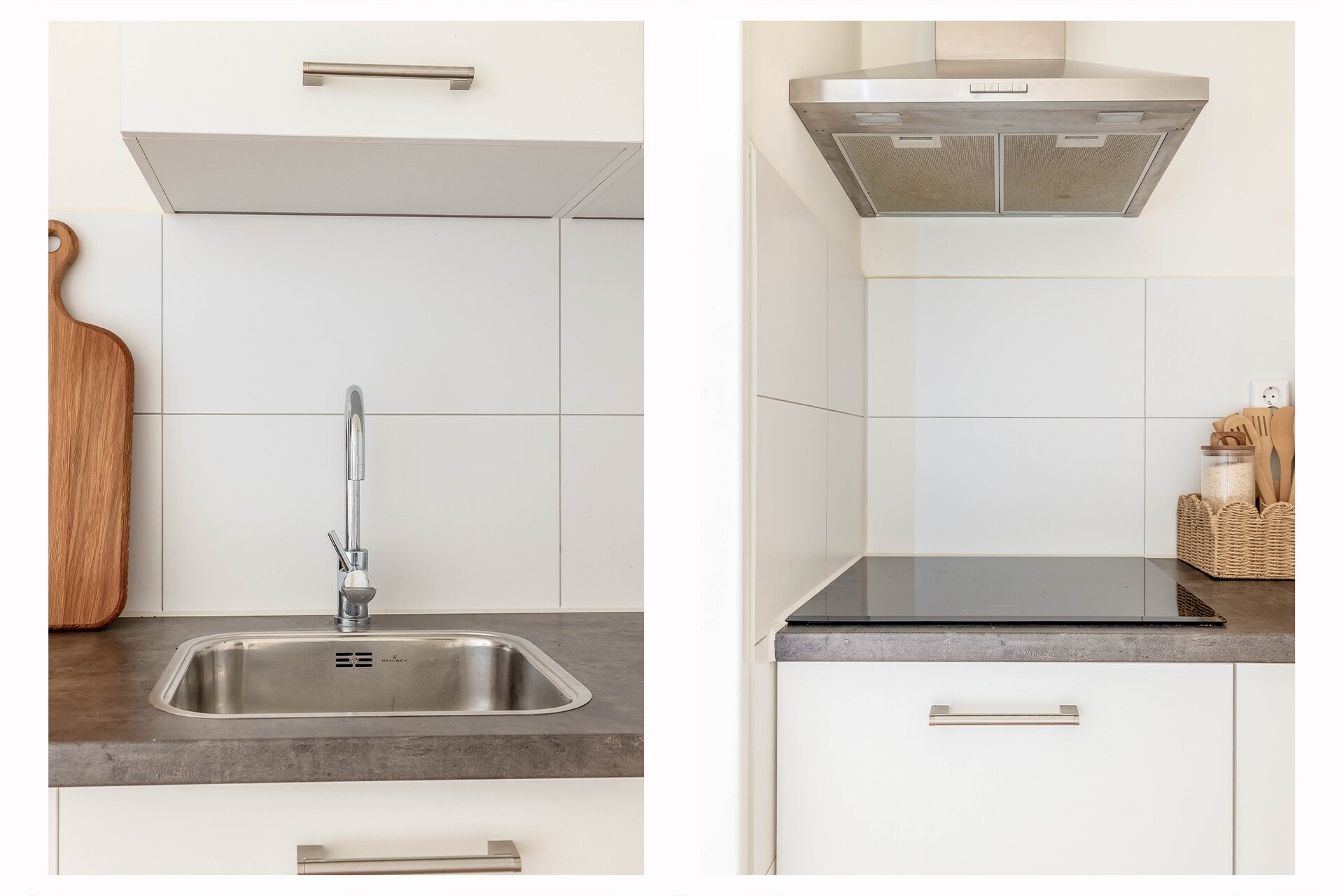 - De keuken is voorzien van een inductiekookplaat, afzuigkap, vaatwasser, oven en koelkast.