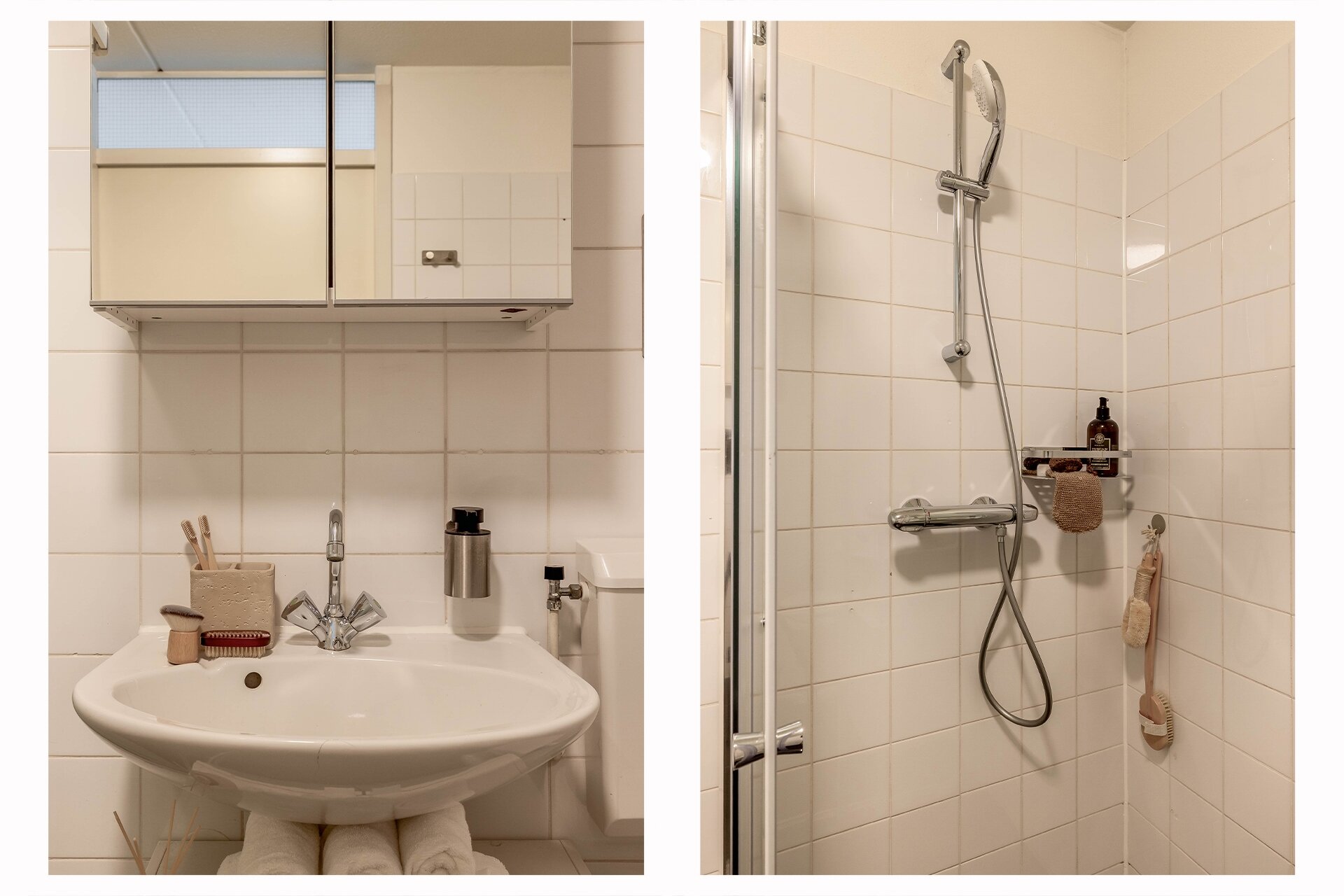 - De badkamer is voorzien van een toilet, wastafel en douche. Tevens is hier de opstelplaats voor de wasapparatuur;