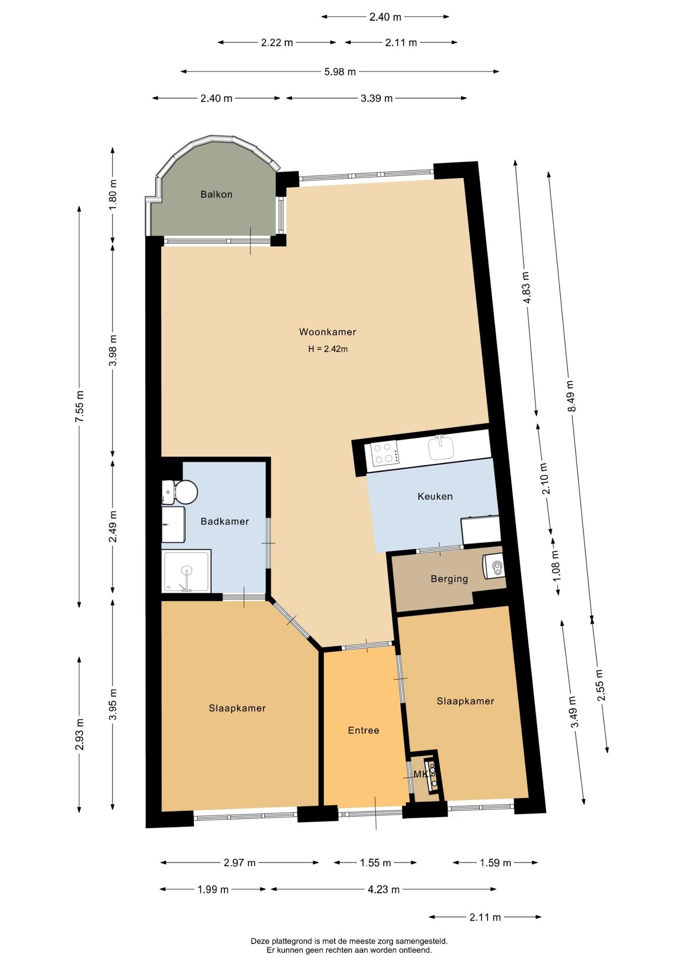 “Deze informatie is door ons met de nodige zorgvuldigheid samengesteld. Onzerzijds wordt echter geen enkele aansprakelijkheid aanvaard voor enige onvolledigheid, onjuistheid of anderszins, dan wel de gevolgen daarvan. Alle opgegeven maten en oppervlakten zijn indicatief.”