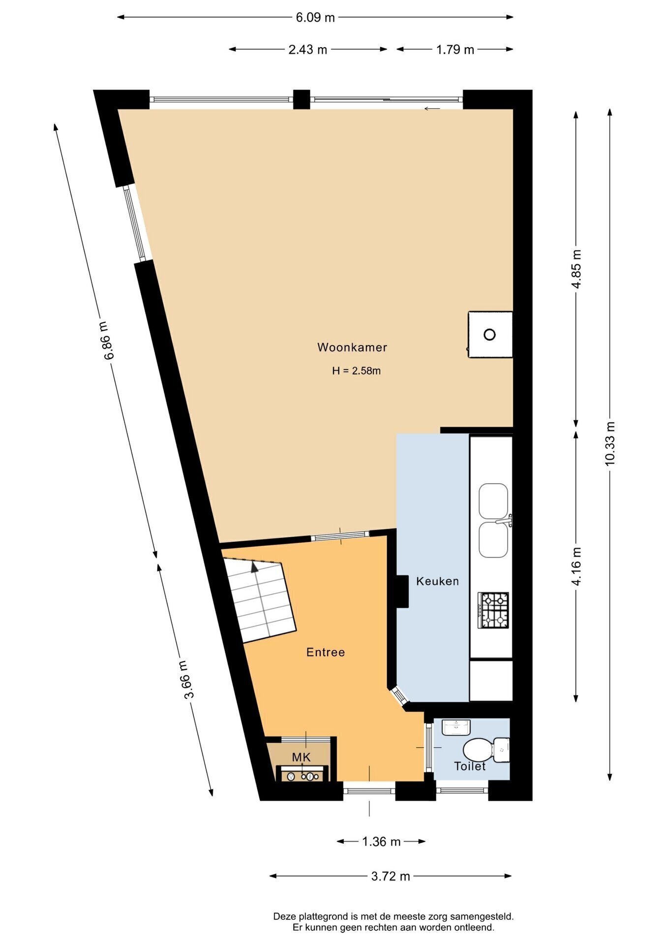 “Deze informatie is door ons met de nodige zorgvuldigheid samengesteld. Onzerzijds wordt echter geen enkele aansprakelijkheid aanvaard voor enige onvolledigheid, onjuistheid of anderszins, dan wel de gevolgen daarvan. Alle opgegeven maten en oppervlakten zijn indicatief.”