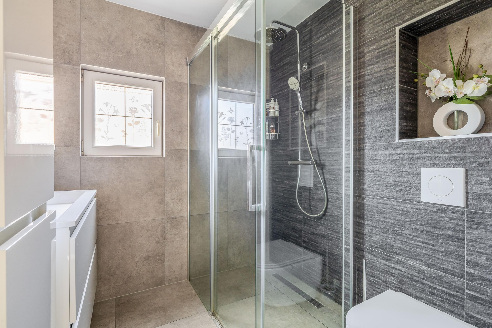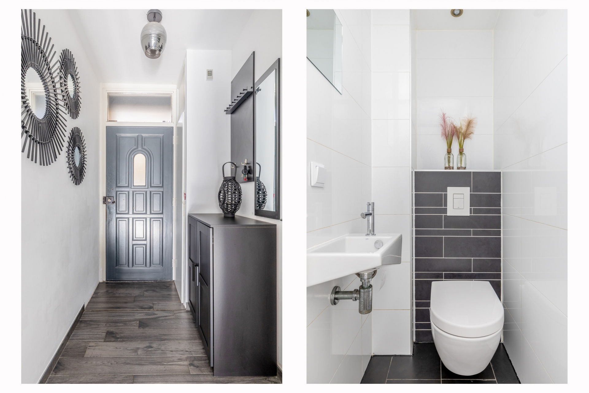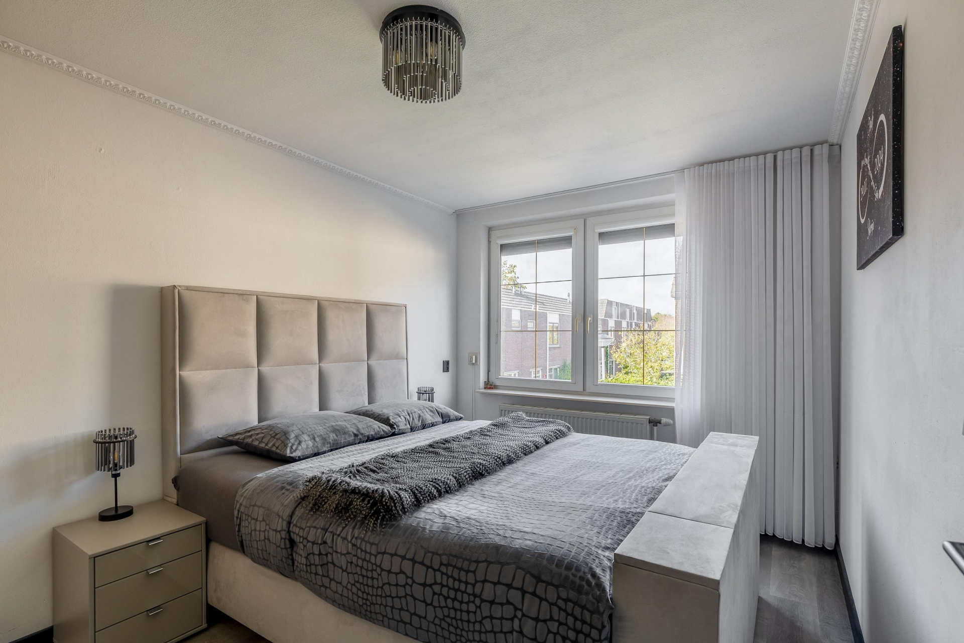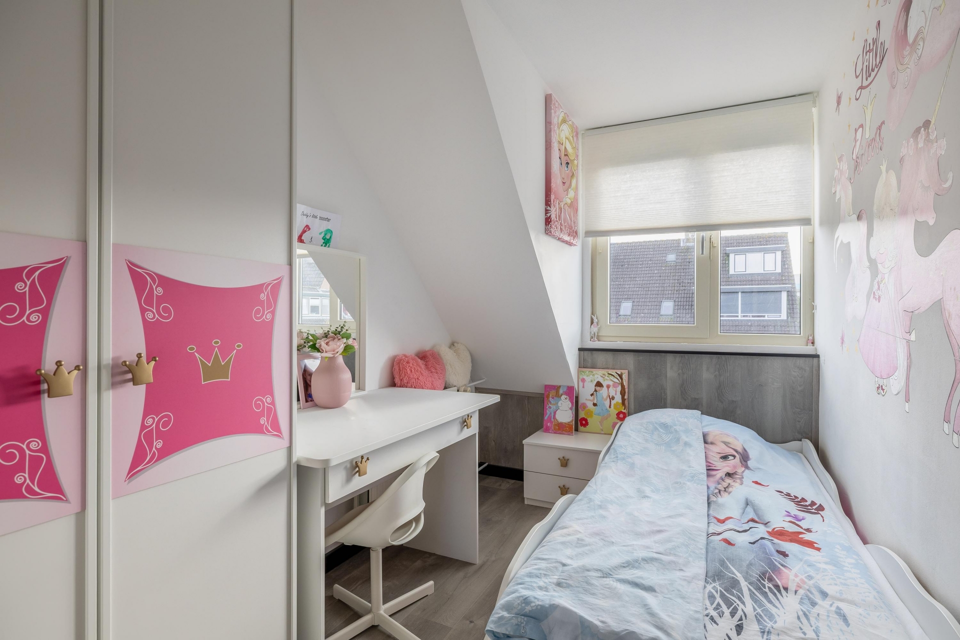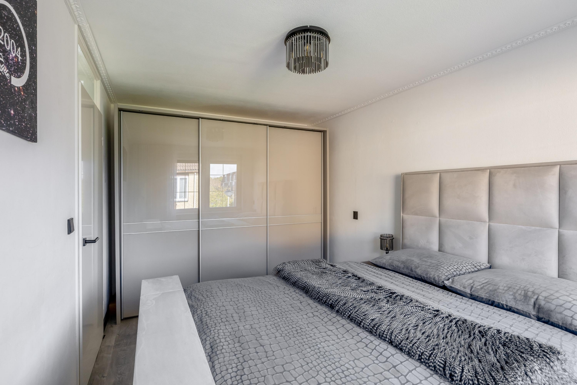Op de eerste verdieping bevinden zich drie slaapkamers, waaronder een royale hoofdslaapkamer aan de voorzijde met grote schuifkast en nette afwerking. Aan de achterzijde vind je een gezellige kinderkamer én een extra kamer die prima dienst kan doen als thuiswerkplek of hobbyruimte. Ook is hier een dakkapel aanwezig, wat zorgt voor extra ruimte en licht. De badkamer is eveneens in 2022 vernieuwd en uitgerust met een ruime inloopdouche, modern wastafelmeubel, designradiator en tweede toilet – alles strak en tijdloos afgewerkt.