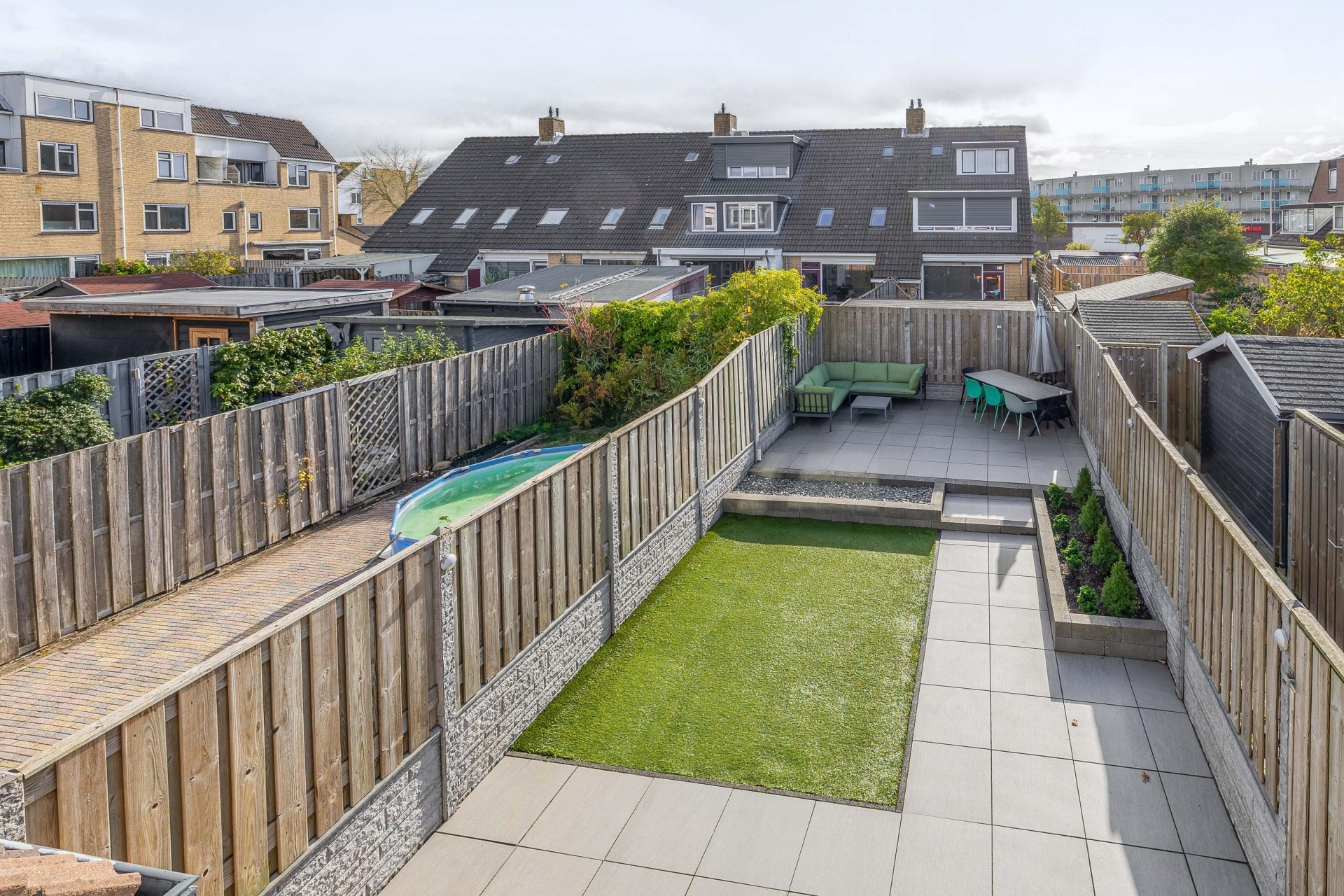 De achtertuin is een absoluut pluspunt: met een diepte van ca. 13 meter, een ligging op het zuiden én een dubbele schuifpui naar buiten toe is het hier écht genieten. De tuin is onderhoudsvriendelijk ingericht met kunstgras, bestrating, nette plantenbakken en stevige schuttingen op betonpalen. Achterin de tuin is ruimte genoeg voor een loungehoek of grote eettafel. Hier profiteer je volop van zon, rust en privacy. Ideaal voor mensen die houden van buiten leven zonder al te veel tuinwerk.