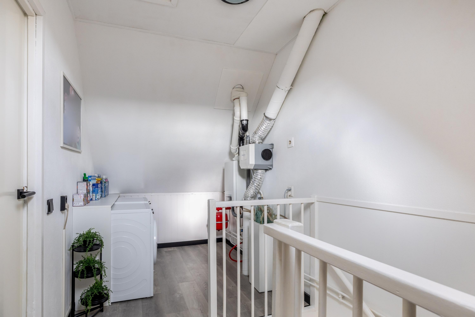 De tweede verdieping biedt een vierde, ruime slaapkamer met dak- en gevelramen en strakke vloer. Op de voorzolder is er een aparte wasruimte met aansluitingen voor wasmachine en droger én toegang tot een handige bergvliering. Perfect om seizoensspullen uit het zicht op te bergen.