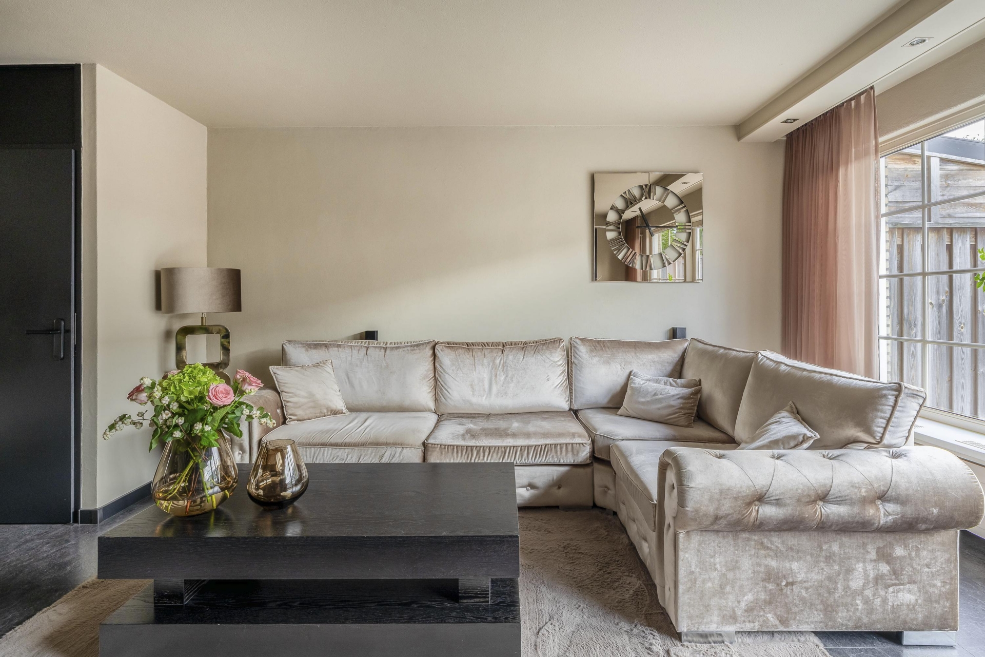 De ruime woonkamer is voorzien van grote raampartijen, wat zorgt voor een lichte ruimte. Vanuit de woonkamer is de open keuken toegankelijk. De keuken is verzorgd en voorzien van alle benodigde inbouwapparatuur.