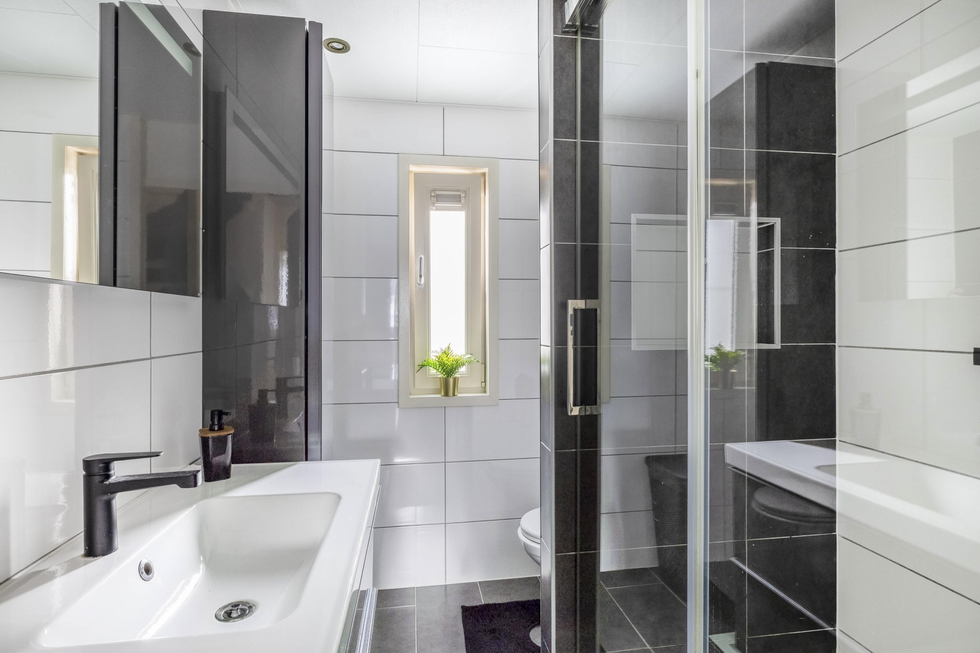 - Badkamer voorzien van een tweede toilet, inloopdouche, wastafelmeubel en vloerverwarming.