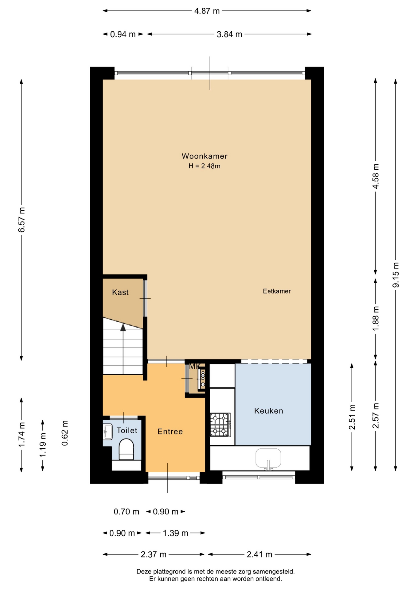 “Deze informatie is door ons met de nodige zorgvuldigheid samengesteld. Onzerzijds wordt echter geen enkele aansprakelijkheid aanvaard voor enige onvolledigheid, onjuistheid of anderszins, dan wel de gevolgen daarvan. Alle opgegeven maten en oppervlakten zijn indicatief.”