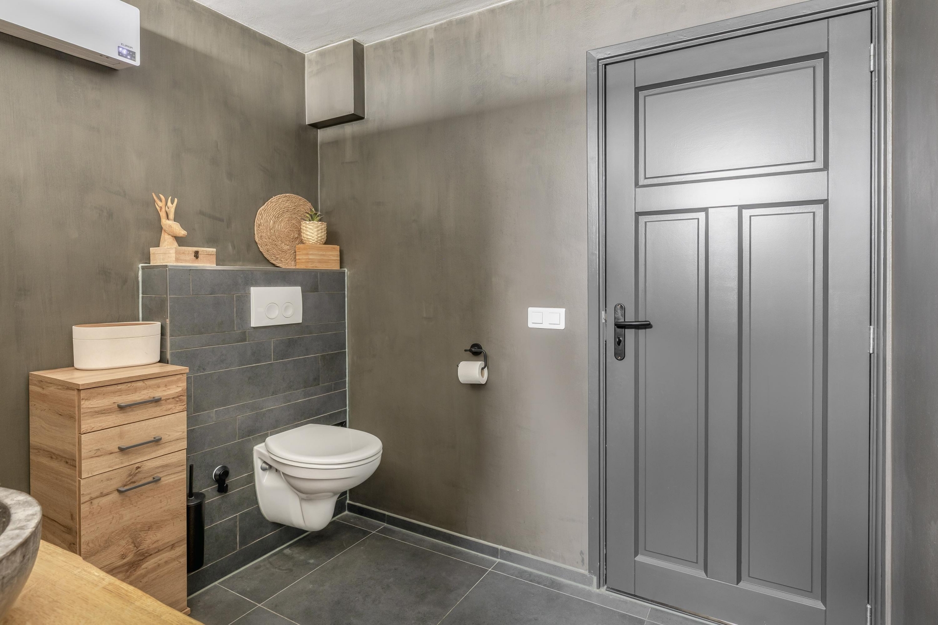Extra fijn is dat er twee moderne badkamers zijn – nooit meer ochtendstress! Eén badkamer is uitgerust met een dubbele waskom, massief eikenhout badmeubel en een inloopdouche, strak afgewerkt in warme, natuurlijke tinten. De tweede badkamer biedt extra flexibiliteit voor bijvoorbeeld logees of tieners en heeft een heerlijk ligbad met whirlpool en wastafelmeubel.