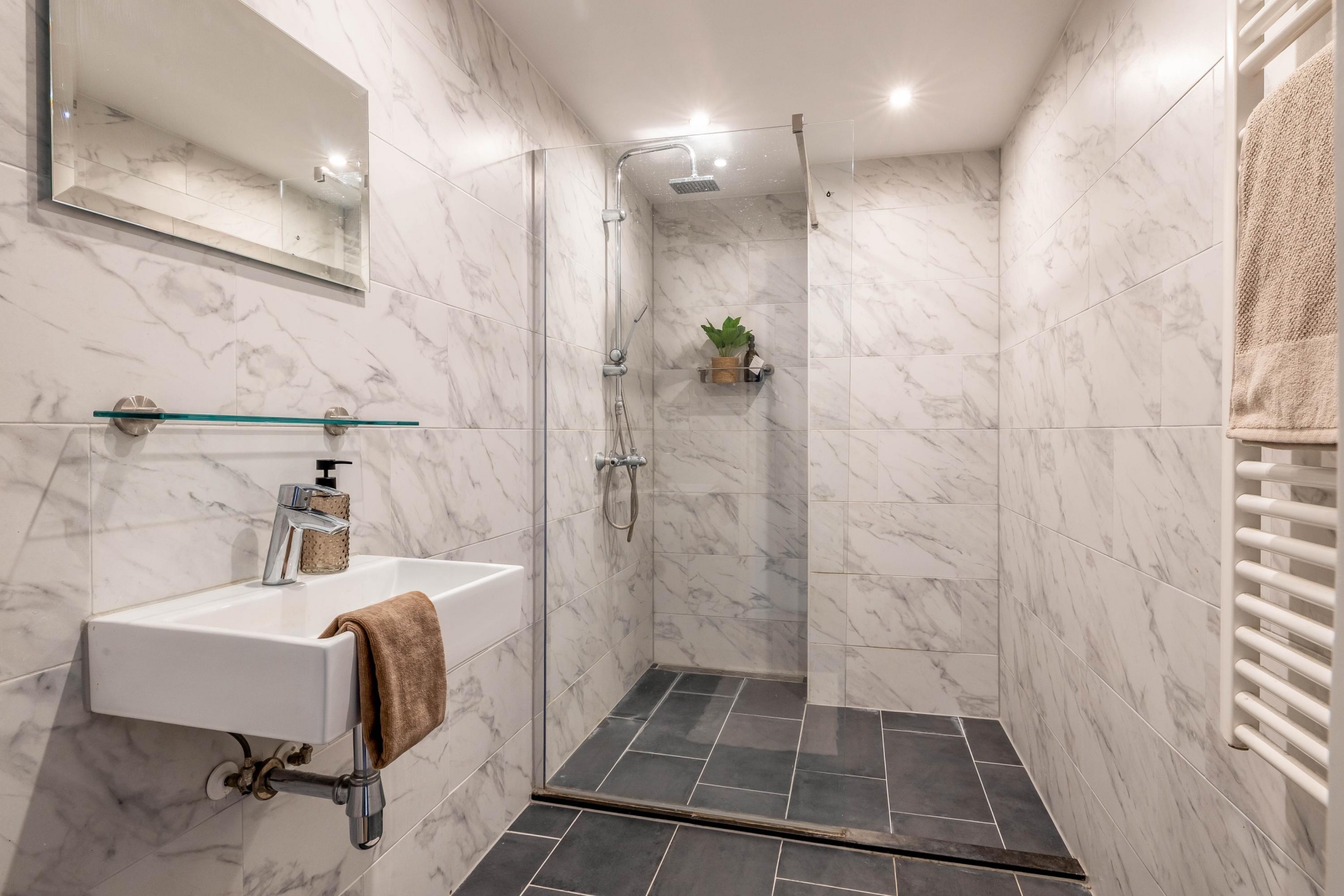 De tweede verdieping beschikt over twee ruime slaapkamers, waarvan één met schuifpui naar het tweede balkon, een aparte werkkamer, een moderne inloopdouche met mechanische ventilatie en een separaat toilet. Ook hier is alles uitgevoerd met kunststof kozijnen en dubbelglas.