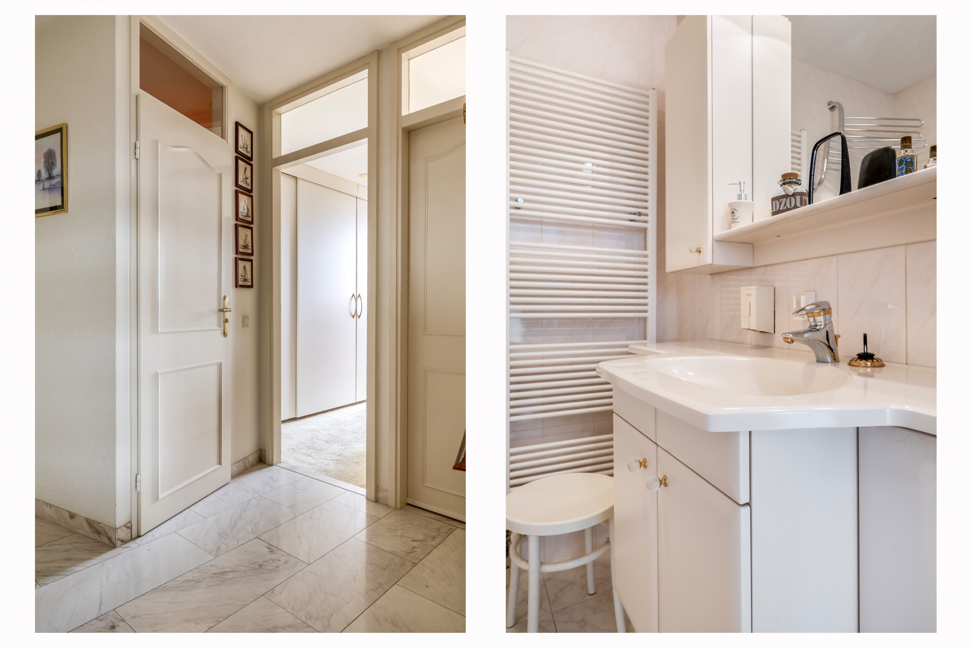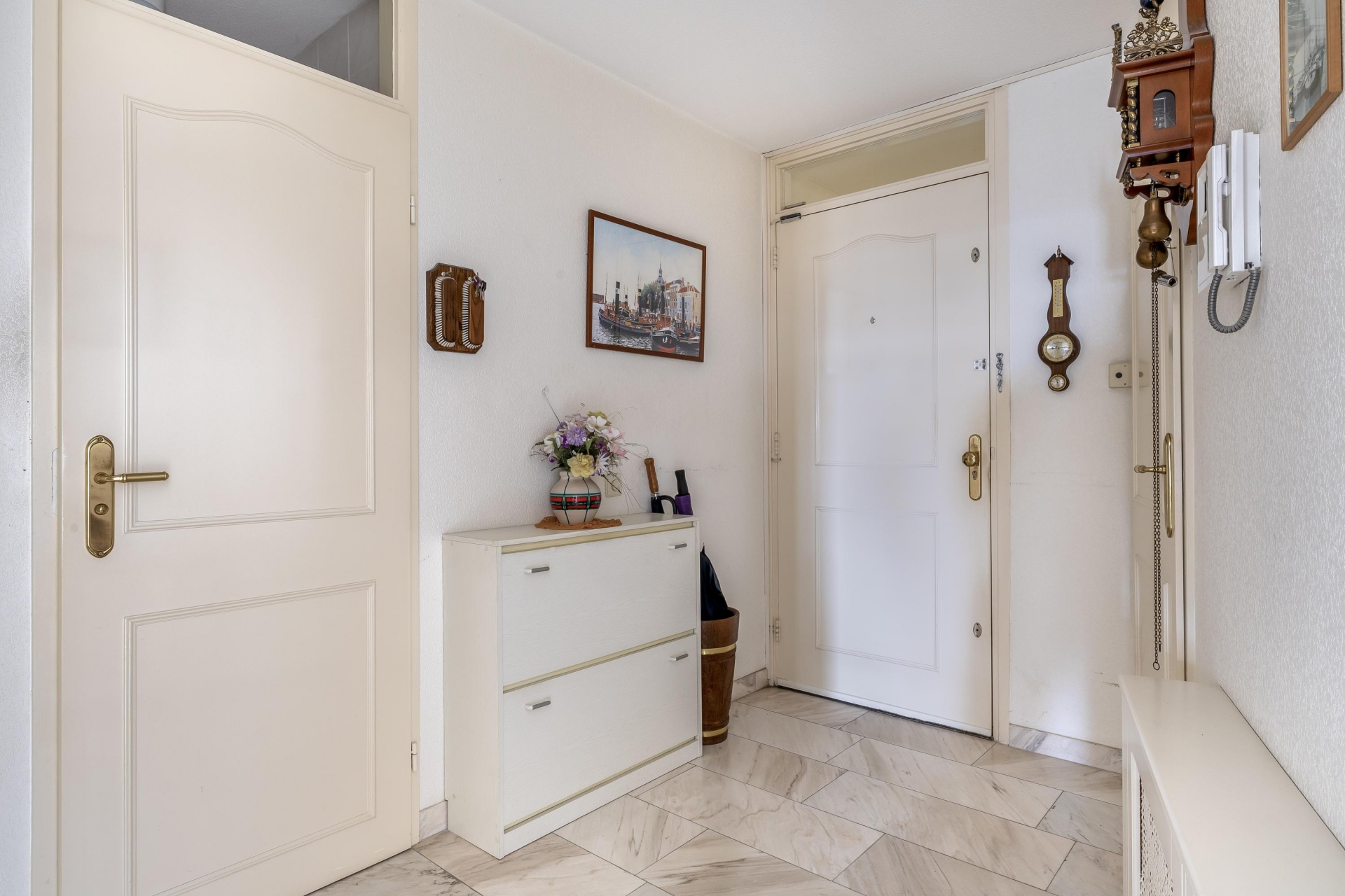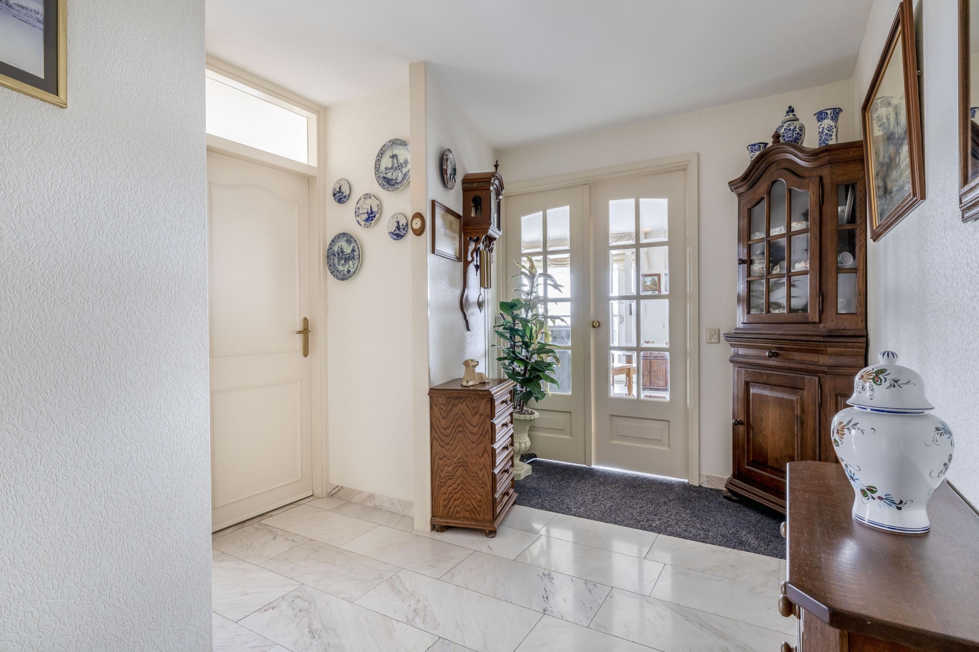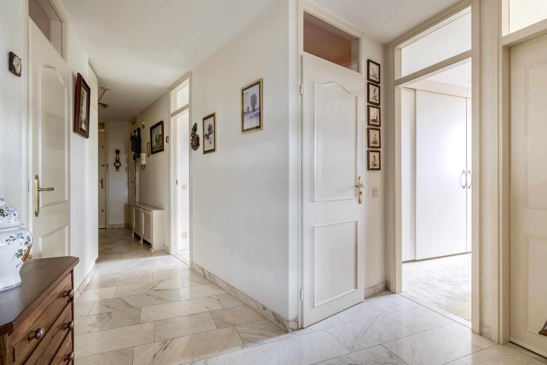 Eenmaal binnen kom je in een ruime hal die toegang geeft tot de verschillende vertrekken.