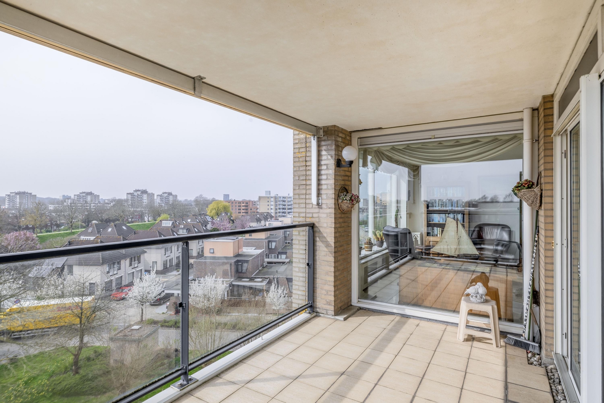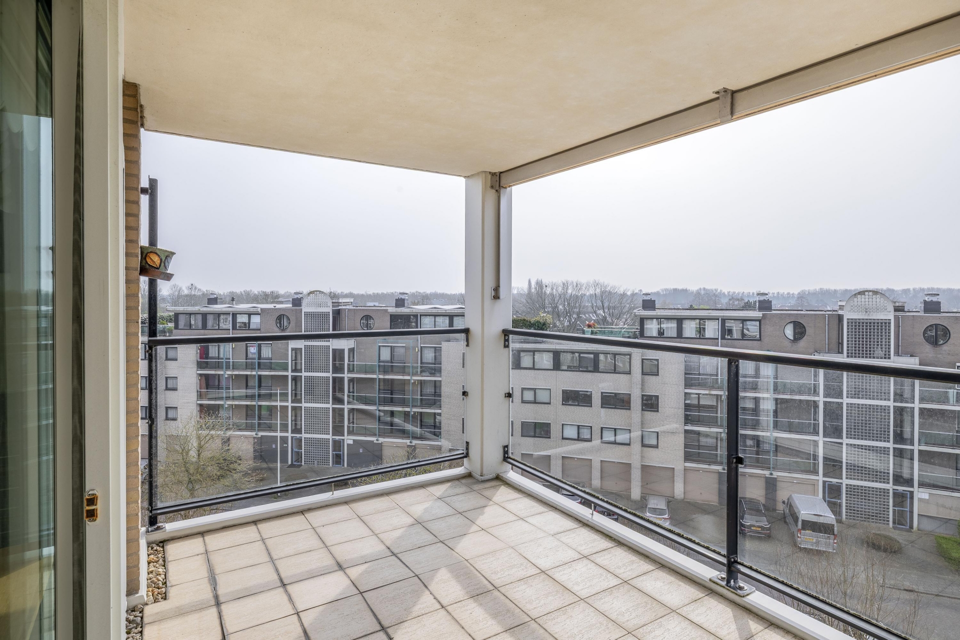 Vanuit de woonkamer heb je toegang tot het balkon, waar je heerlijk buiten kunt zitten en kunt genieten van het weidse uitzicht.