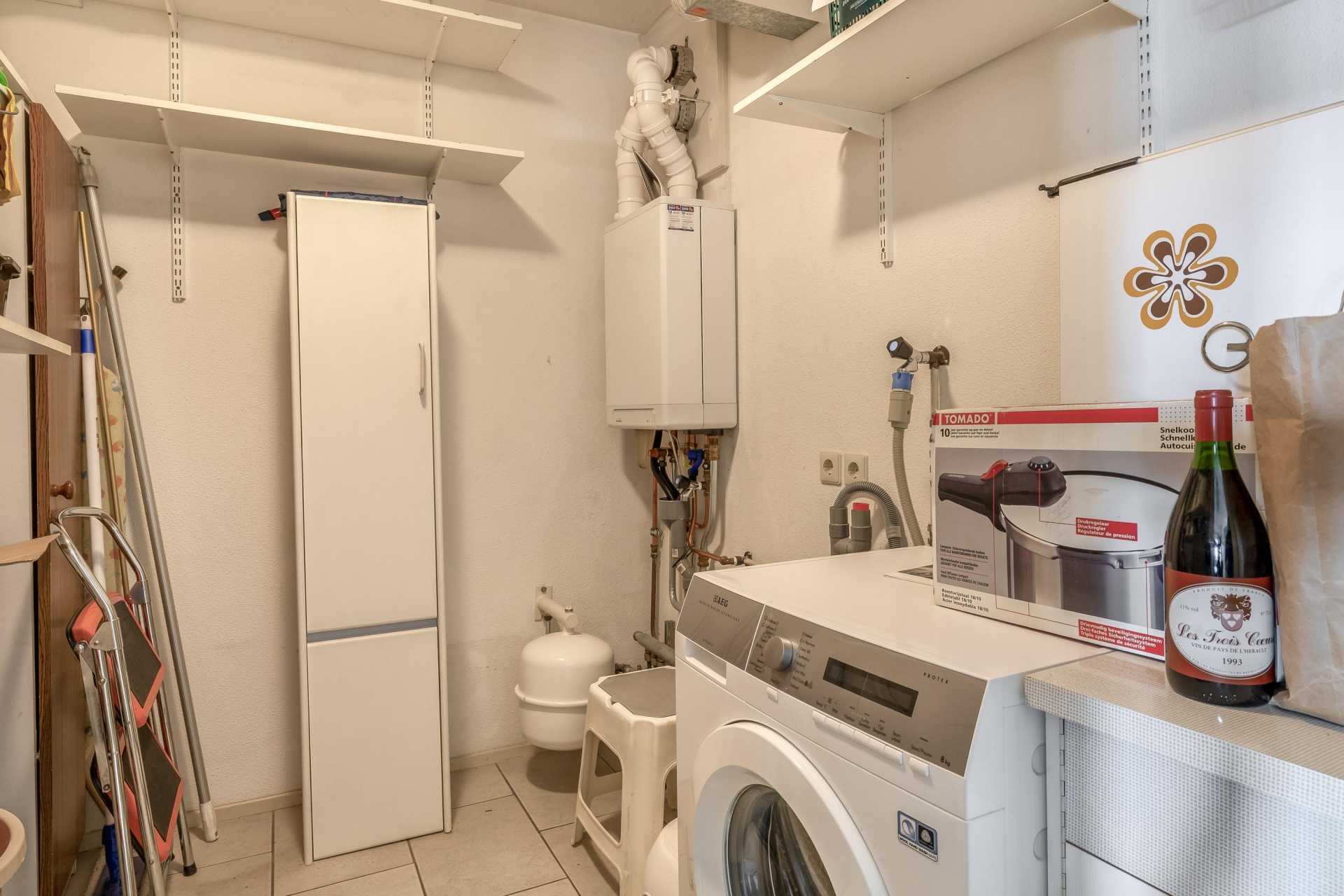 Verder is er een praktische opbergkast met aansluiting voor de wasmachine en de cv-installatie.