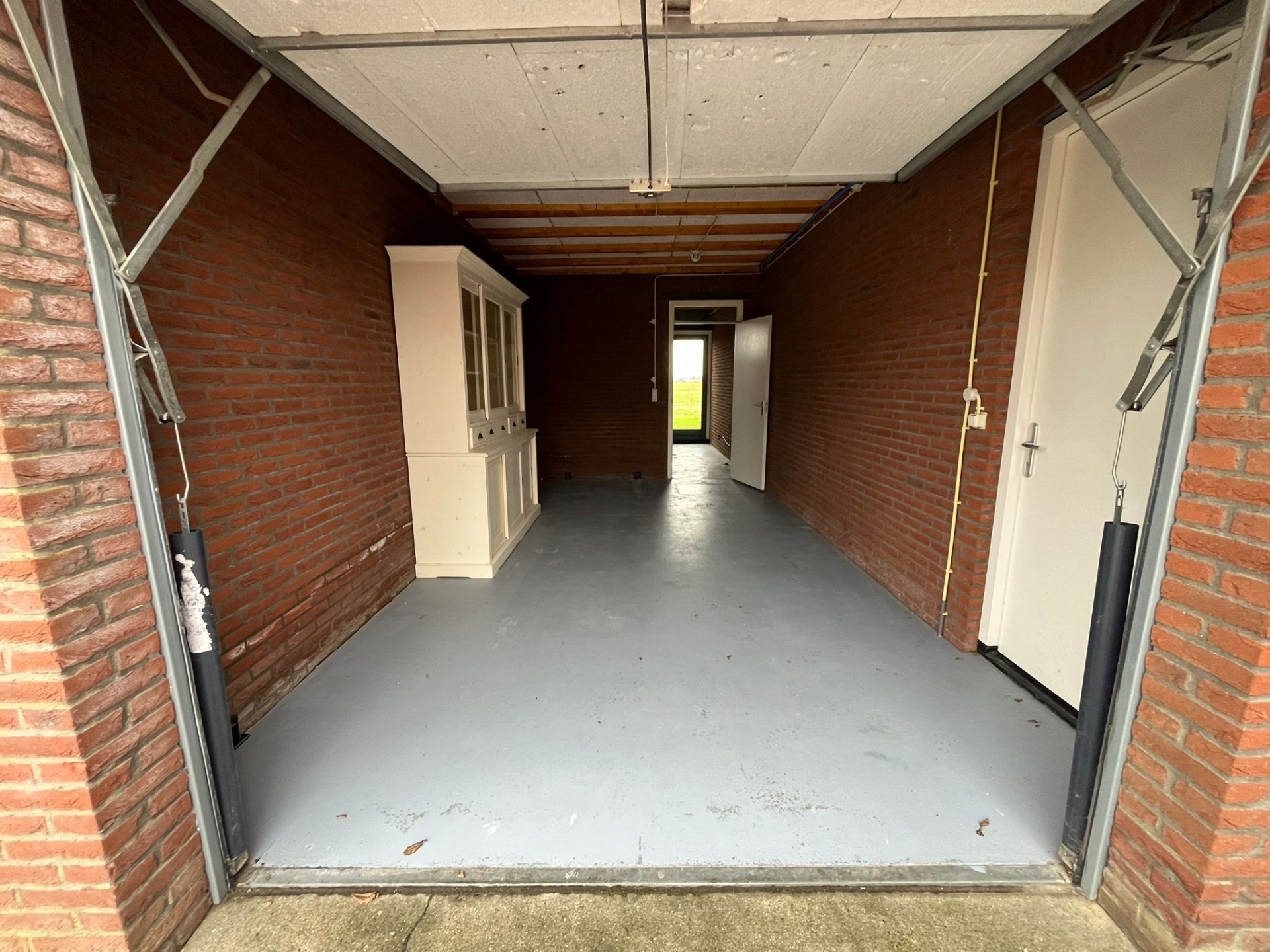 Aan de voorkant van het huis beschik je over een eigen oprit én een aangebouwde stenen garage van circa 19 m² (ca. 3,23 meter breed en 6,00 meter diep) met een plafondhoogte van circa 2,83 meter. De garage is ruim genoeg voor het stallen van een auto en biedt daarnaast volop ruimte voor fietsen, opslag of een werkbank.