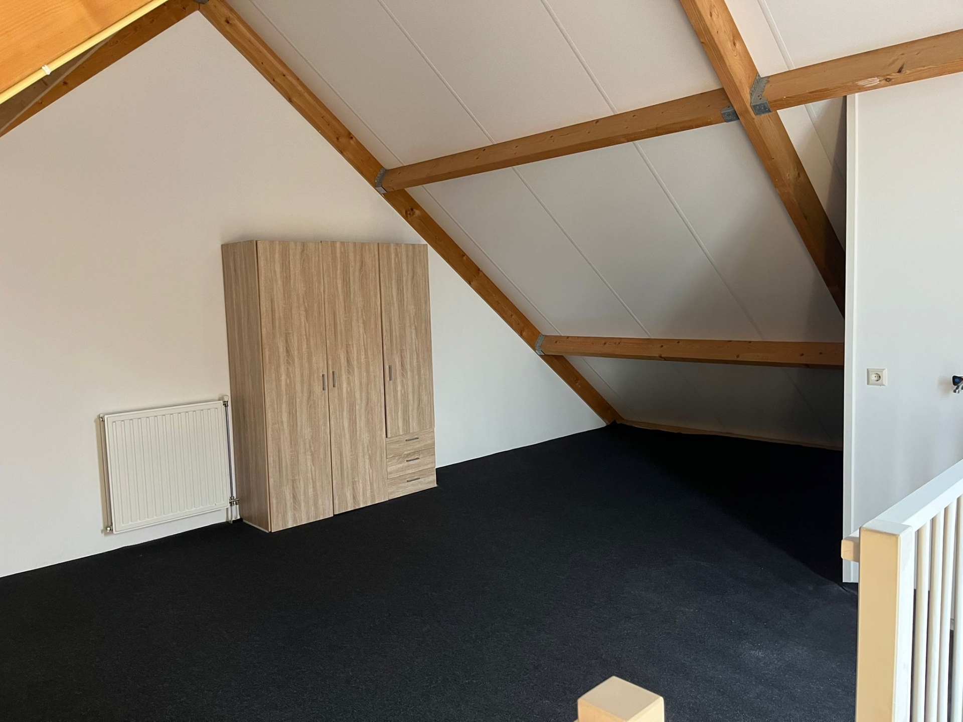 Op de eerste verdieping zijn drie volwaardige slaapkamers te vinden, waaronder een royale ouderslaapkamer met ruimte voor een groot bed en kastenwand. De andere twee kamers zijn ideaal als kinderkamer, werkkamer of logeerkamer. De badkamer is netjes en compleet, voorzien van een douche, wastafel, toilet en ligbad. De vaste trap naar zolder opent de deur naar nog meer ruimte: hier is eenvoudig een extra slaapkamer of werkruimte te realiseren. Dankzij het schuine dak behoort een dakkapel of dakraam ook tot de mogelijkheden.