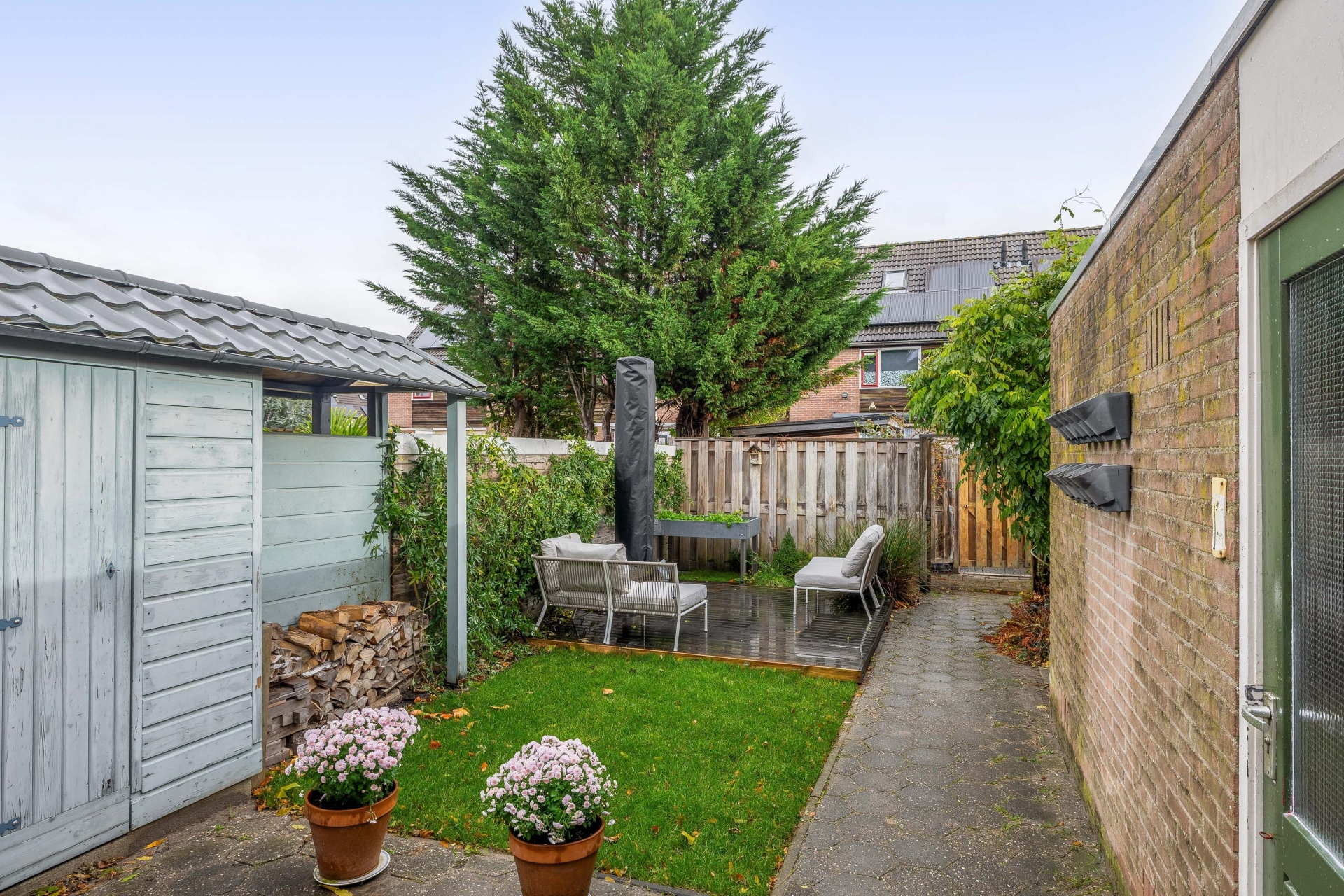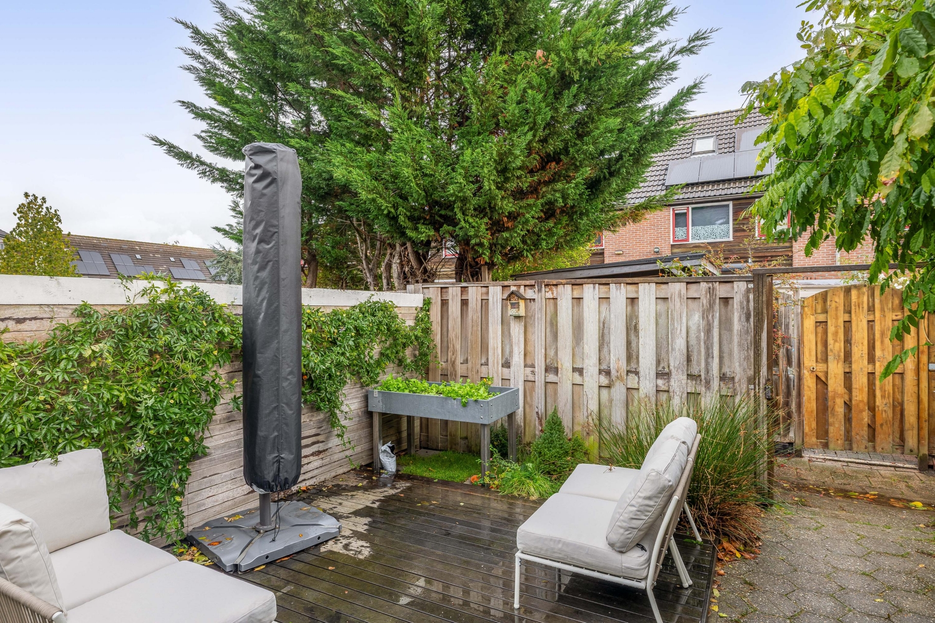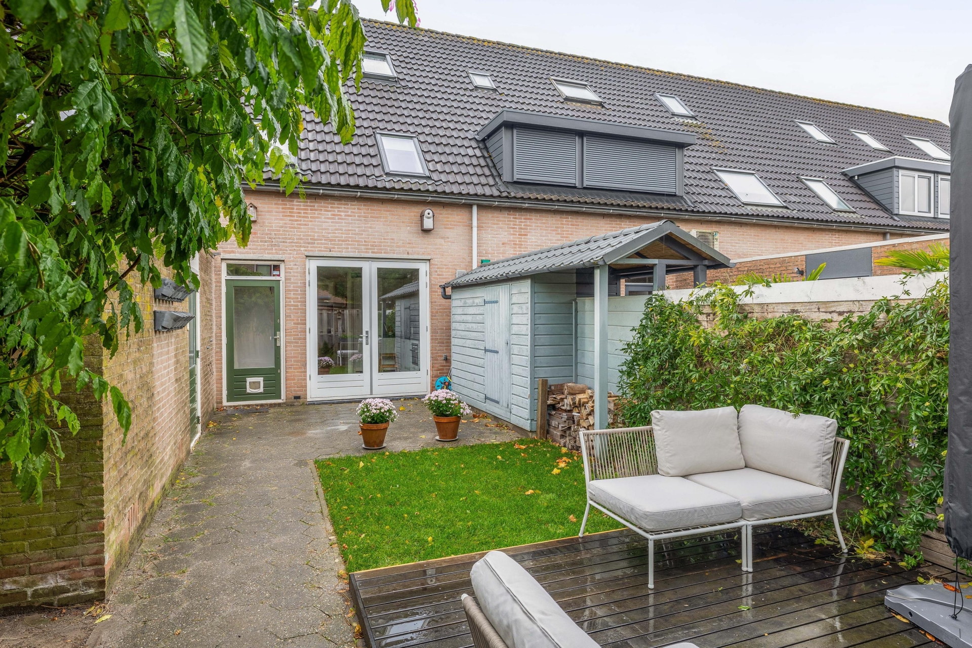 De ruime achtertuin van 12 meter diep ligt op het noordoosten. De tuin is verzorgd aangelegd, met een vlonder en een fijn zitgedeelte. Er zijn twee bergingen, ideaal voor het stallen van fietsen en het opbergen van spullen. Daarnaast beschikt de tuin over een handige achterom.