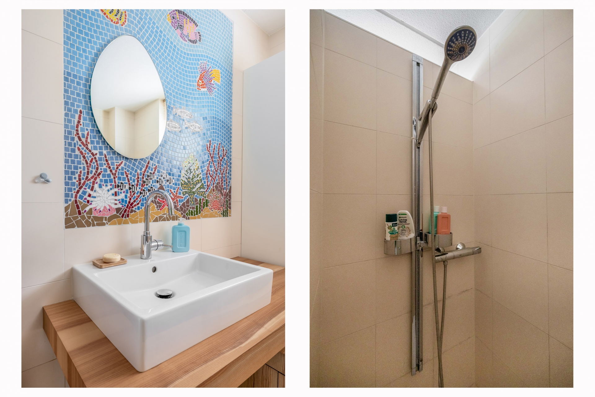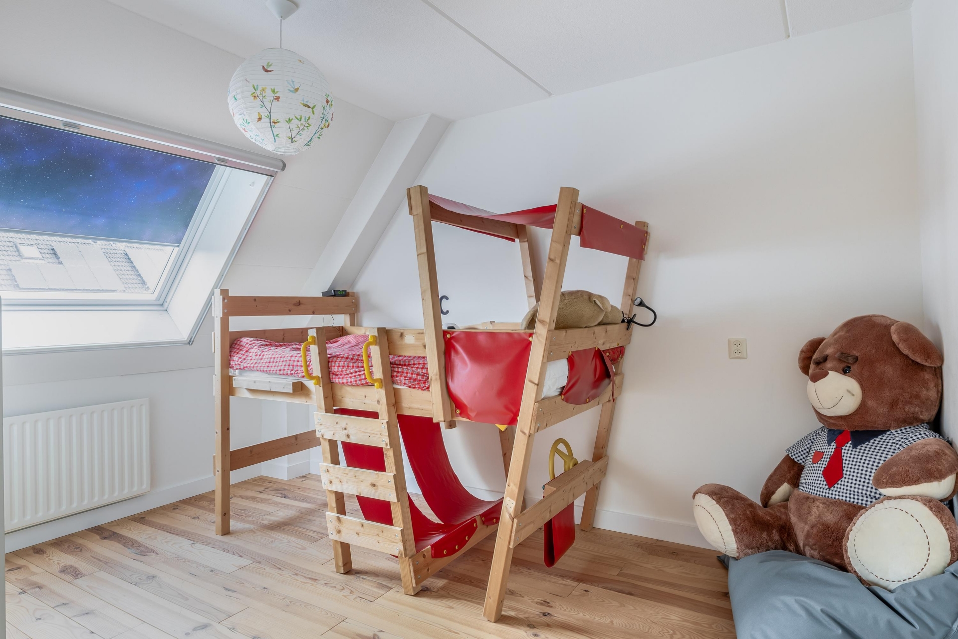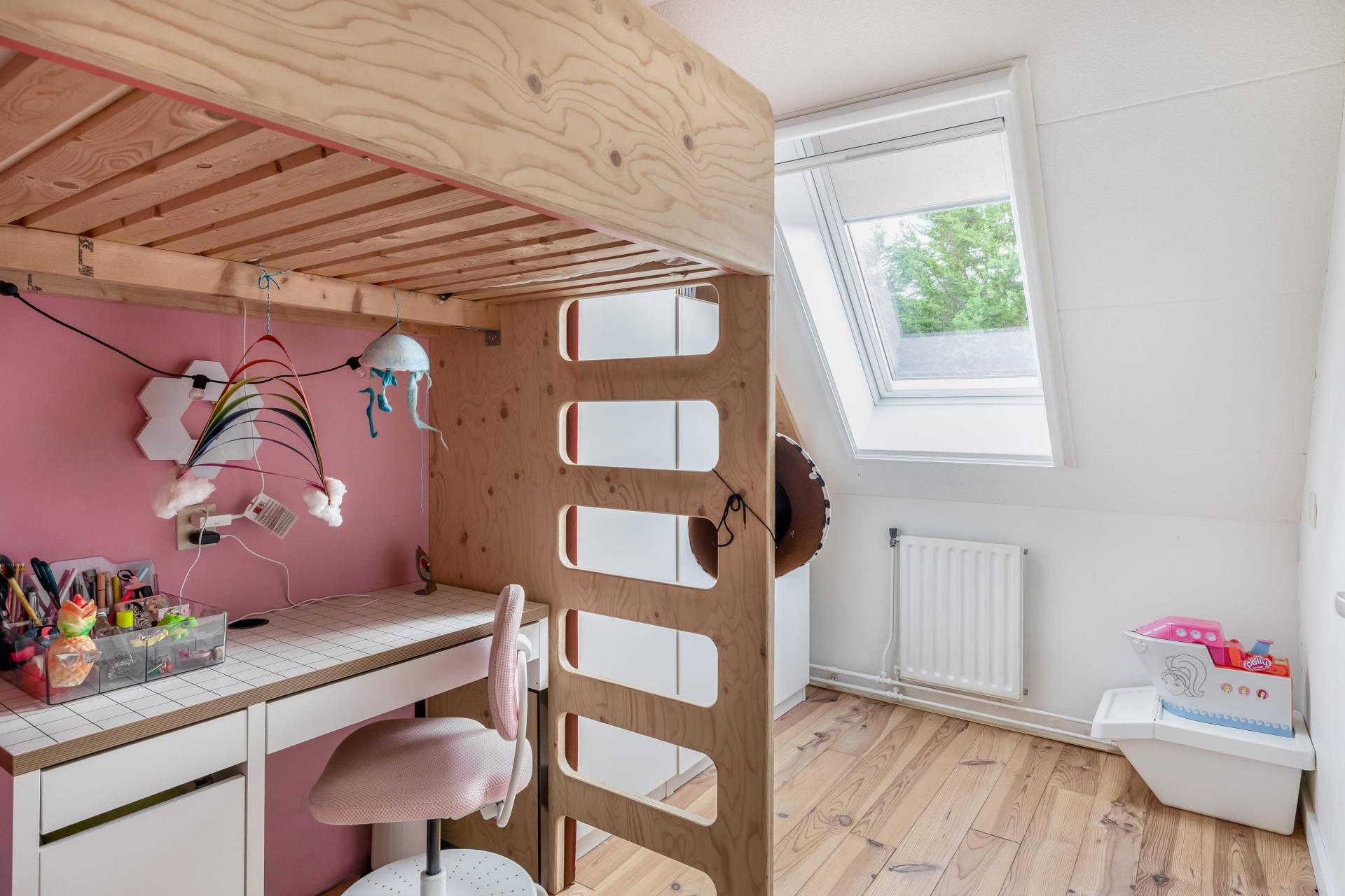 Er zijn in totaal vier slaapkamers, verdeeld over de eerste verdieping en de zolder. De derde kamer op de eerste etage is ideaal als werkplek of inloopkast. De badkamer is volledig betegeld en voorzien van een ruime inloopdouche, toilet en wastafelmeubel.