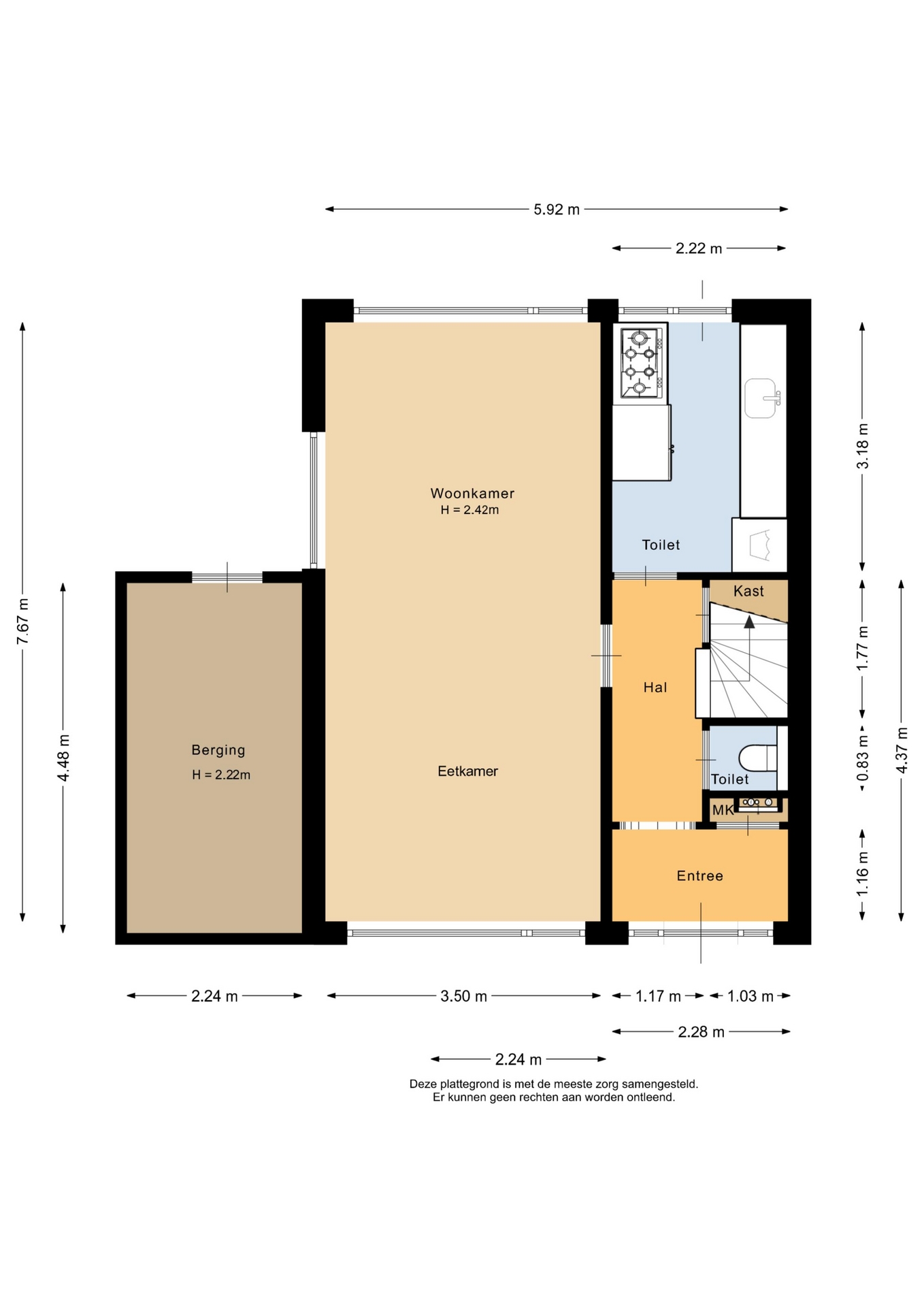 “Deze informatie is door ons met de nodige zorgvuldigheid samengesteld. Onzerzijds wordt echter geen enkele aansprakelijkheid aanvaard voor enige onvolledigheid, onjuistheid of anderszins, dan wel de gevolgen daarvan. Alle opgegeven maten en oppervlakten zijn indicatief.”