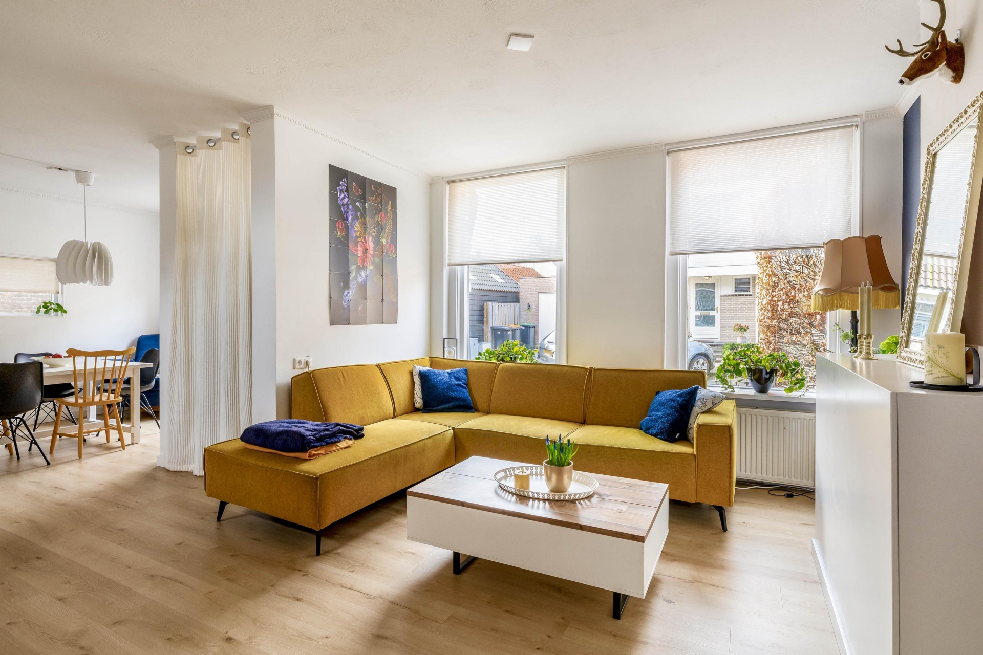 WOONKAMER MET LEUKE DOORKIJK NAAR ACHTERZIJDE