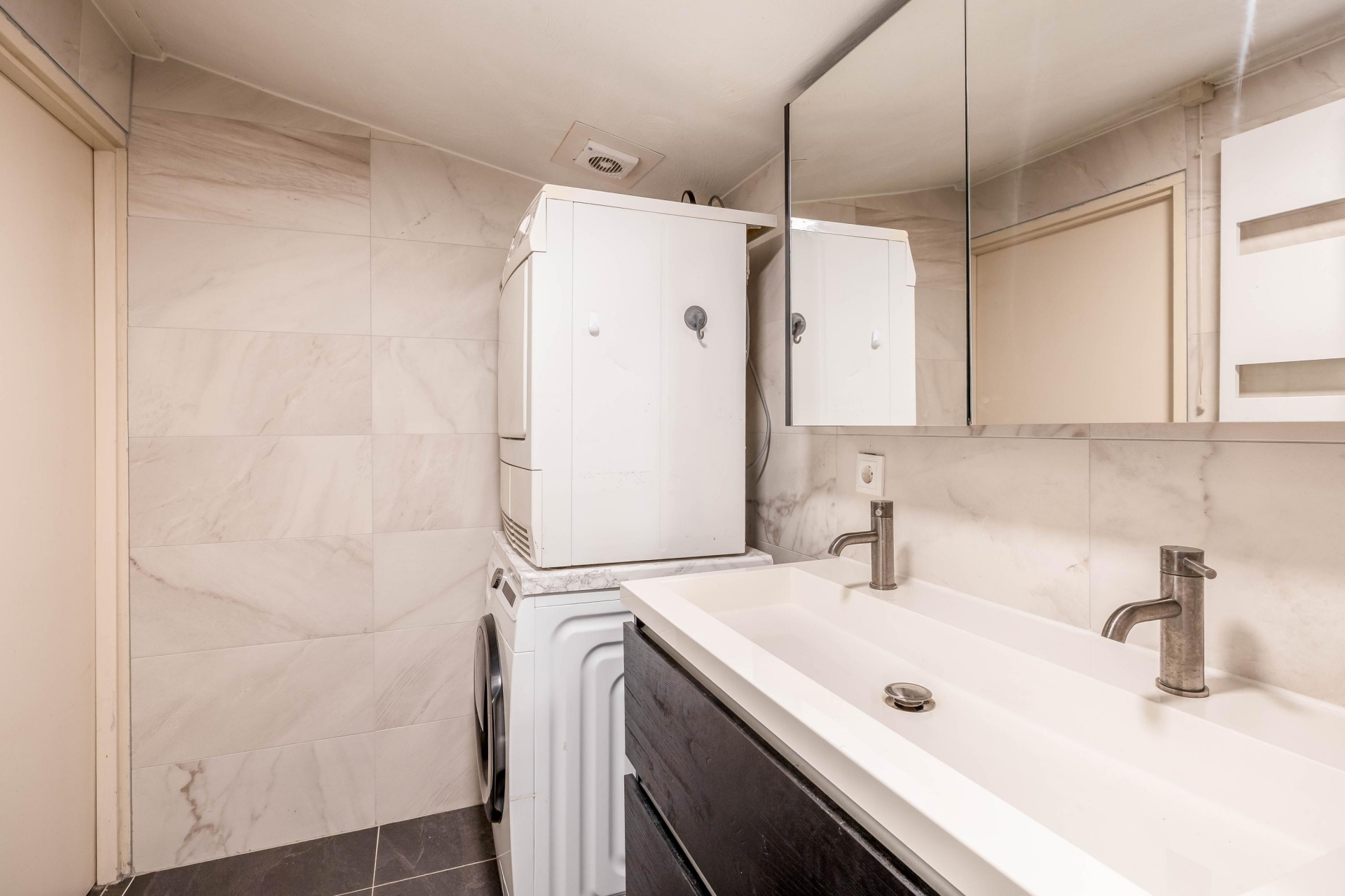 In de grote slaapkamer bevind zich een kleine bergruimte, ideaal voor het opbergen van spullen die je niet dagelijks nodig hebt.