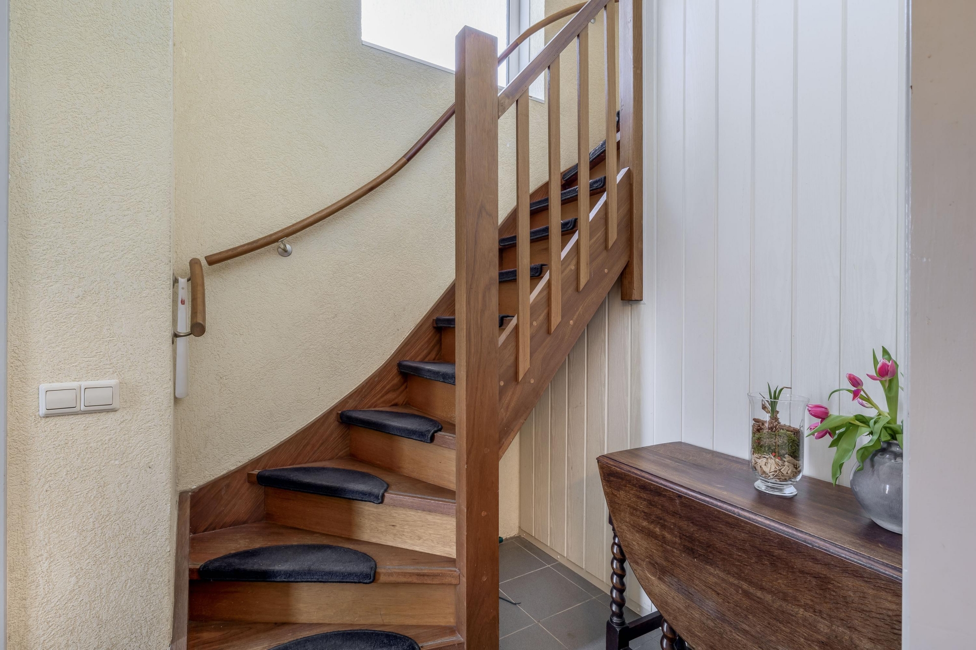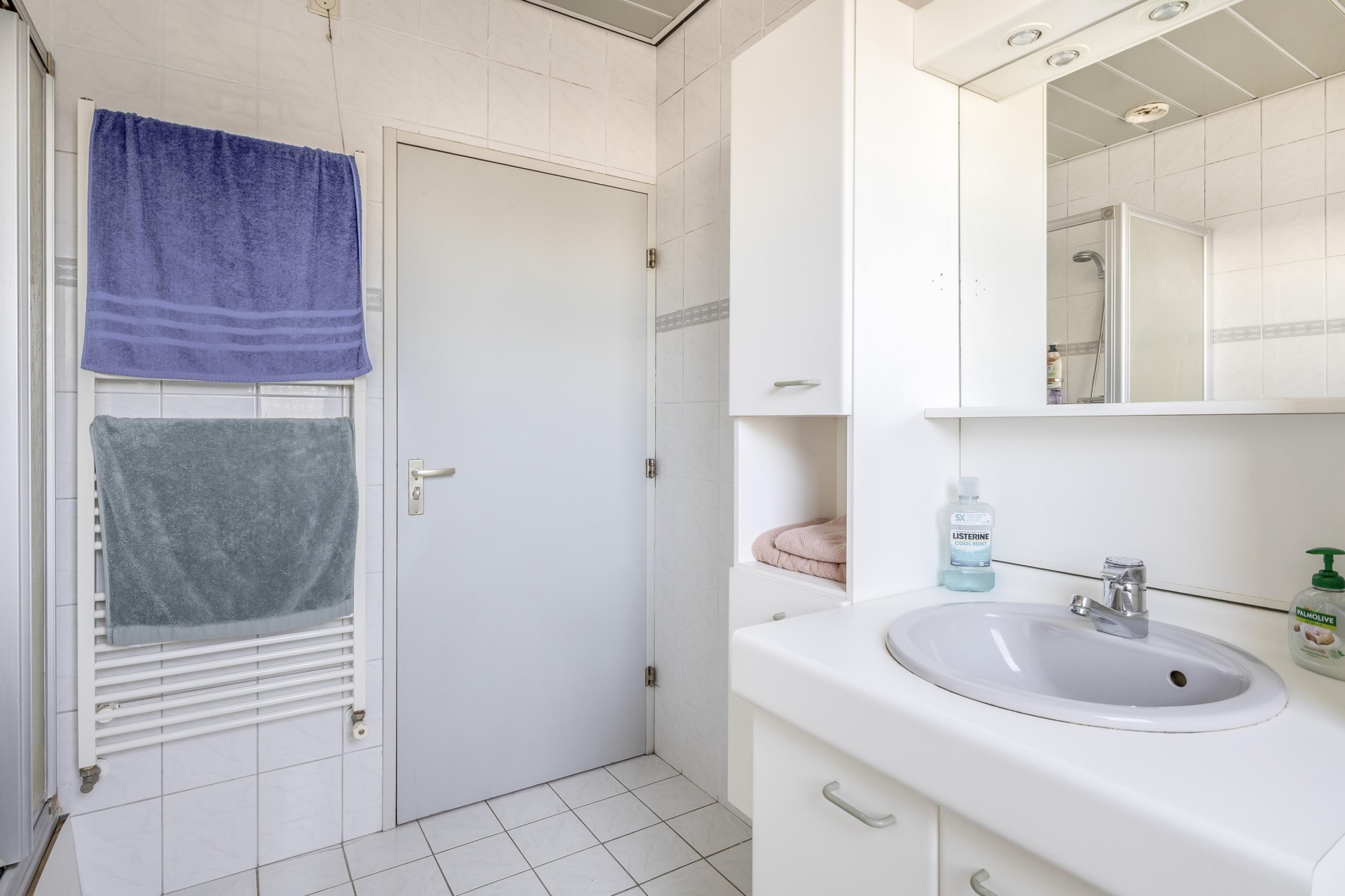 De woning beschikt over drie slaapkamers, waarvan de grootste uitstekend geschikt is als hoofdslaapkamer. De badkamer is compleet uitgerust met een ligbad, douche en wastafel. Daarnaast is er een separaat toilet en een praktische berging met wasruimte en opstelling cv combiketel Vaillant HR 2022 en de verdeelunits vloerverwarming voor de woonverdieping en de begane grond.