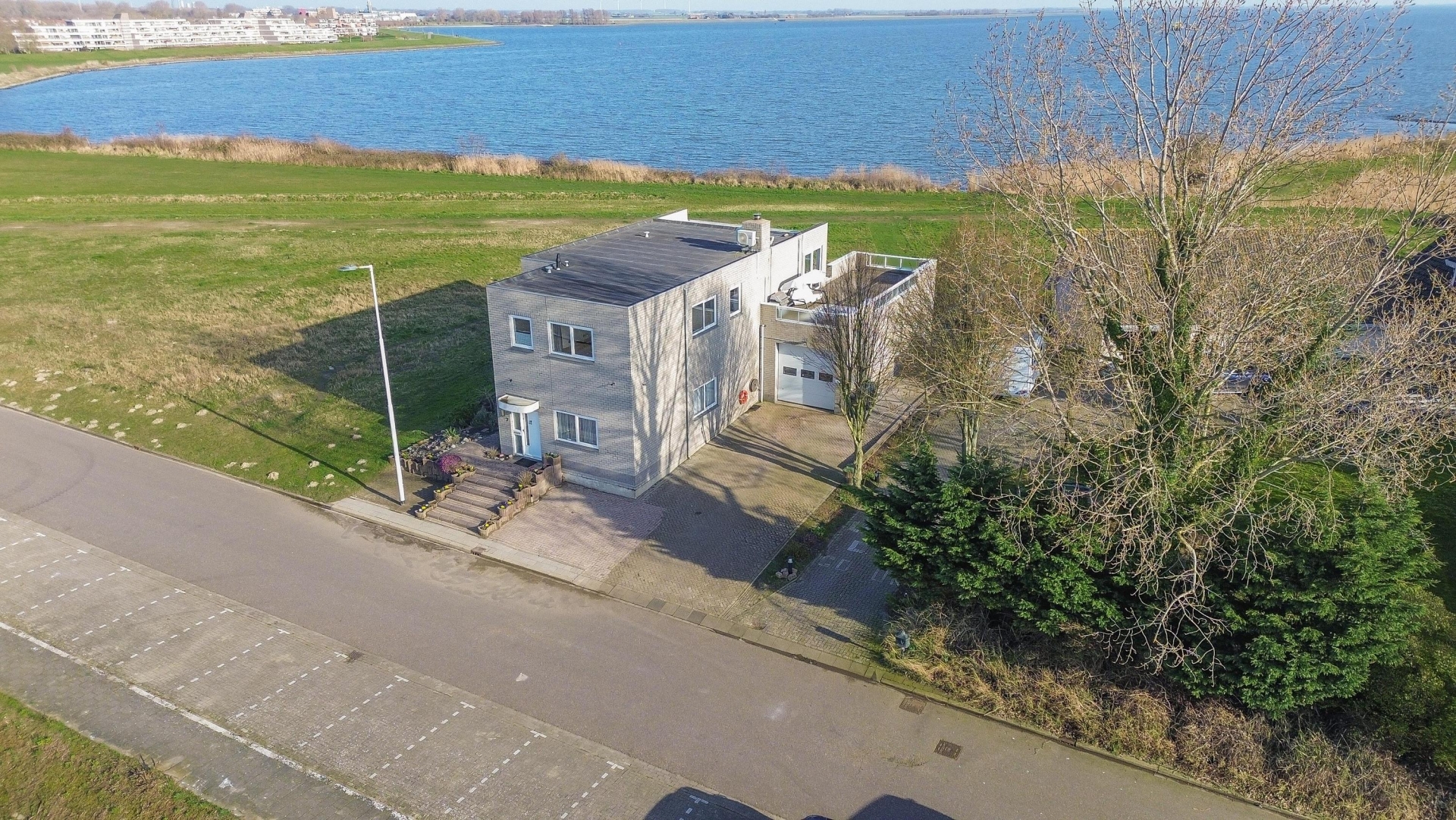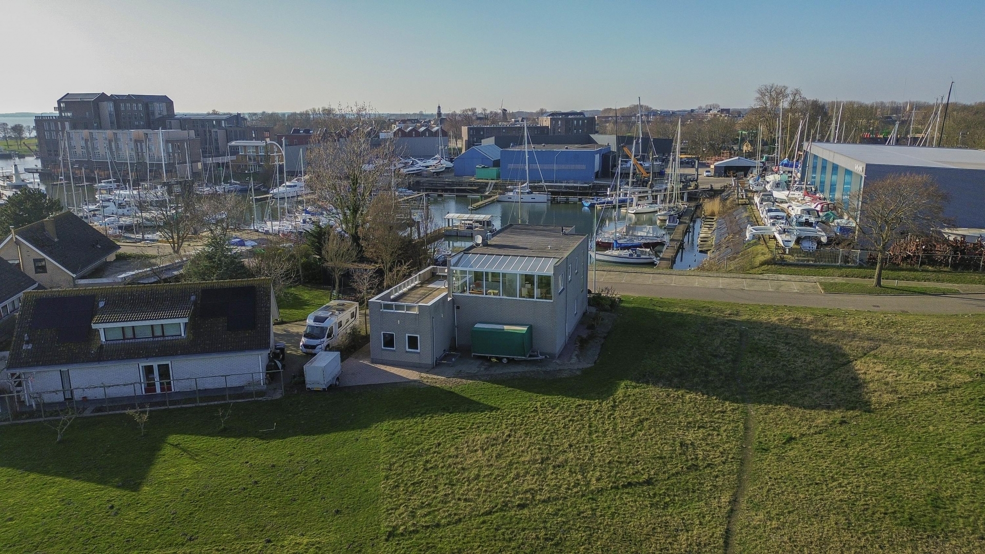 Aan de rand van de haven van Hellevoetsluis staat dit vrijstaande huis met bedrijfsruimte op een plek die je zelden tegenkomt. Hier combineer je wonen en werken op een manier die zowel praktisch als inspirerend is. Vanuit het huis en het royale dakterras kijk je uit over het Haringvliet en de haven. De ligging is open, rustig en tegelijkertijd uitstekend bereikbaar.