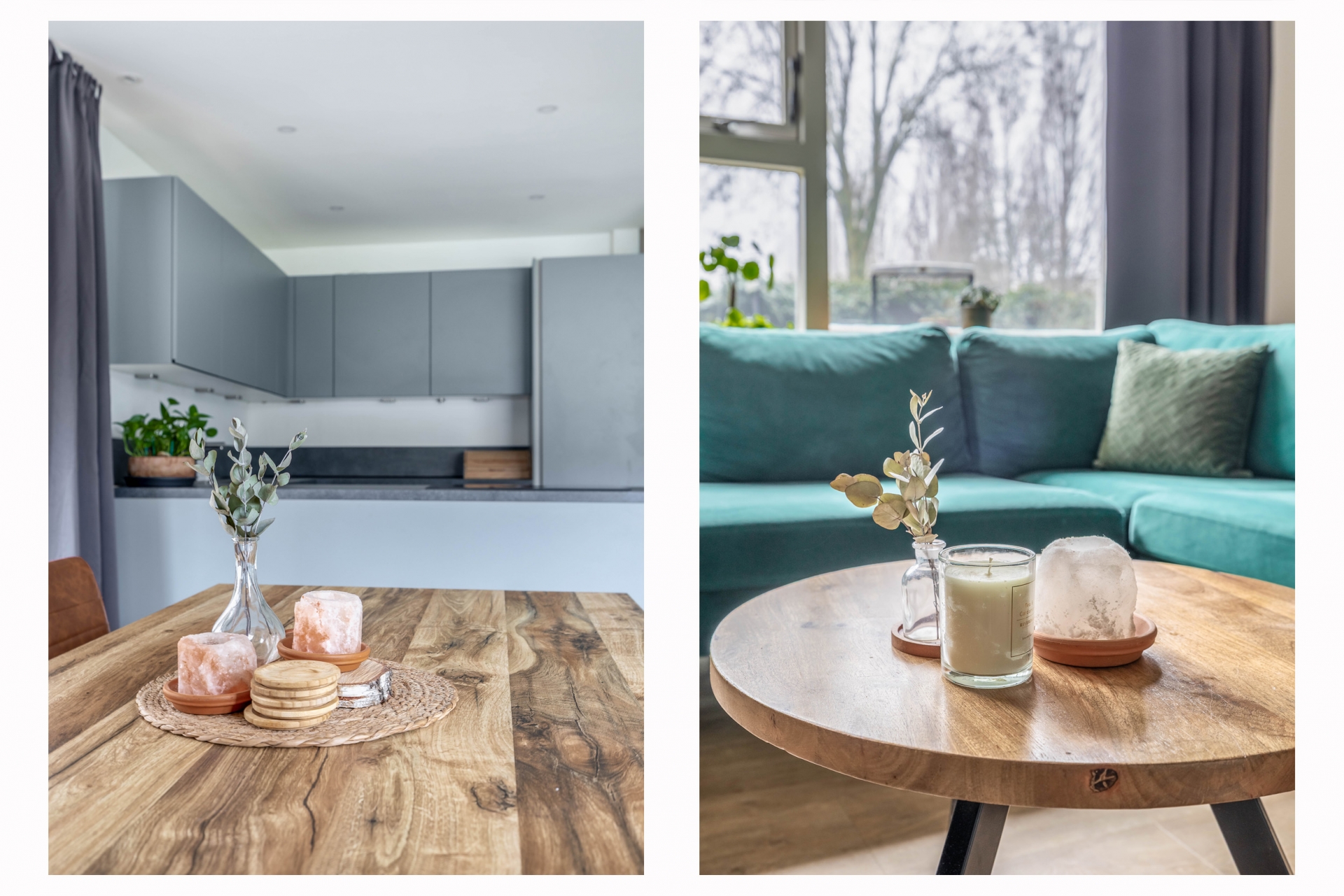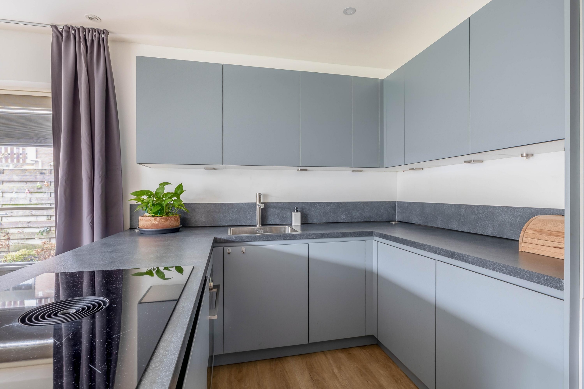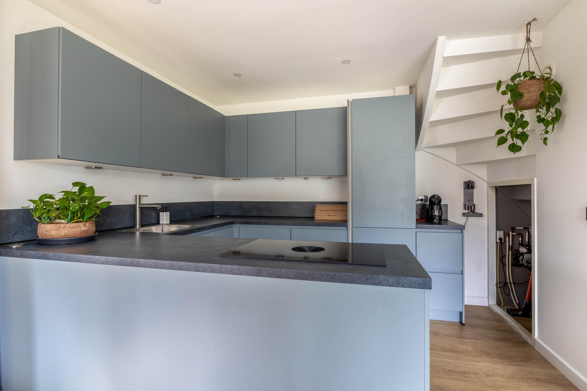 De keuken is recent (2021) vernieuwd en uitgevoerd in een moderne, rustige kleurstelling. De U-opstelling biedt veel werk- en bergruimte en is voorzien van diverse inbouwapparatuur. Hier kook je met gemak voor een groot gezin, terwijl er genoeg ruimte overblijft voor gezelligheid. De keuken staat in directe verbinding met de woonkamer, waardoor je altijd contact houdt met de rest van het gezin of je gasten.