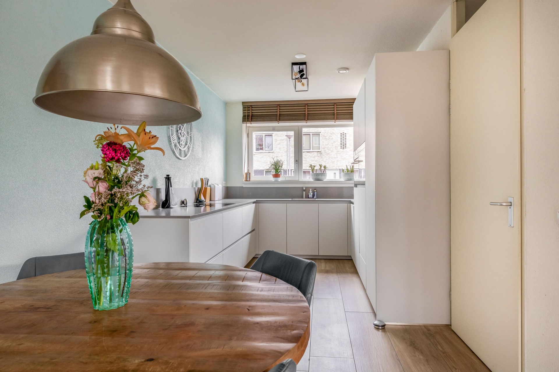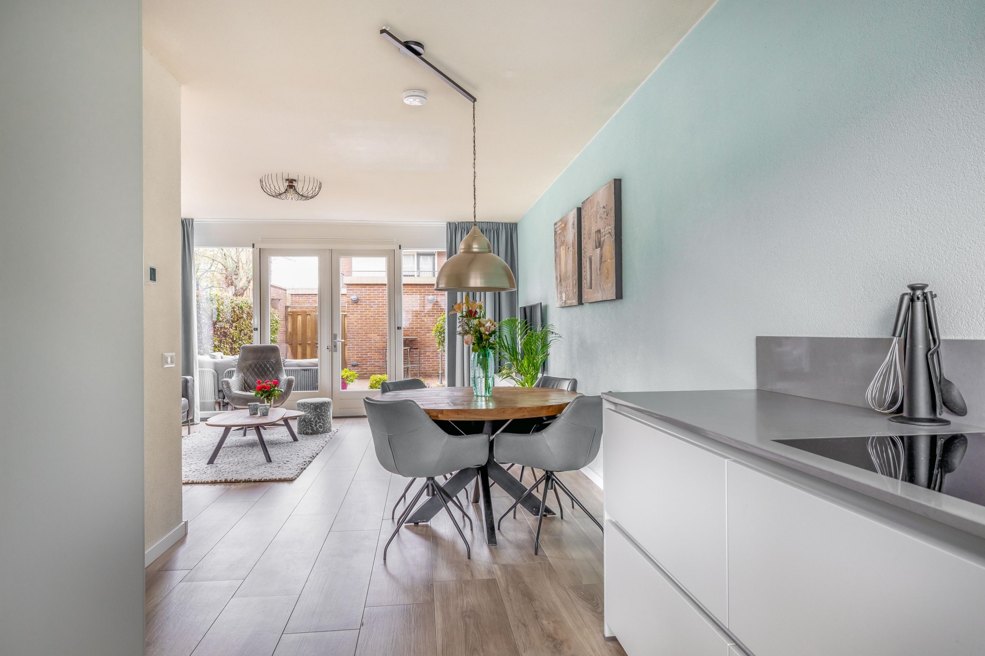 Op de begane grond zorgt de slimme indeling voor een fijne leefruimte. De woonkamer met dubbele tuindeuren en strakke afwerking is heerlijk licht en biedt volop ruimte voor een comfortabele zithoek. De keuken aan de voorzijde is modern, strak en voorzien van inbouwapparatuur. Denk aan een inductiekookplaat met geïntrigeerde afzuigkap, combi-oven, vaatwasser en veel bergruimte. De open opstelling zorgt voor een sociale verbinding tussen koken en wonen. De hal beschikt over een modern toilet, trapopgang en meterkast.