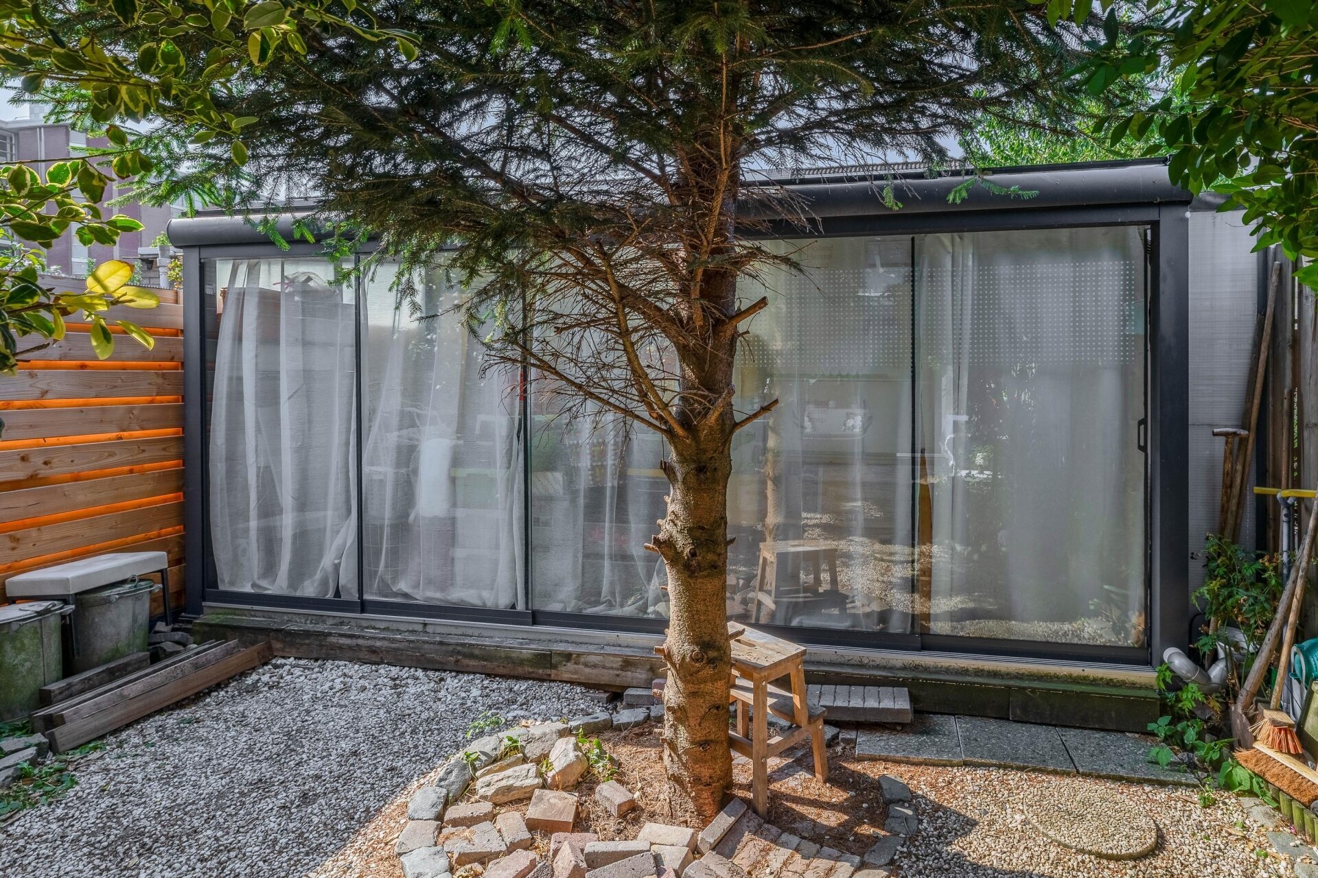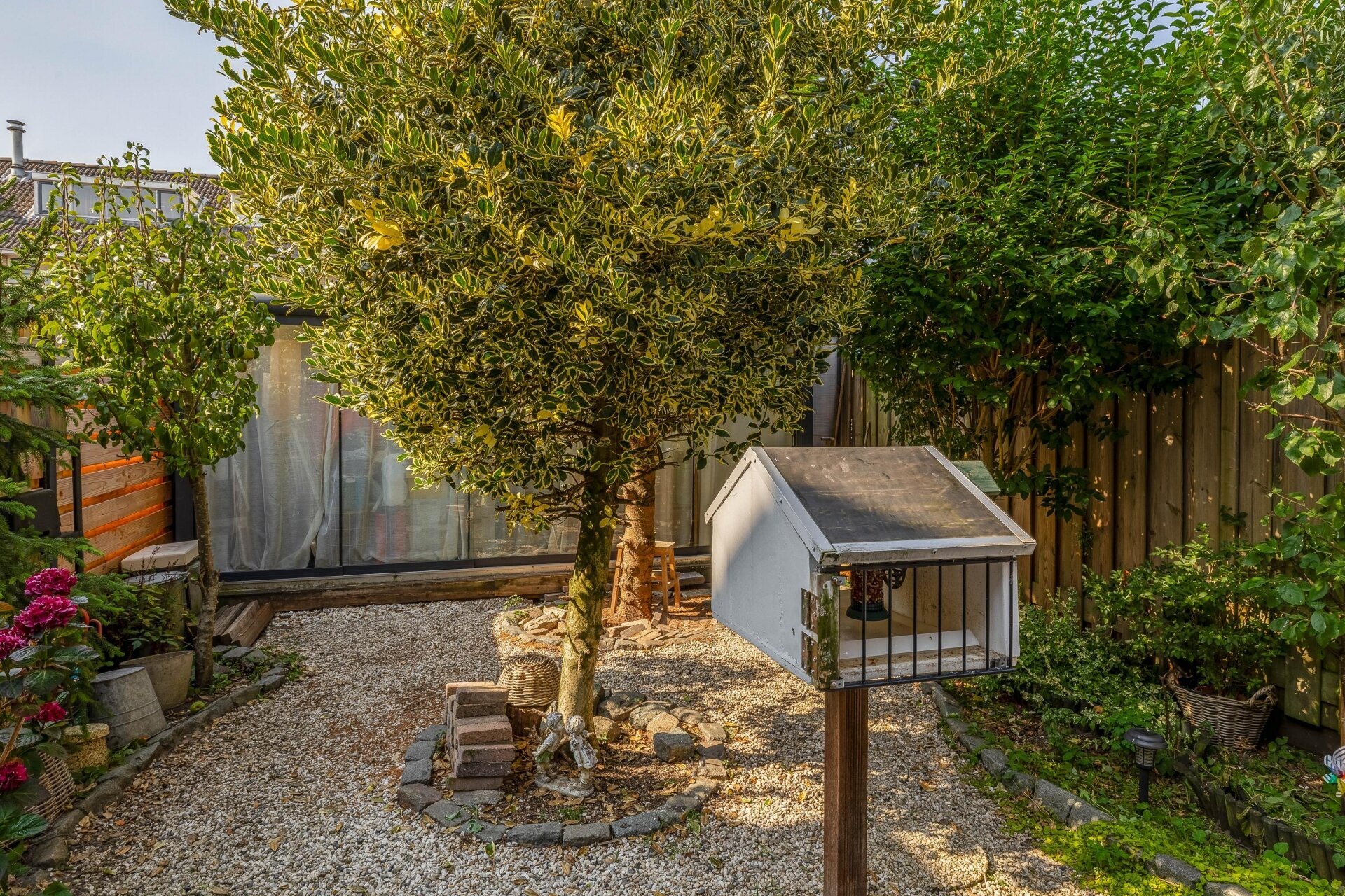 - Zonnige achtertuin met sfeervolle serre die onderheid is;