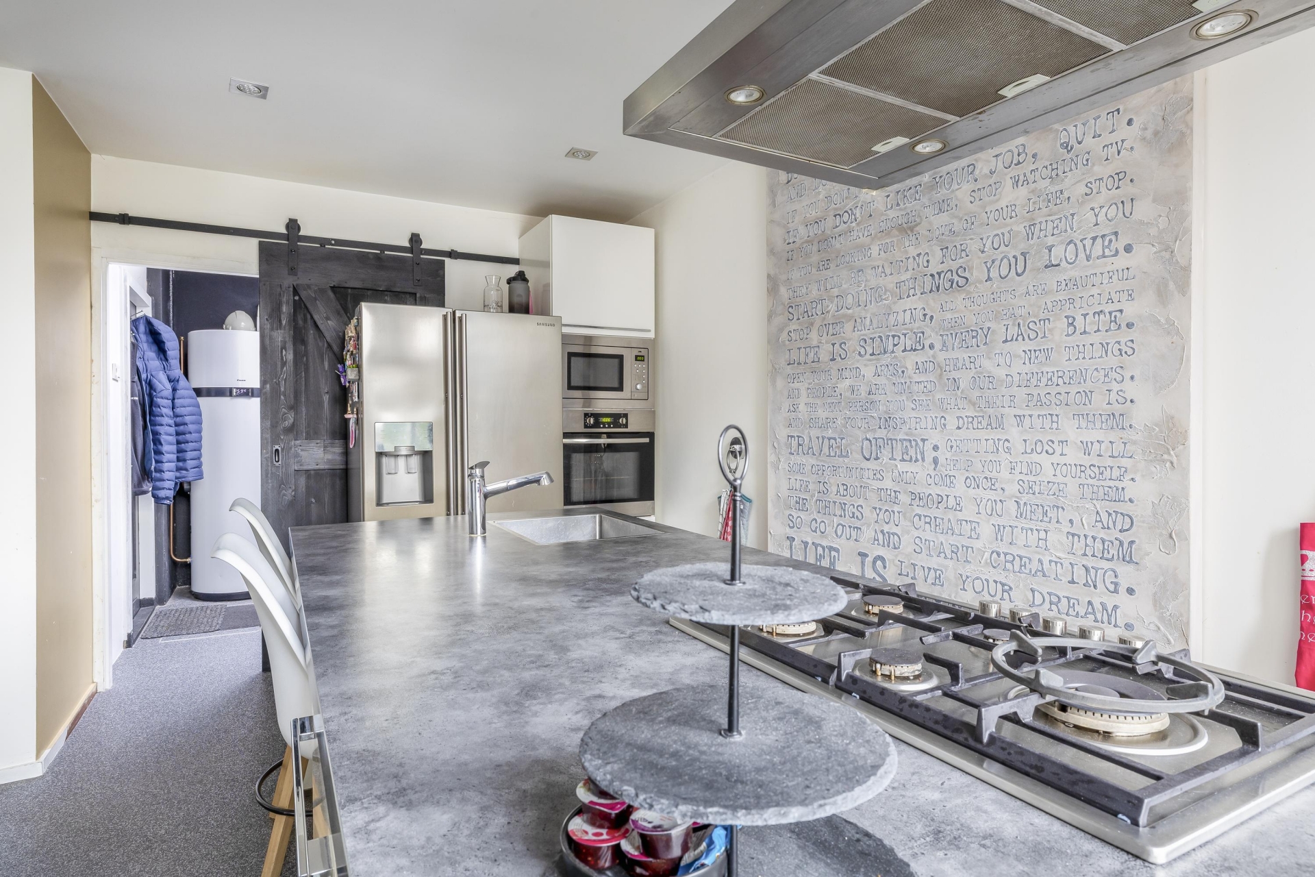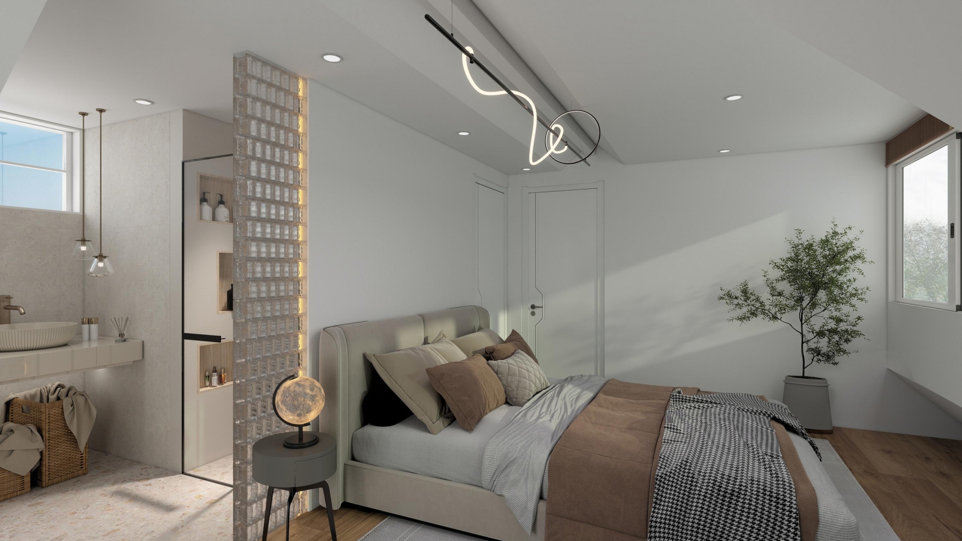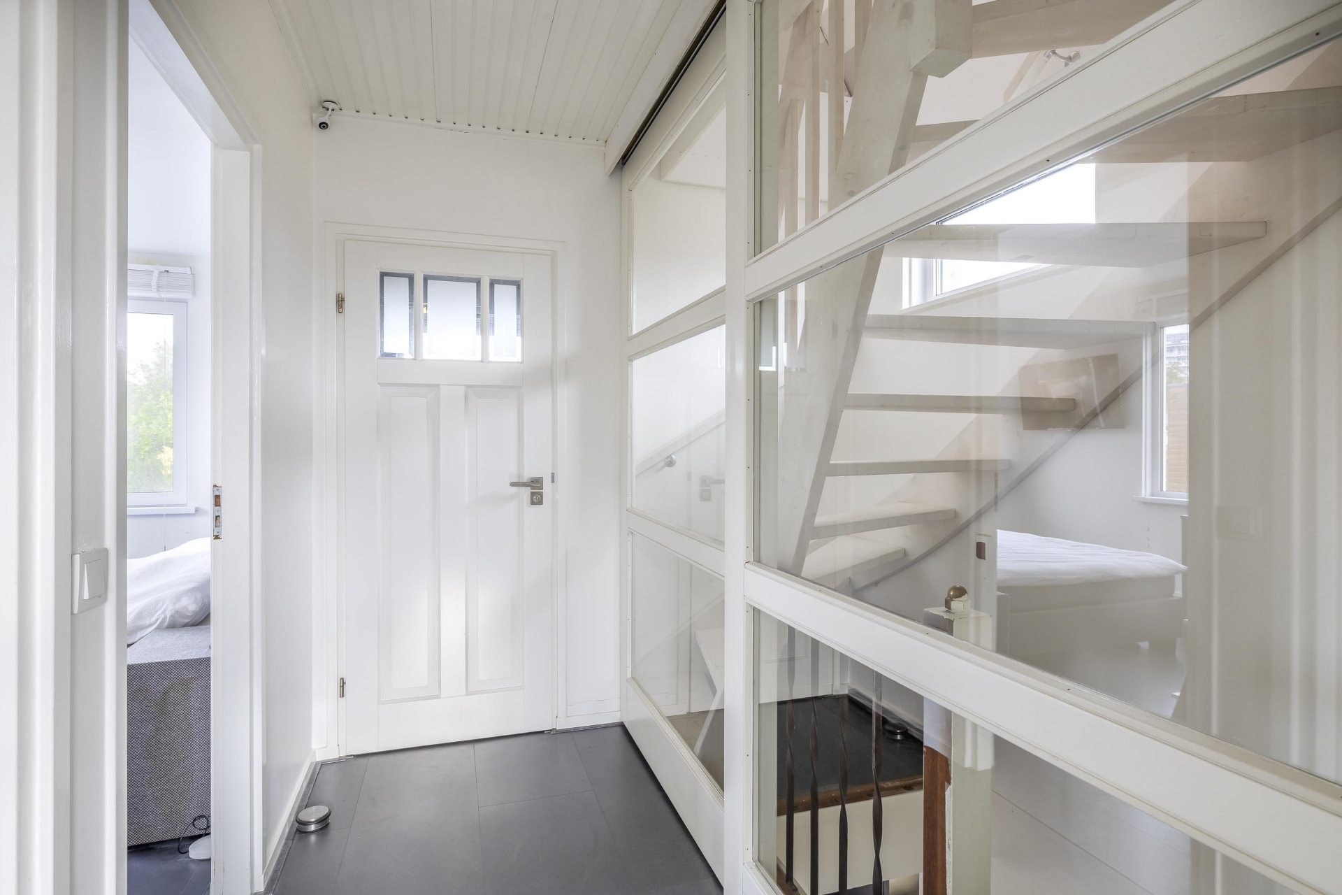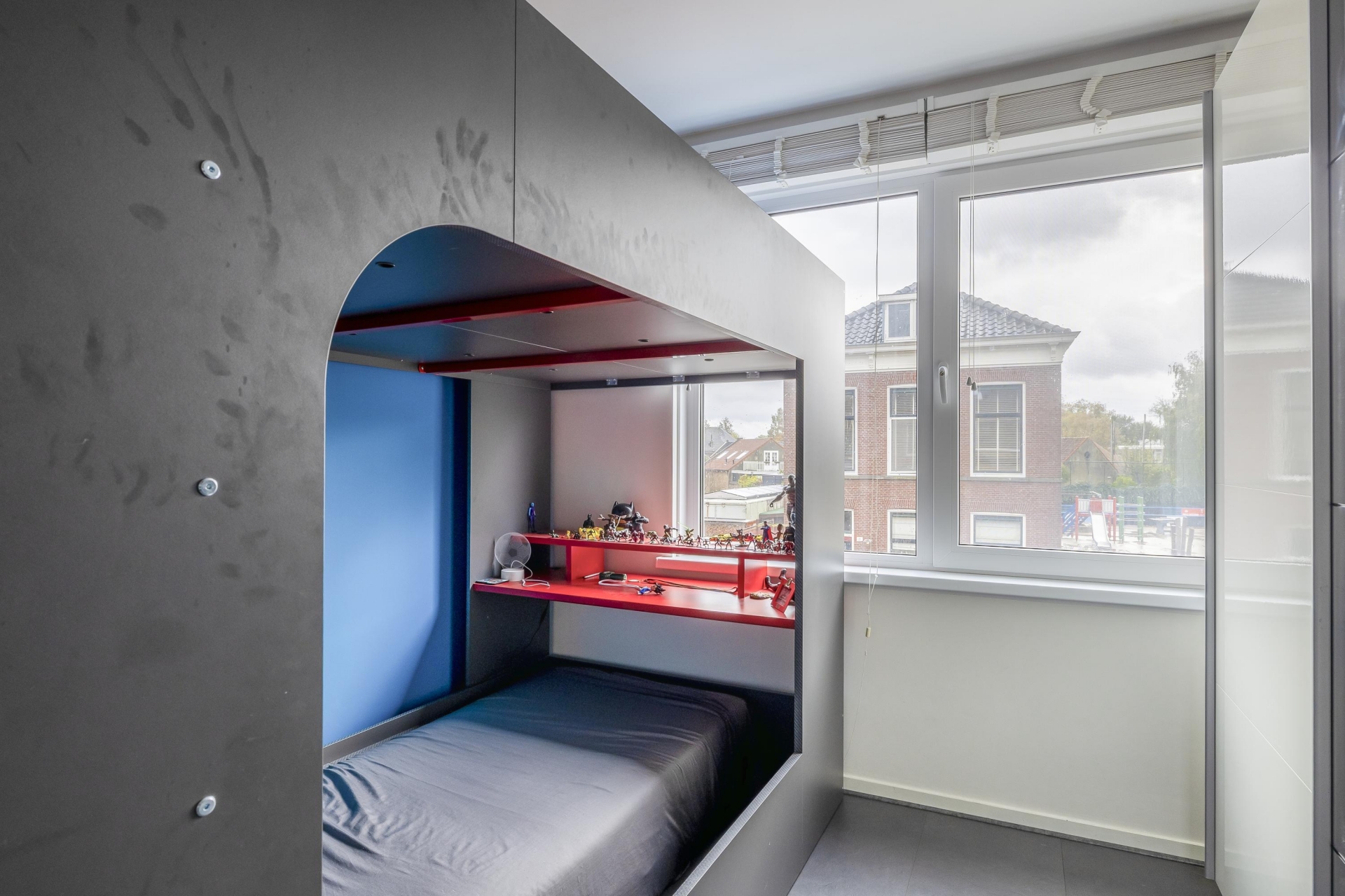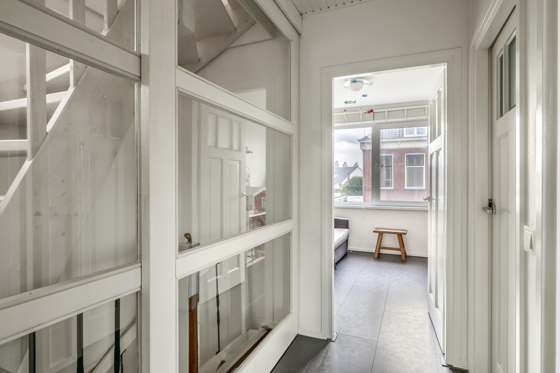 Met in totaal vijf slaapkamers en twee badkamers is dit huis perfect geschikt voor een groter gezin of mensen die thuiswerken combineren met gezinsleven. Op de eerste verdieping bevinden zich drie slaapkamers en een moderne badkamer. De tweede verdieping, gerealiseerd in de dakopbouw, biedt ruimte aan twee extra kamers, waaronder een royale master bedroom met een badkamer en suite. Deze tweede badkamer is al voorbereid, maar moet nog worden gerealiseerd. Dankzij de slimme indeling en royale raampartijen voelt elke ruimte licht en uitnodigend aan.