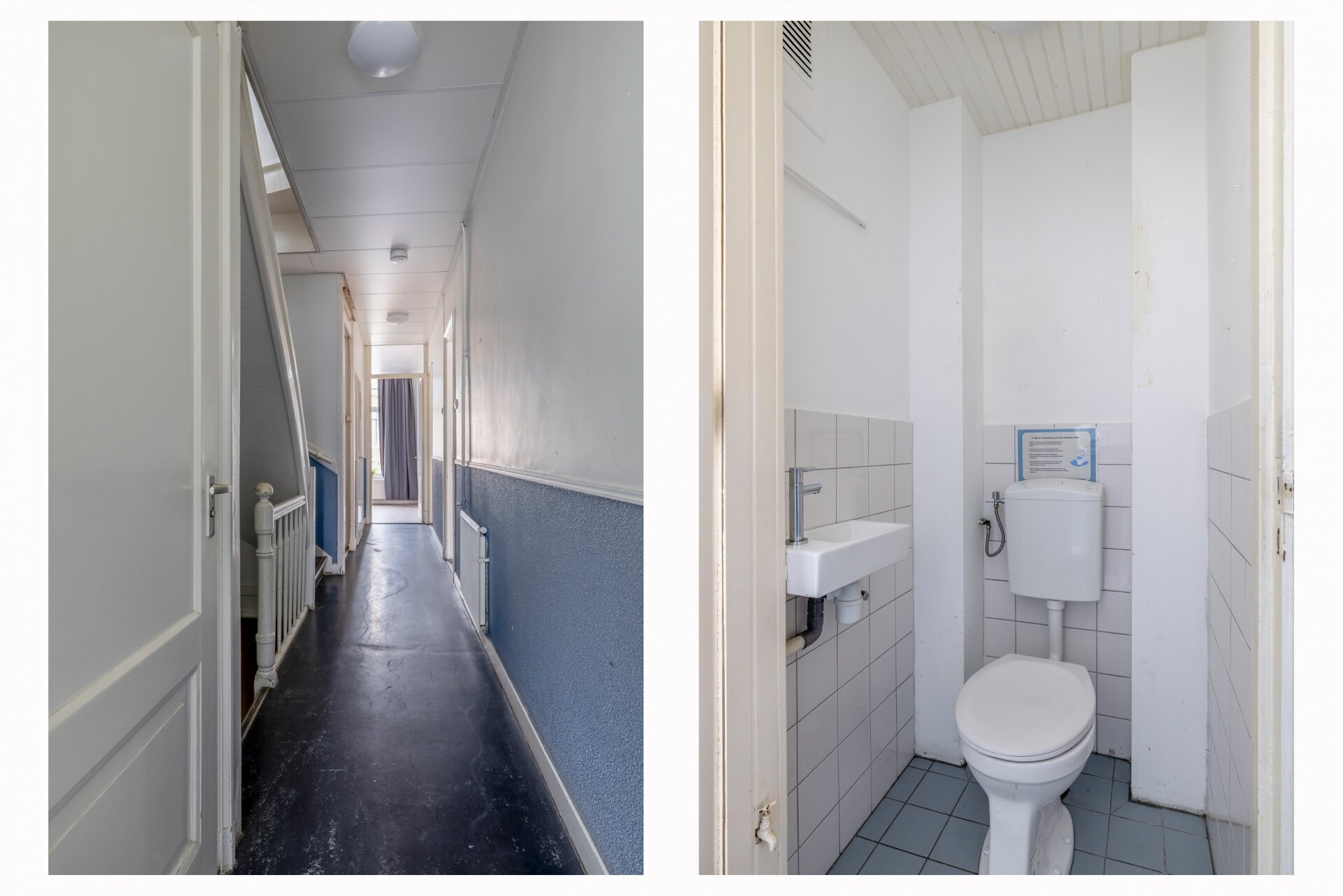 Entree op straatniveau met meterkast; binnentrap naar de 2e etage; overloop met bergkast; toilet met fontein; doucheruimte; voorkamer; voorzijkamer; achterkamer; keuken; binnentrap naar de 3e etage; overloop met opstelplaats c.v.-ketel; toilet met fontein; doucheruimte; voorzijkamer; voorkamer met toegang tot het voorbalkon; achterkamer; keuken met toegang tot het achterterras.