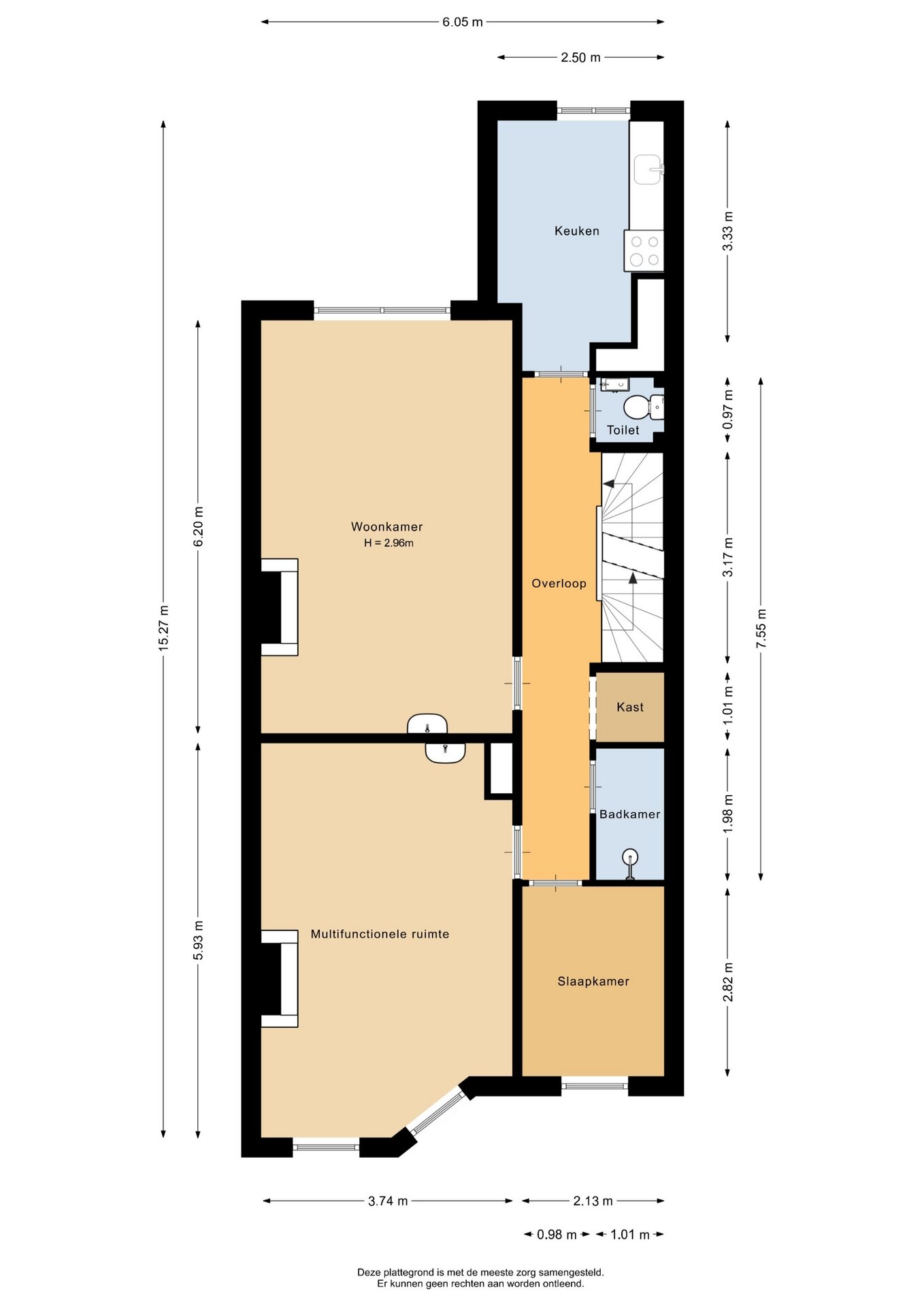 “Deze informatie is door ons met de nodige zorgvuldigheid samengesteld. Onzerzijds wordt echter geen enkele aansprakelijkheid aanvaard voor enige onvolledigheid, onjuistheid of anderszins, dan wel de gevolgen daarvan. Alle opgegeven maten en oppervlakten zijn indicatief.”