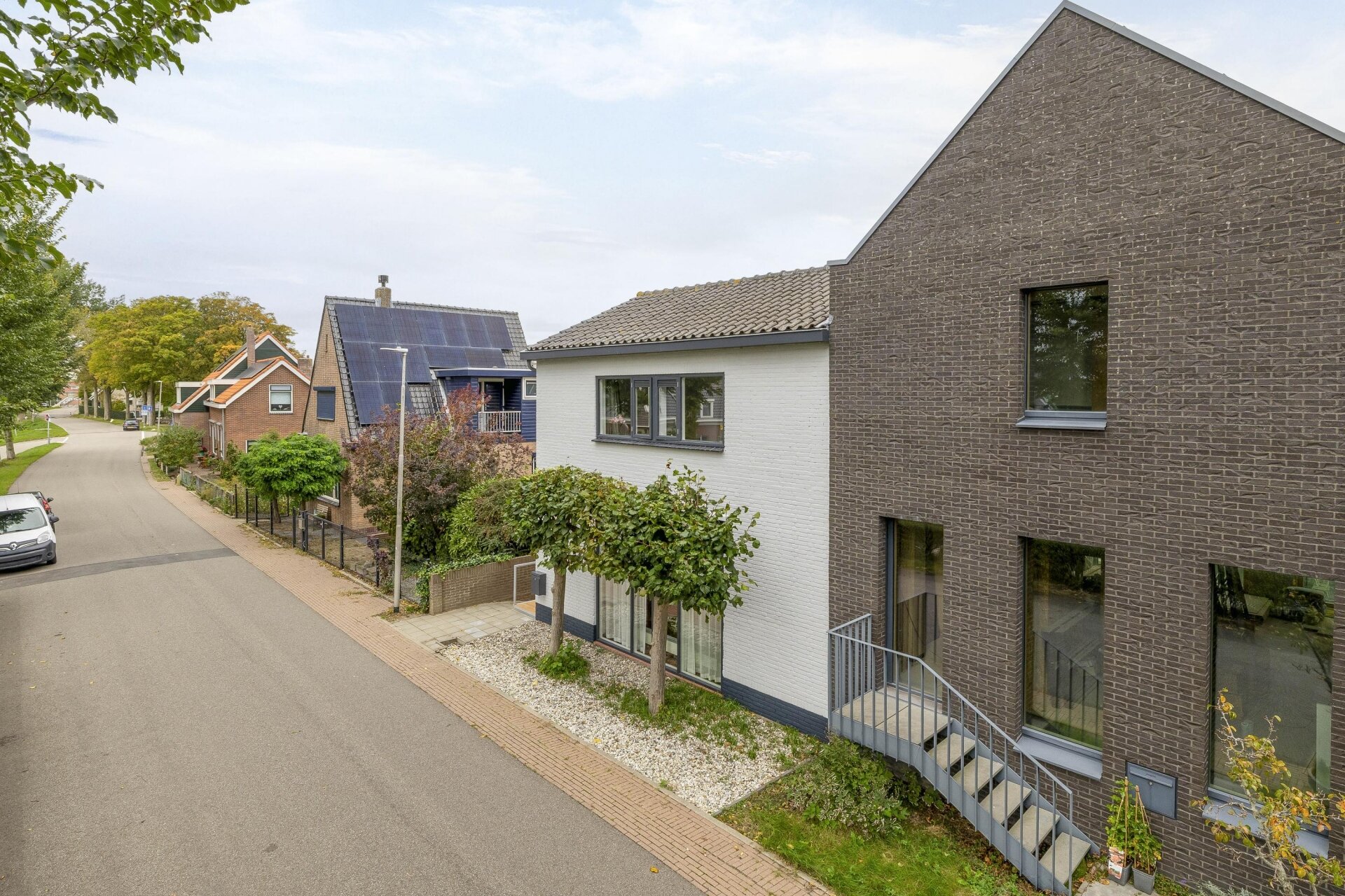 Het resultaat is een huis dat de charme van de oude dijkbebouwing combineert met eigentijdse woonkwaliteit. De witte gevel met het grijze dak past harmonieus in het straatbeeld, waar historie en modern wonen elkaar ontmoeten.
